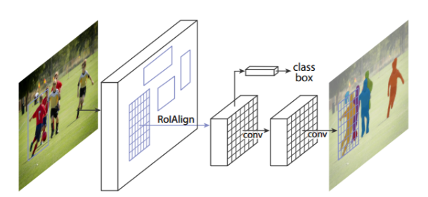 7.Warped features are also fed into Mask classifier, which consists of two CNN’s to output a binary mask for each RoI. Mask Classifier allows the network to generate masks for every class without competition among classes
