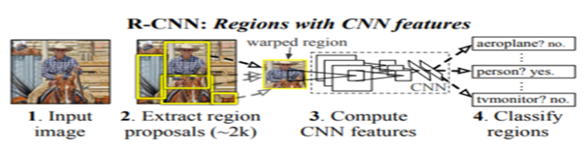 1.Generate category-independent region proposals using selective search to extract around 2000 region proposals. Warp each proposal.