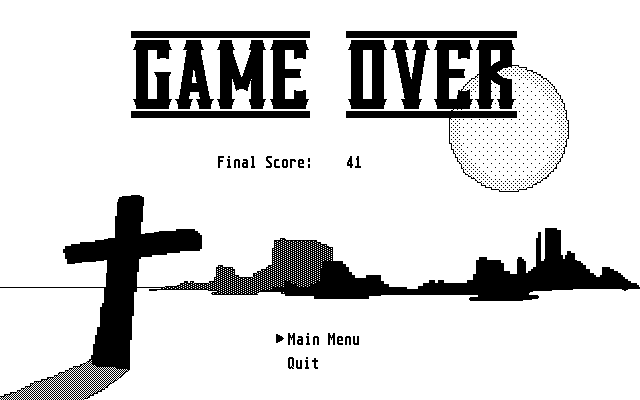 You can also toggle your skin to the unused player 2 sprite by pressing P, quit the game by pressing Q (CTRL-C won't work because Deputy Arsh takes control of the keyboard from the OS).
