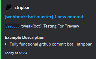 - Fully functional GitHub bot that sends commits into embeds to any specified webhook.