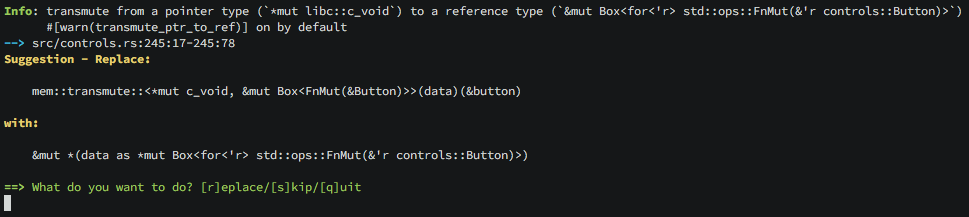 - Not all suggestions can be applied trivially (e.g. clippy's "You should use