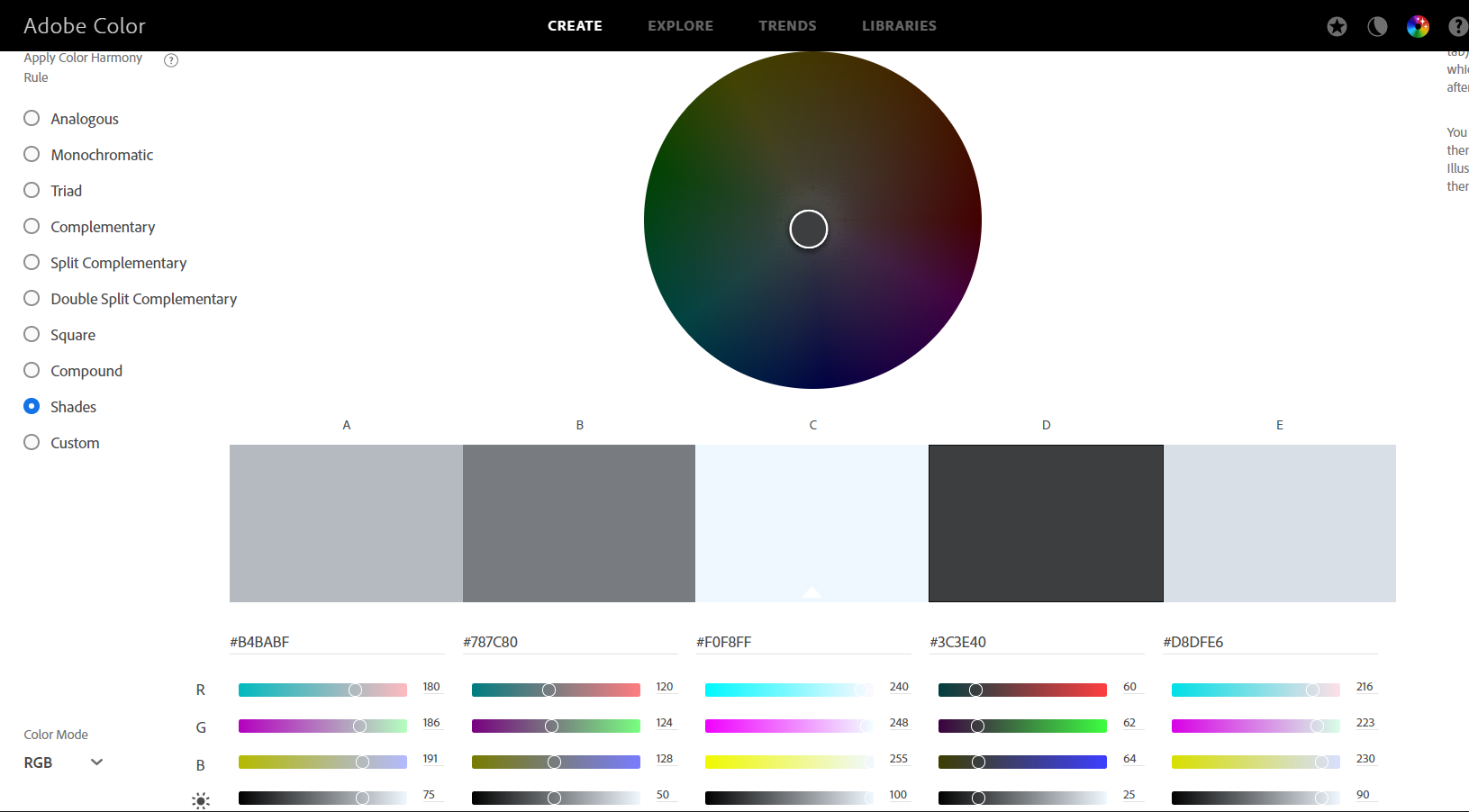 - Used an adobe color palette that I made for the color scheme: I used a shades color palette that I made from adobe to design the coloring of my site.