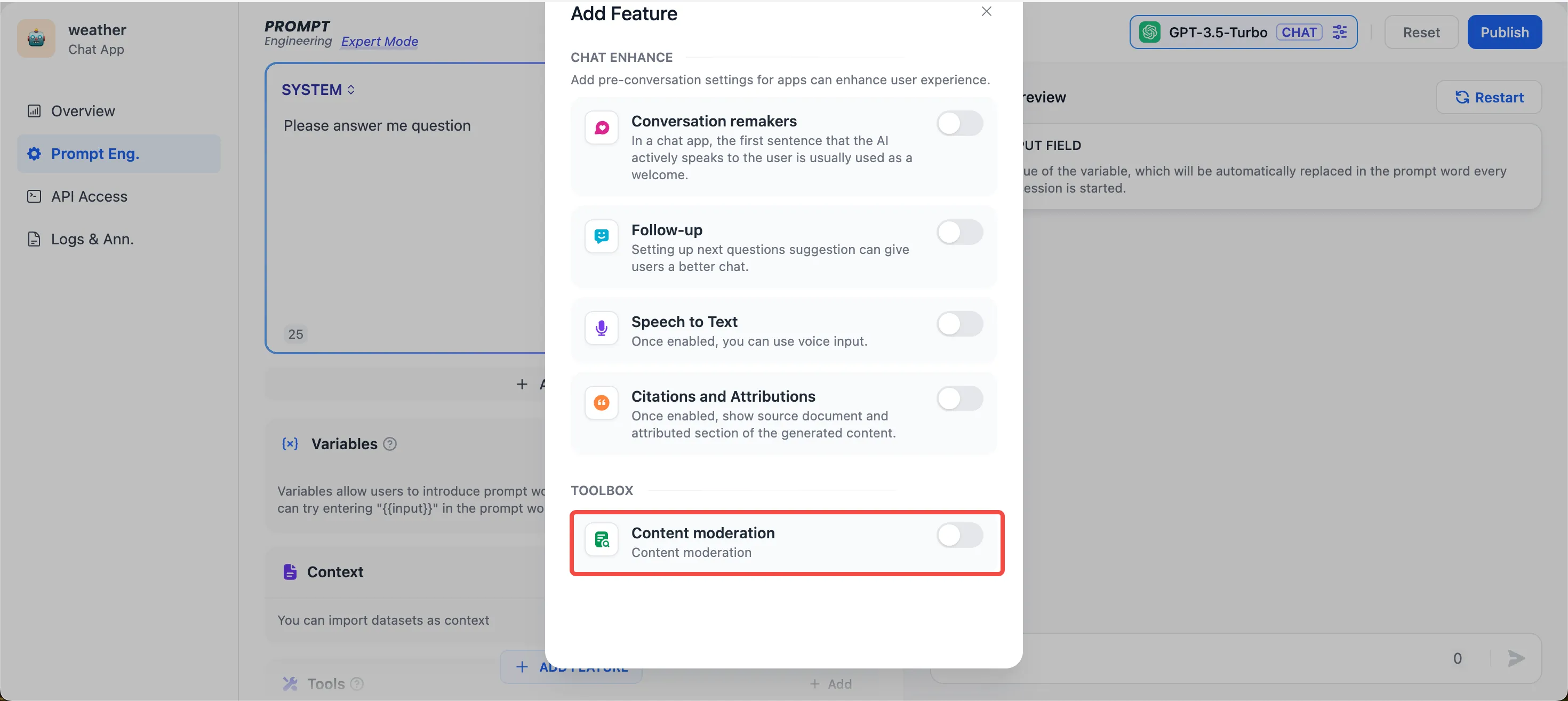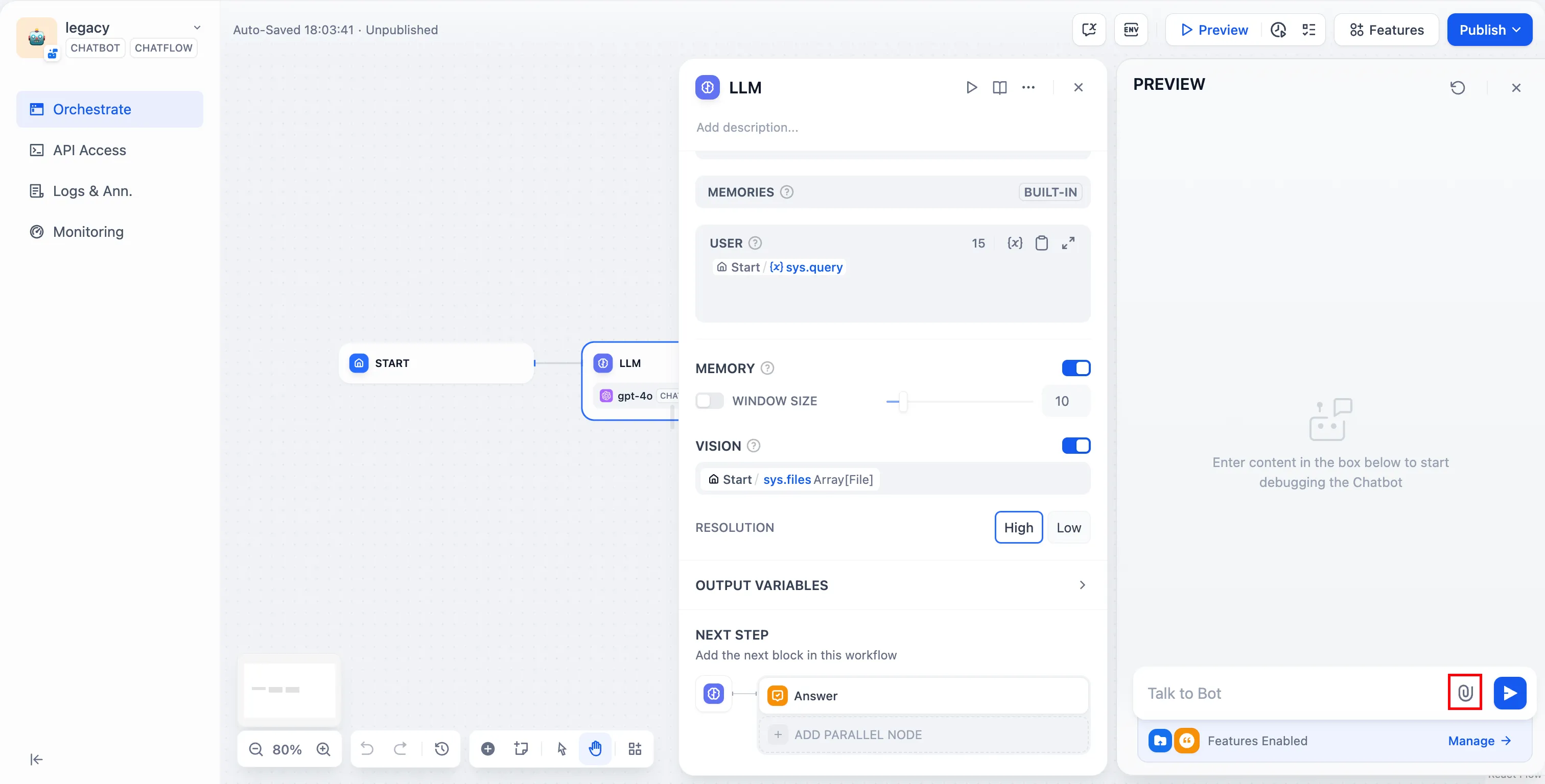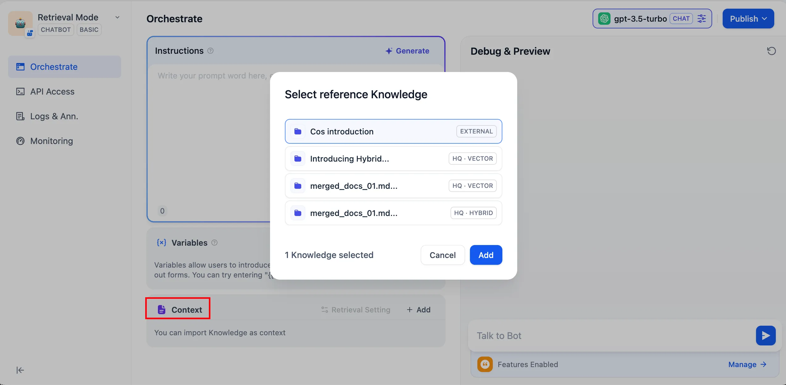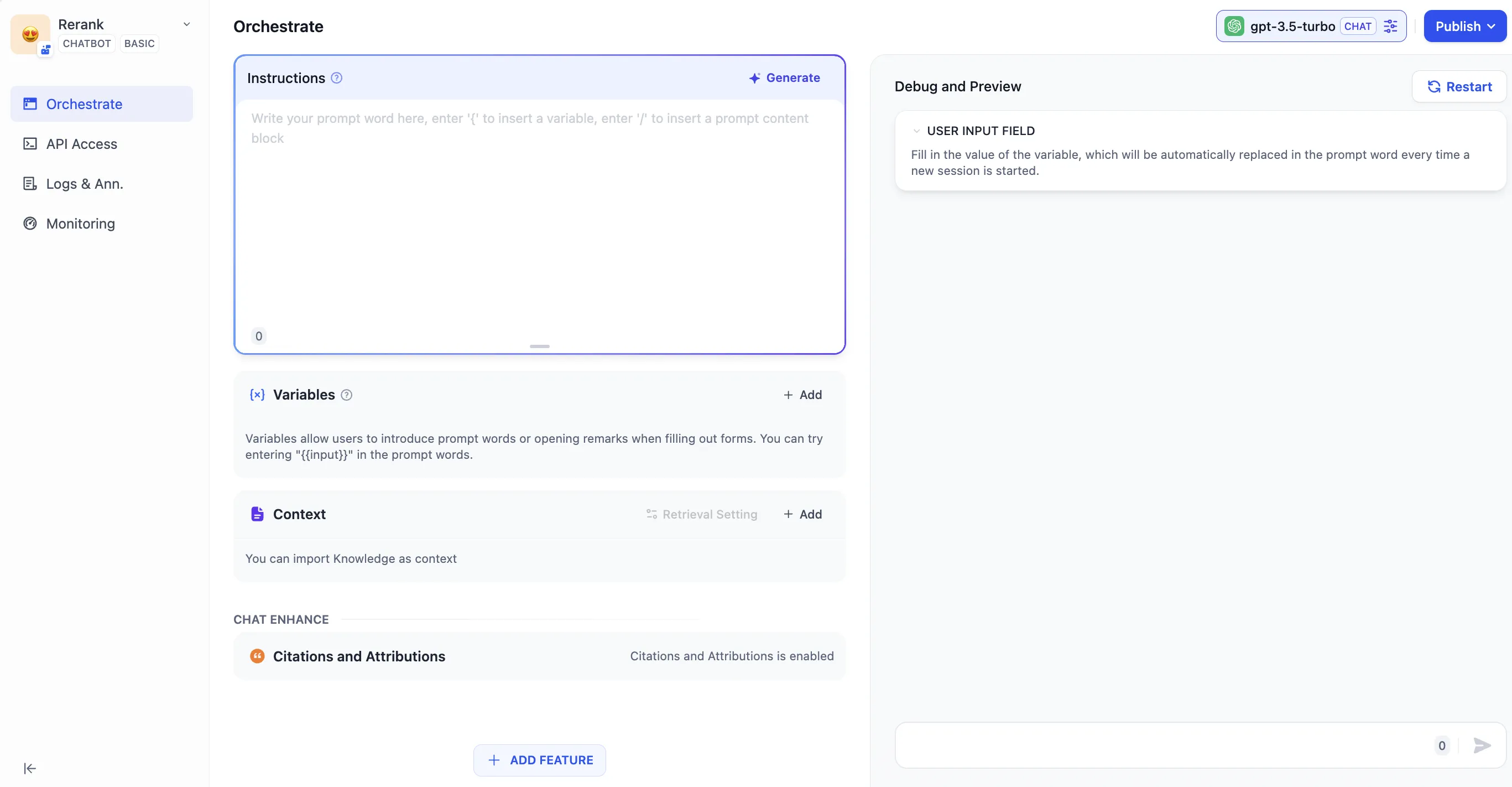 Enable the annotated replies switch by navigating to **“Orchestrate -> Add Features”**: