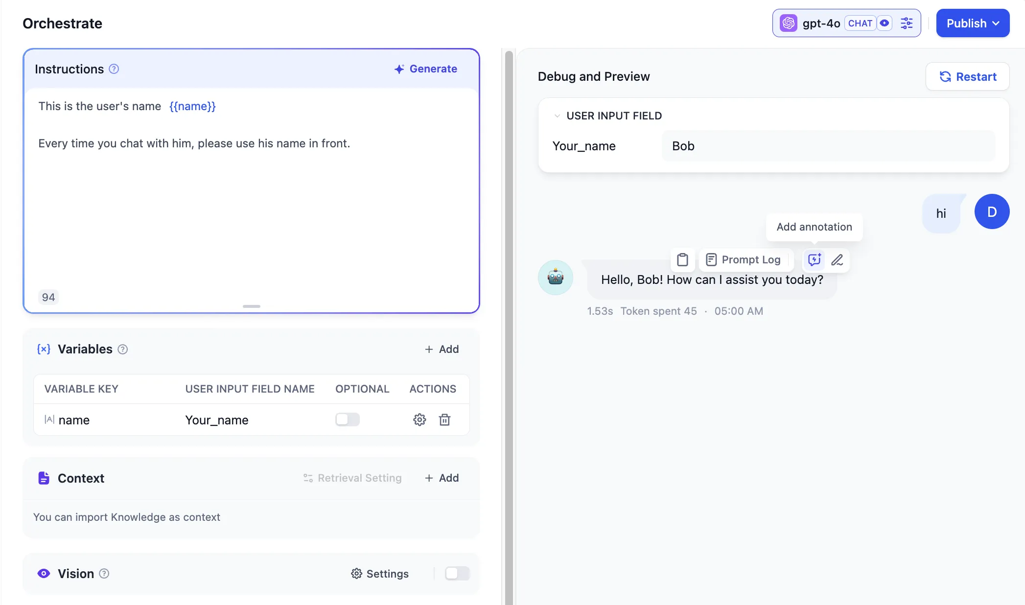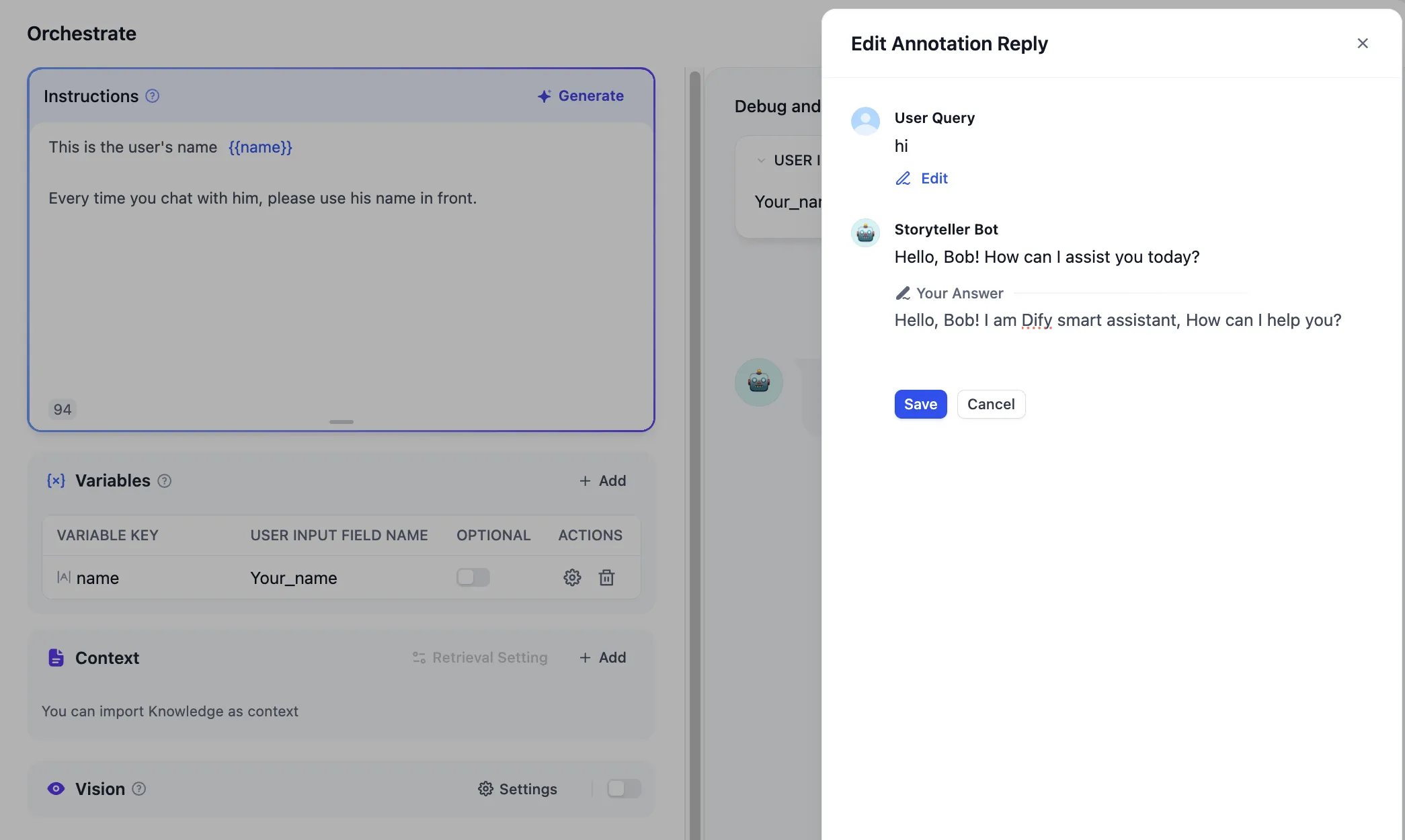 You can directly add or edit annotations on the model response information in the debug and preview pages.