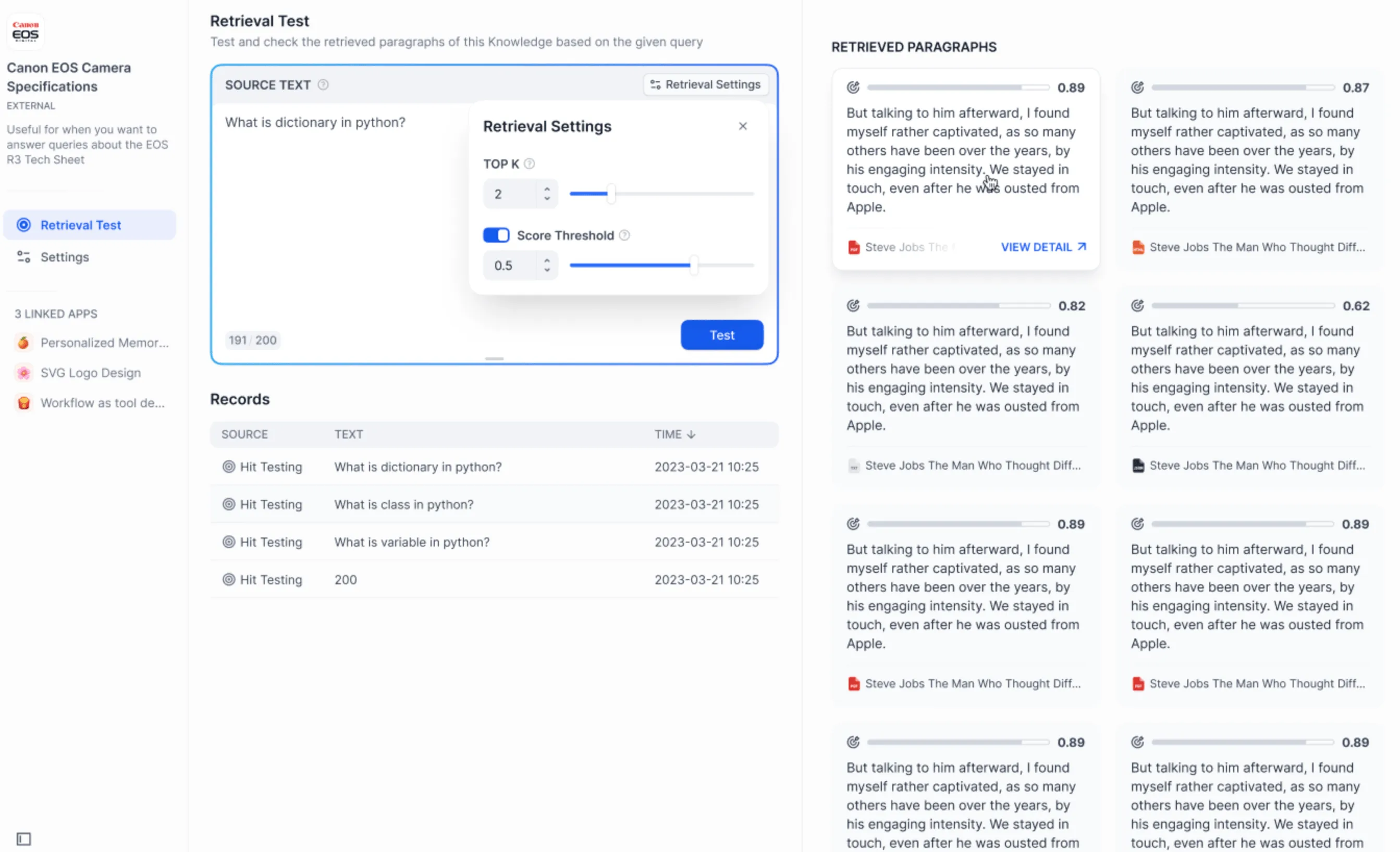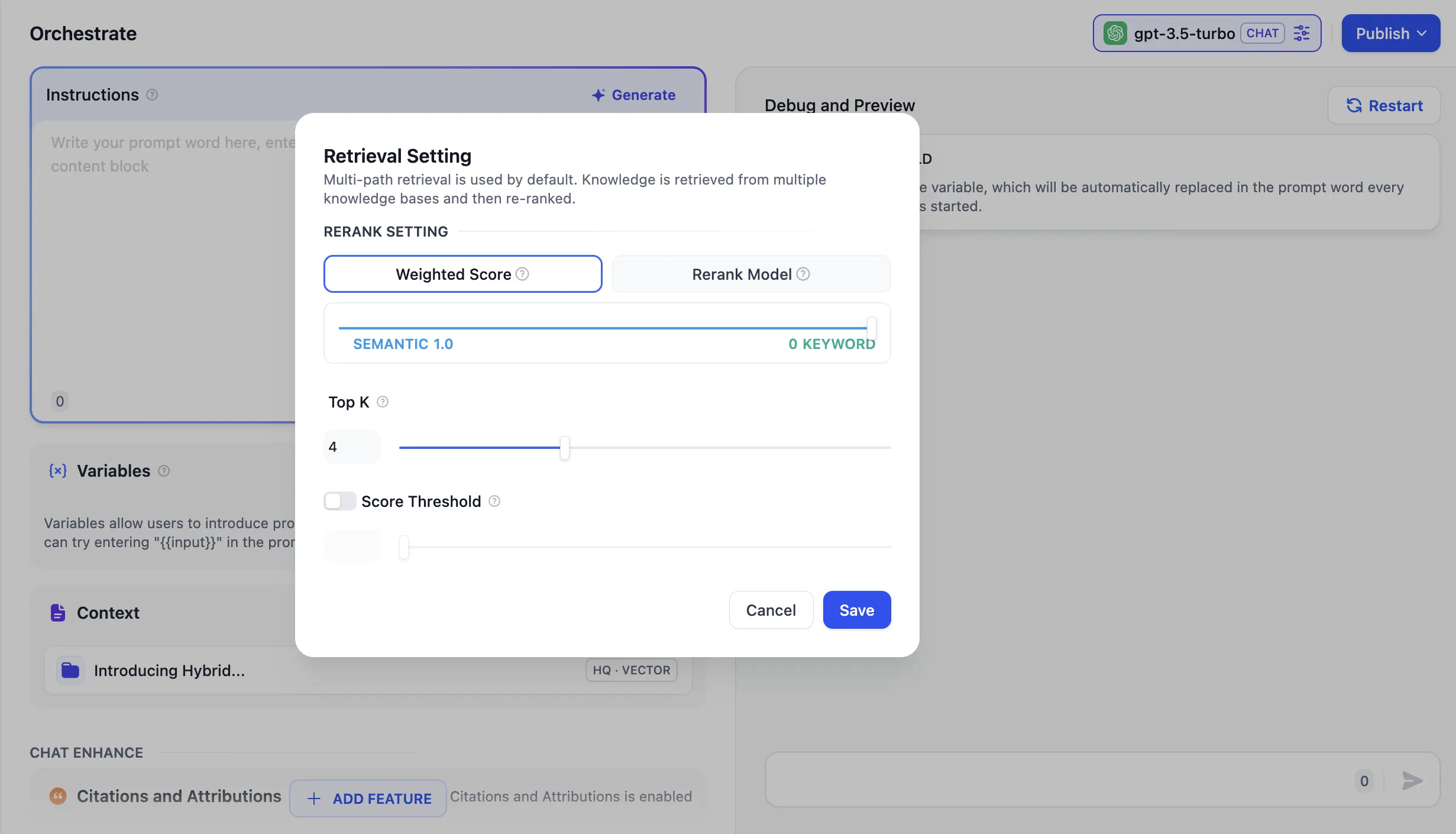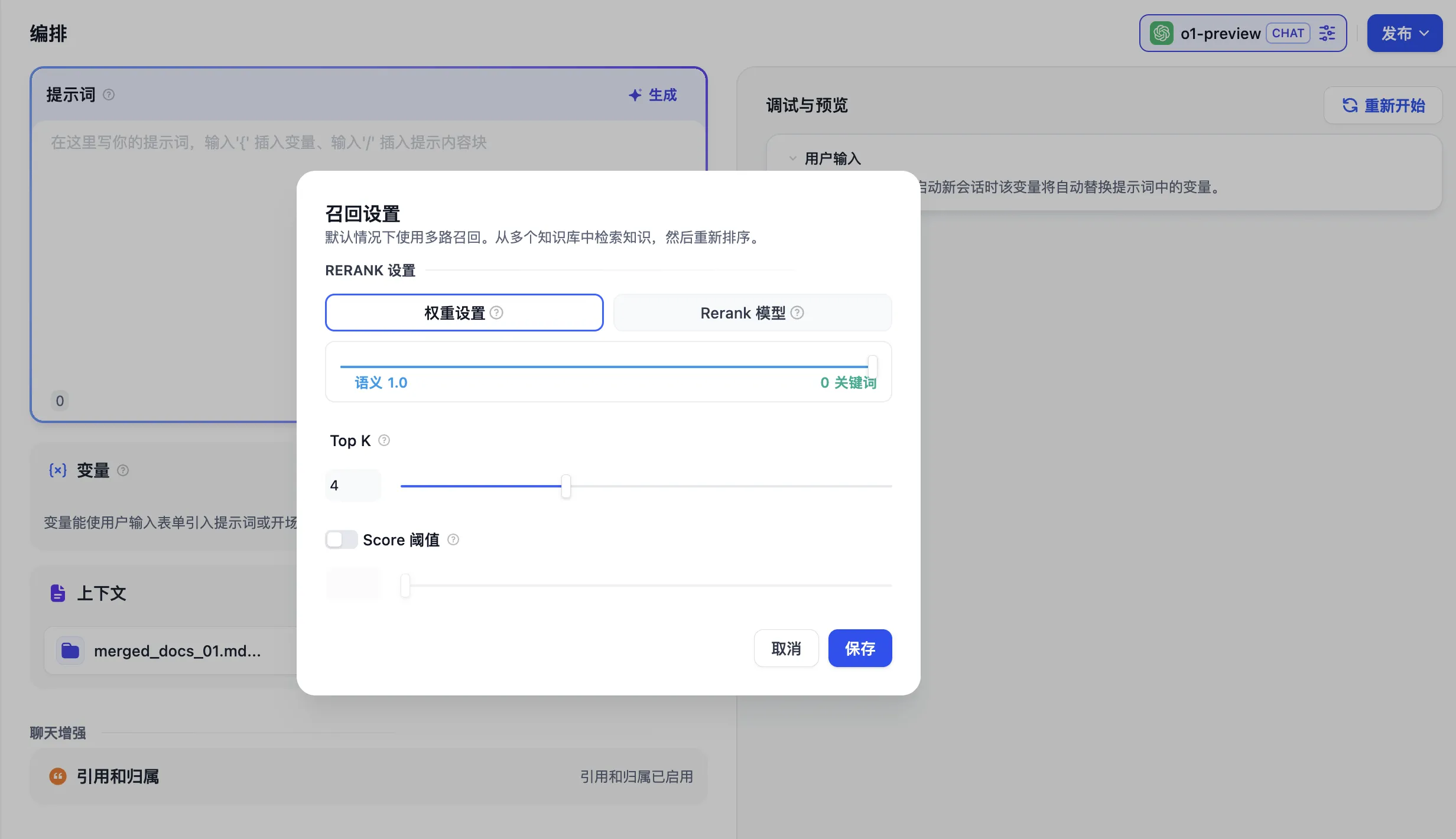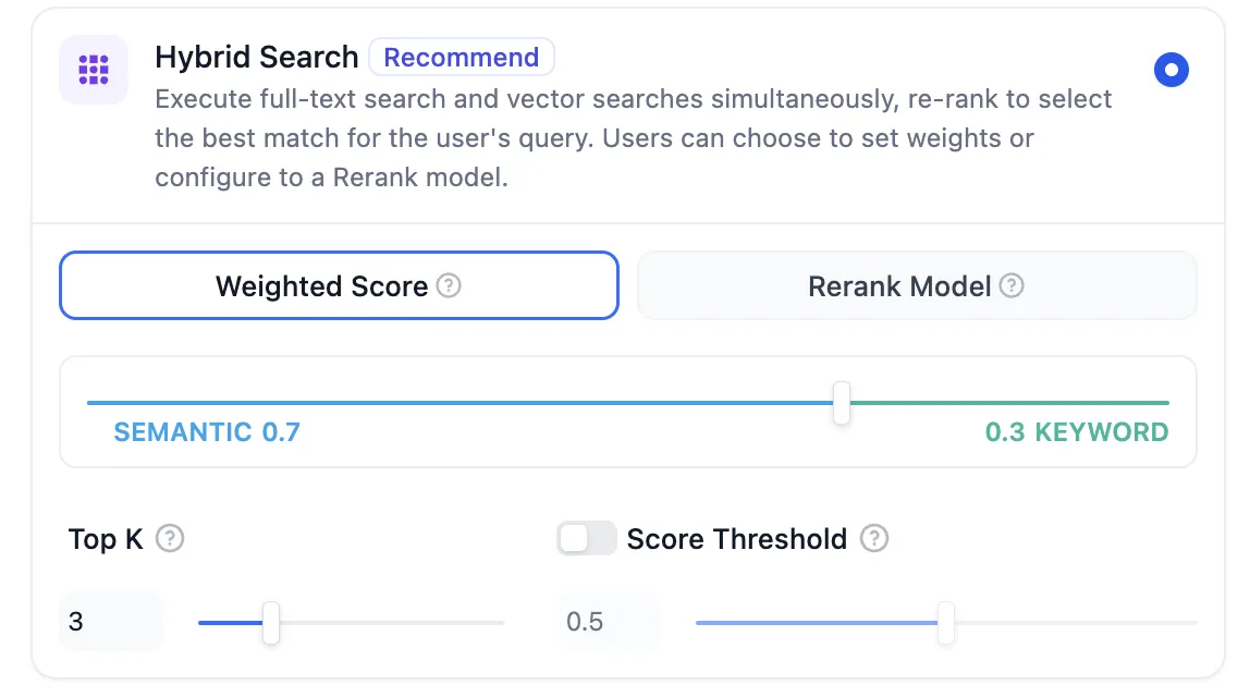 When enabling, you need to set the parameters for annotated replies, which include: Score Threshold and Embedding Model.