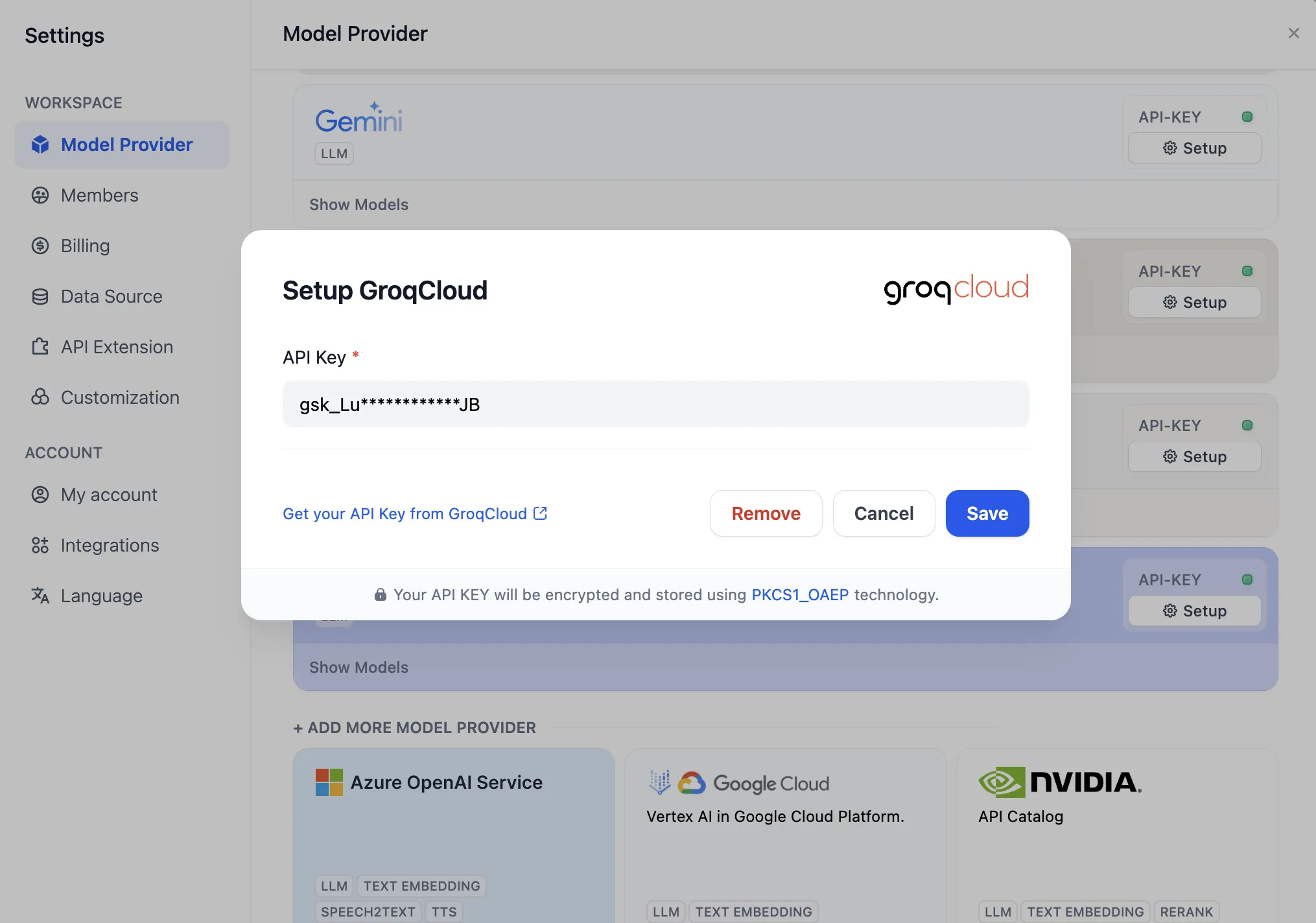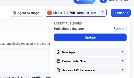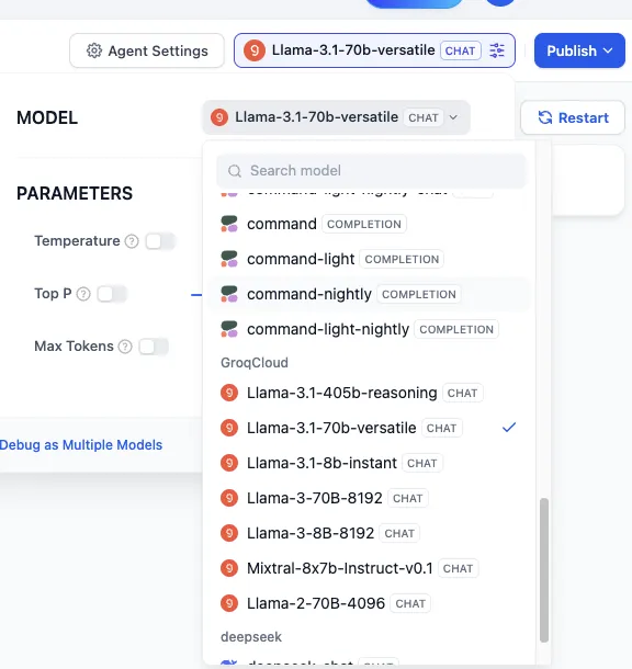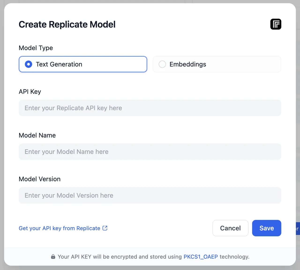 3. Pick a model. Select the model under [Language models](https://replicate.com/collections/language-models) and [Embedding models](https://replicate.com/collections/embedding-models) .