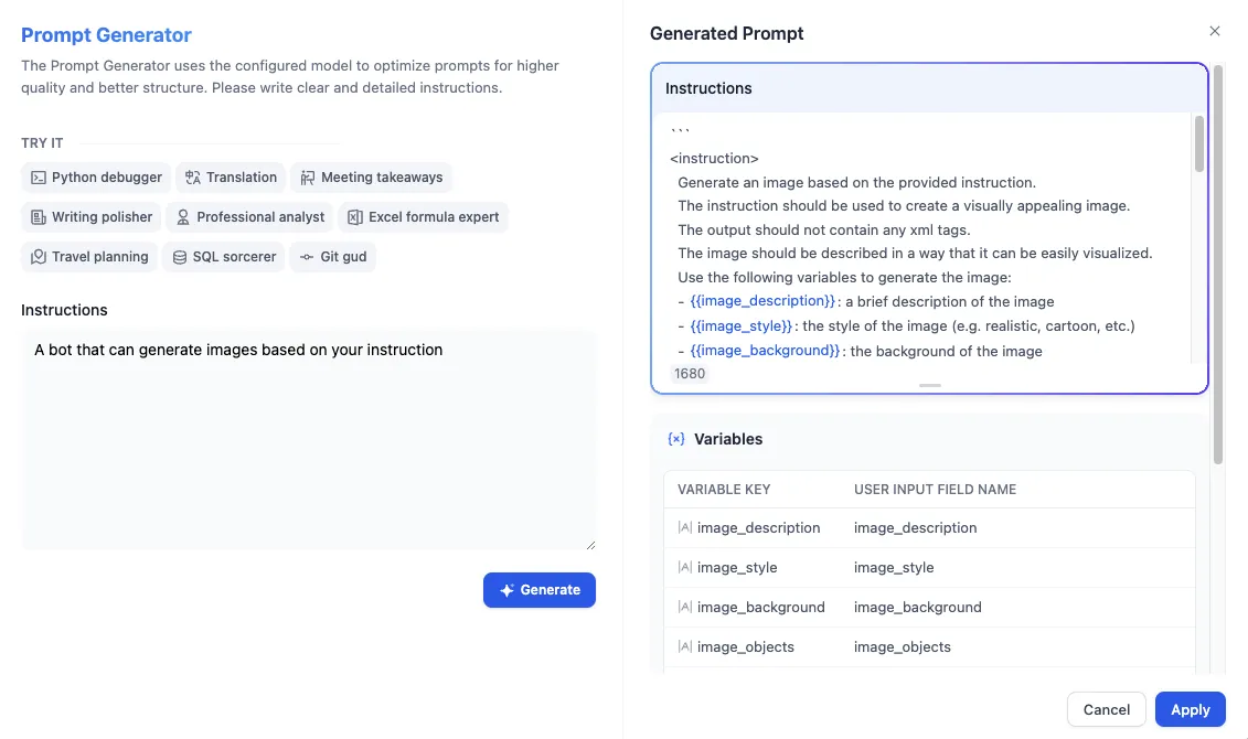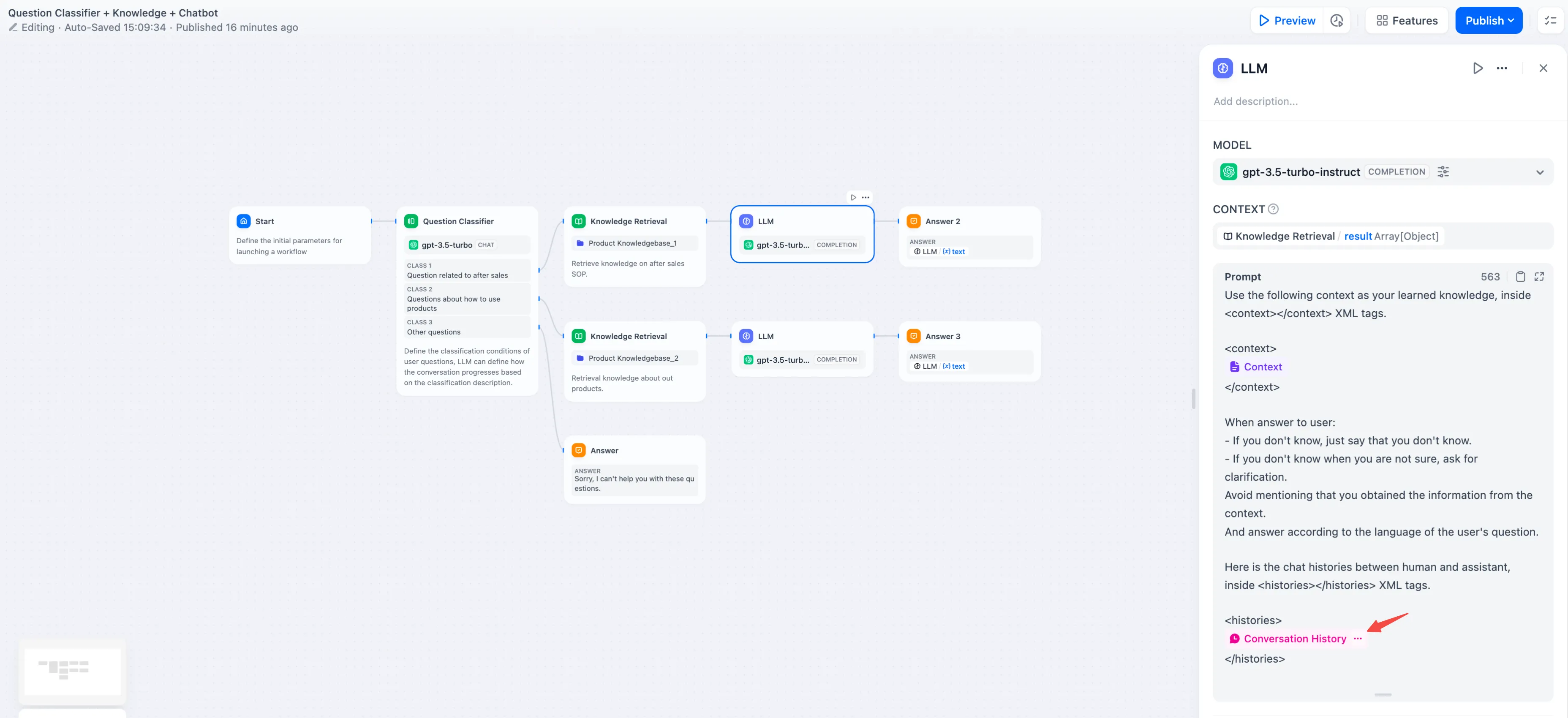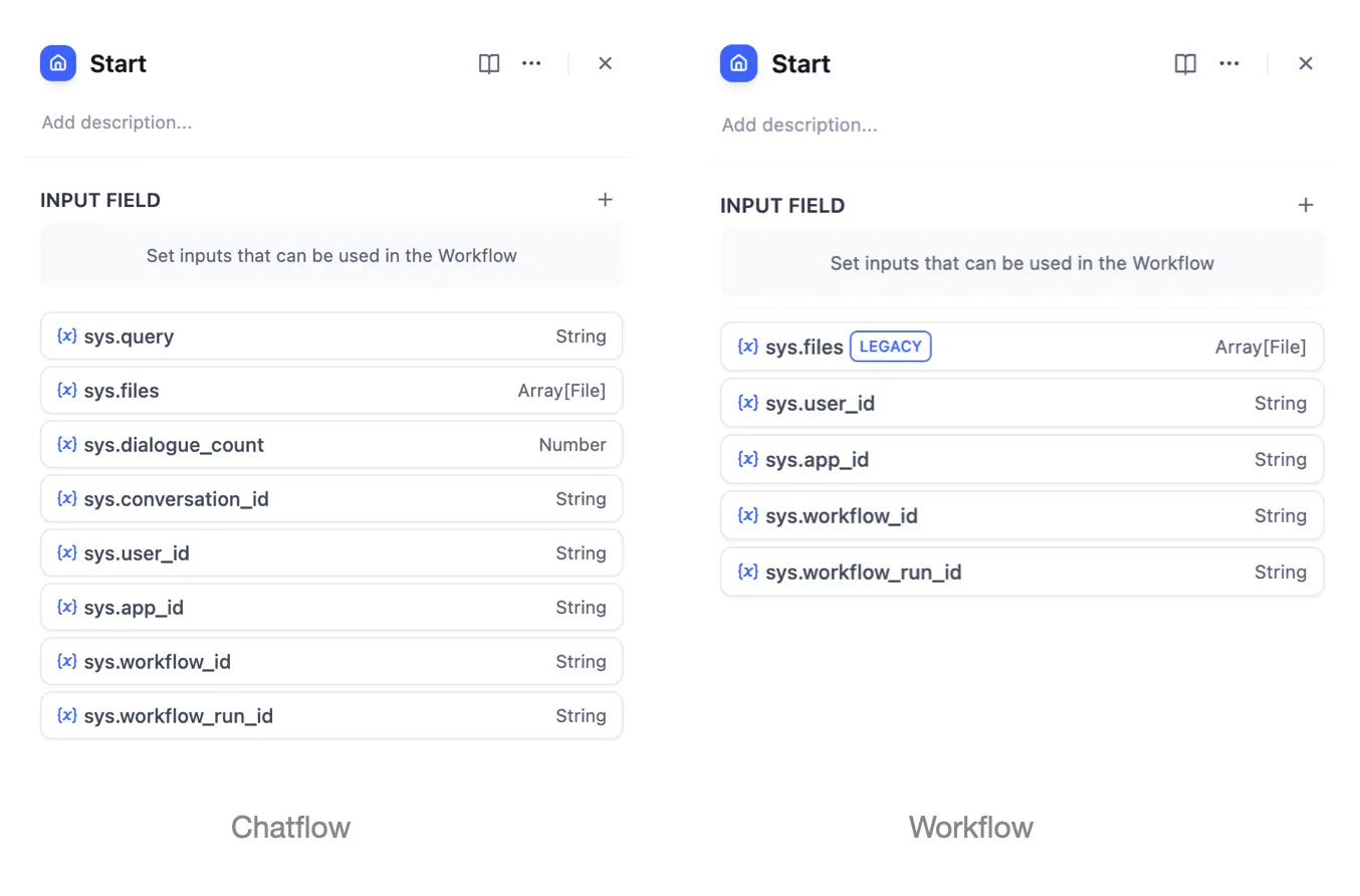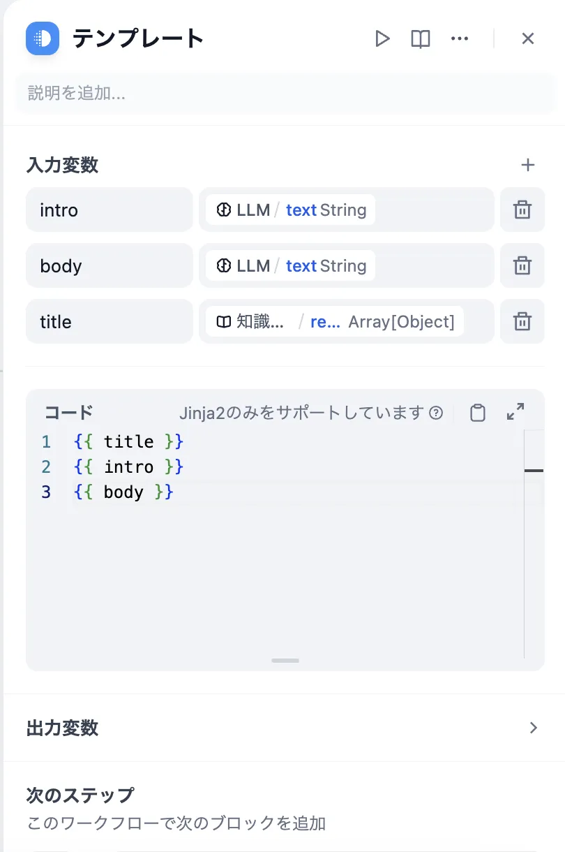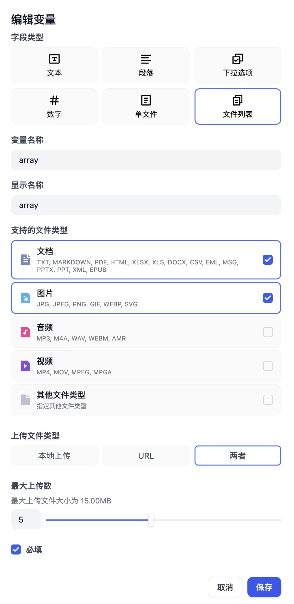 除“`变量`”以外的其他内容块不可重复插入。在不同应用和模型下,可插入的内容块会根据不同的提示词模板结构有所区别,`会话历史`、`查询内容` 仅在对话型应用的文本补全模型中可用。
