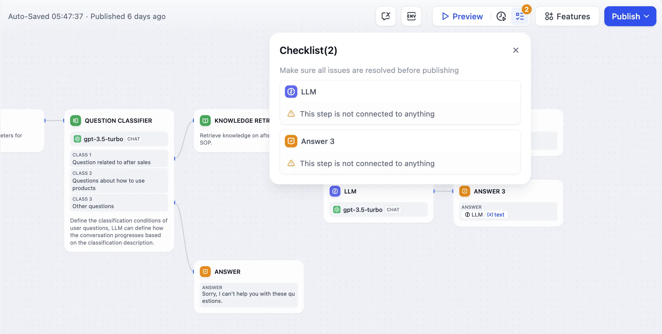 4. If no match is found, the question will continue through the regular process (passing to LLM or RAG).