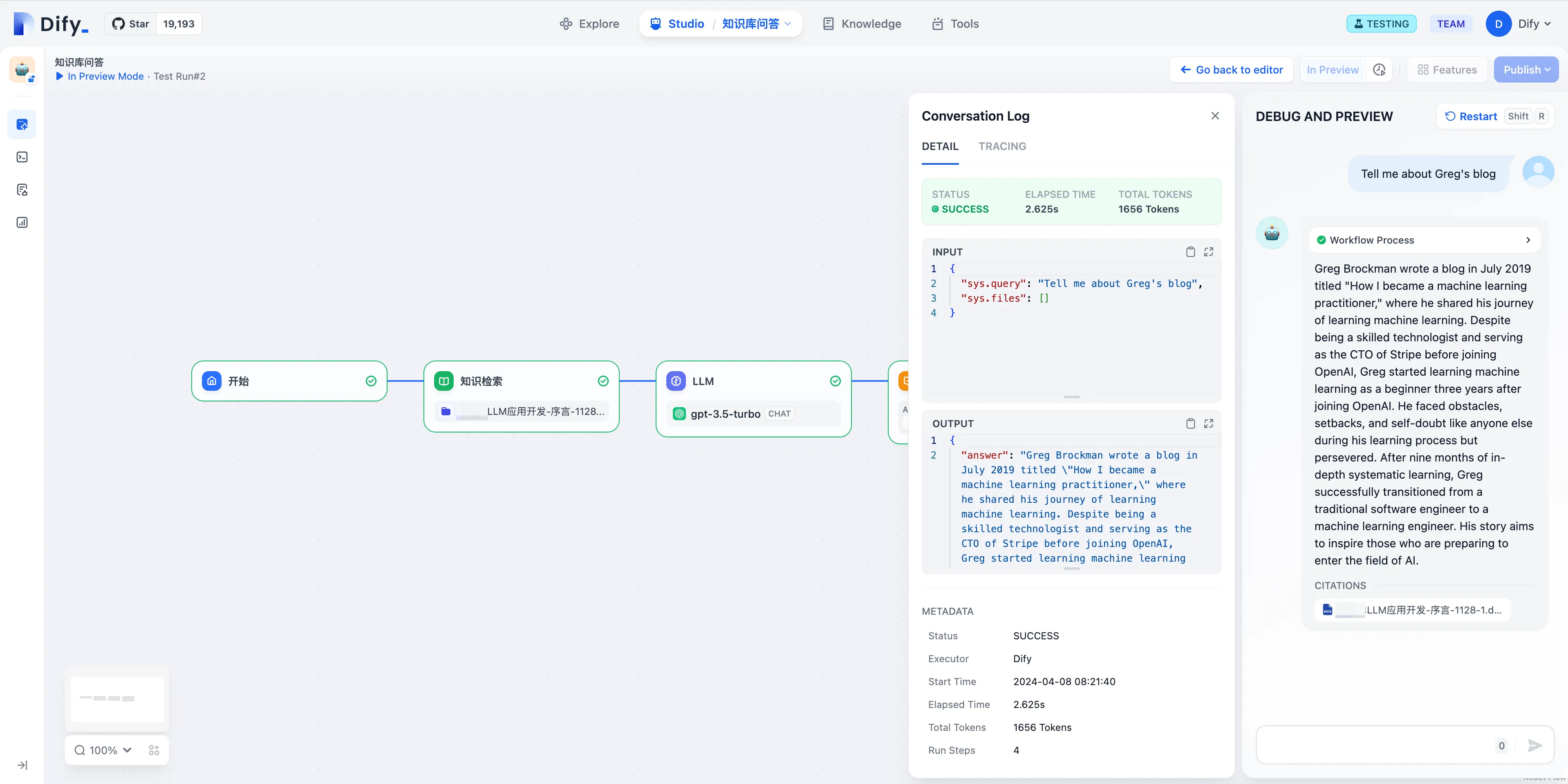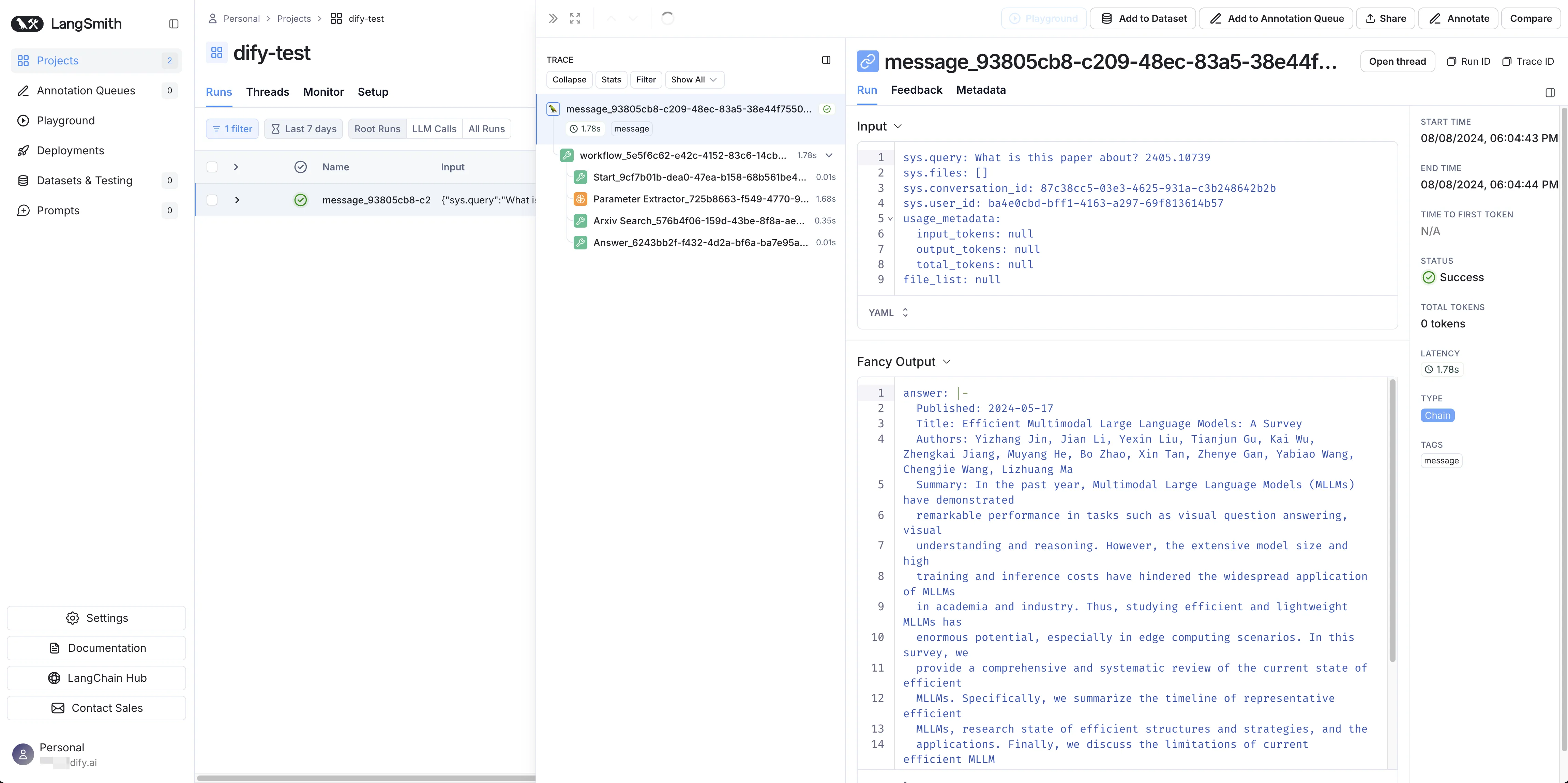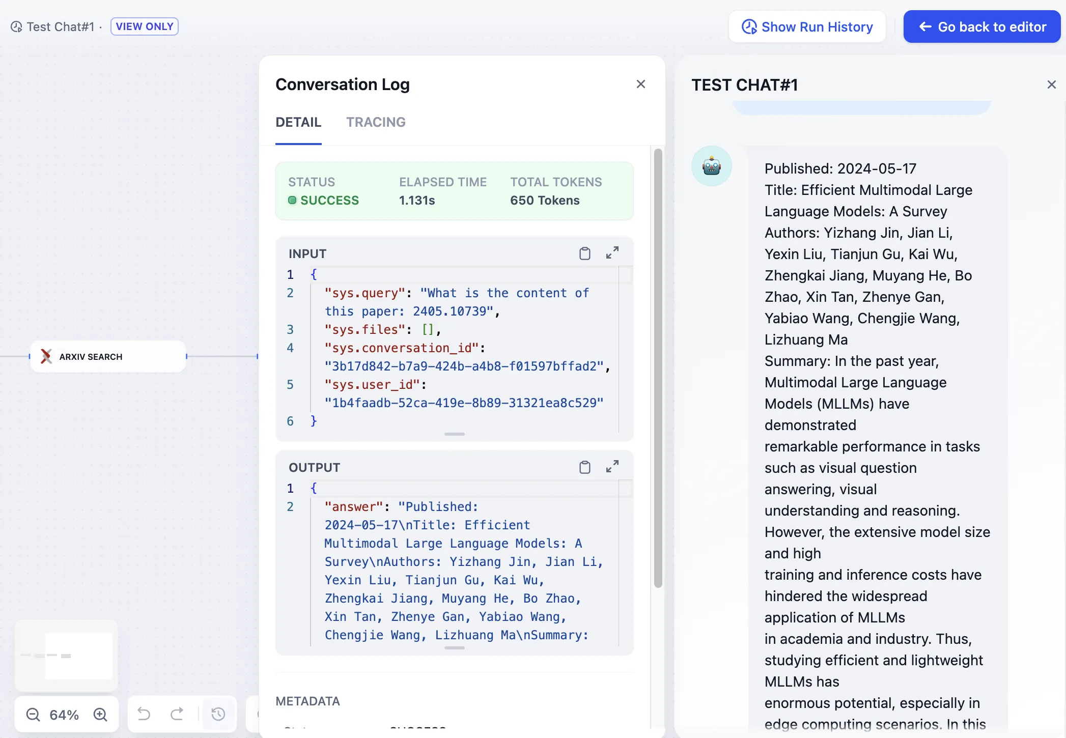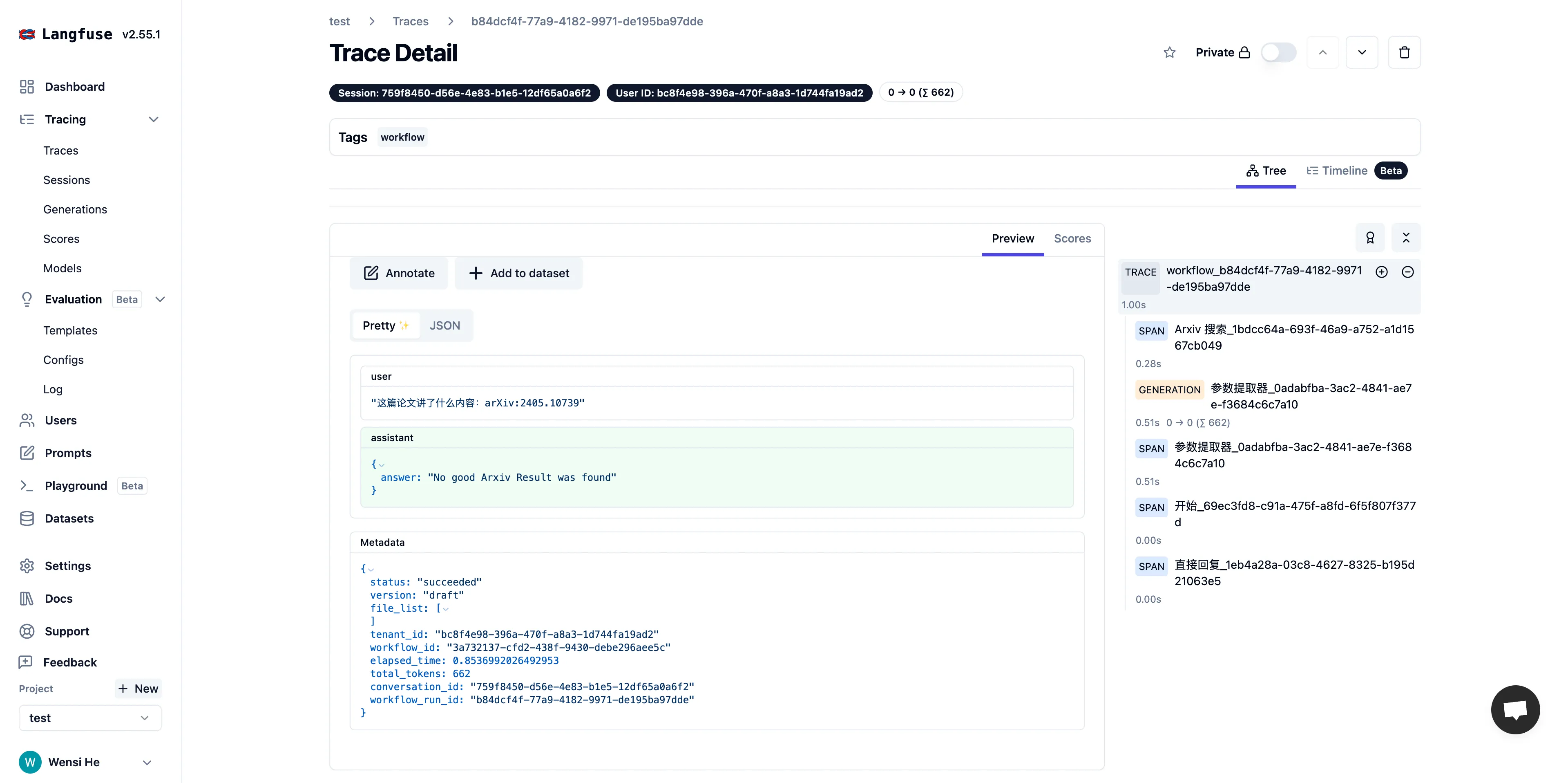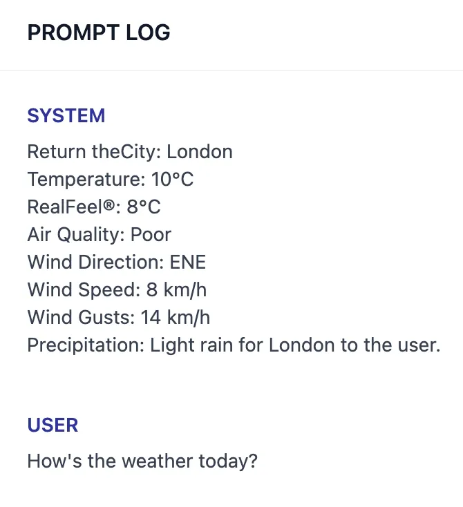 从日志中,我们可以查看经过系统拼装后最终发送至 LLM 的完整提示词,并根据调试结果持续改进提示词输入。