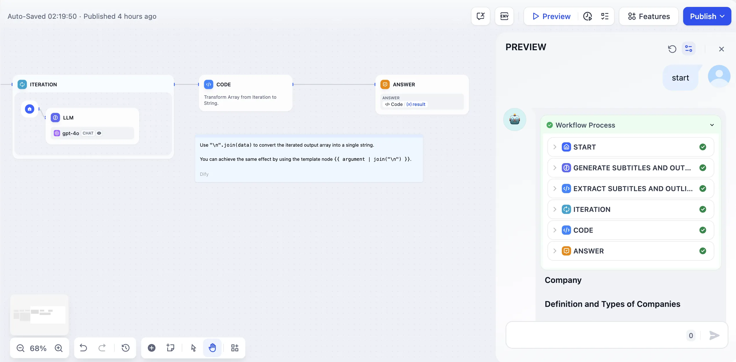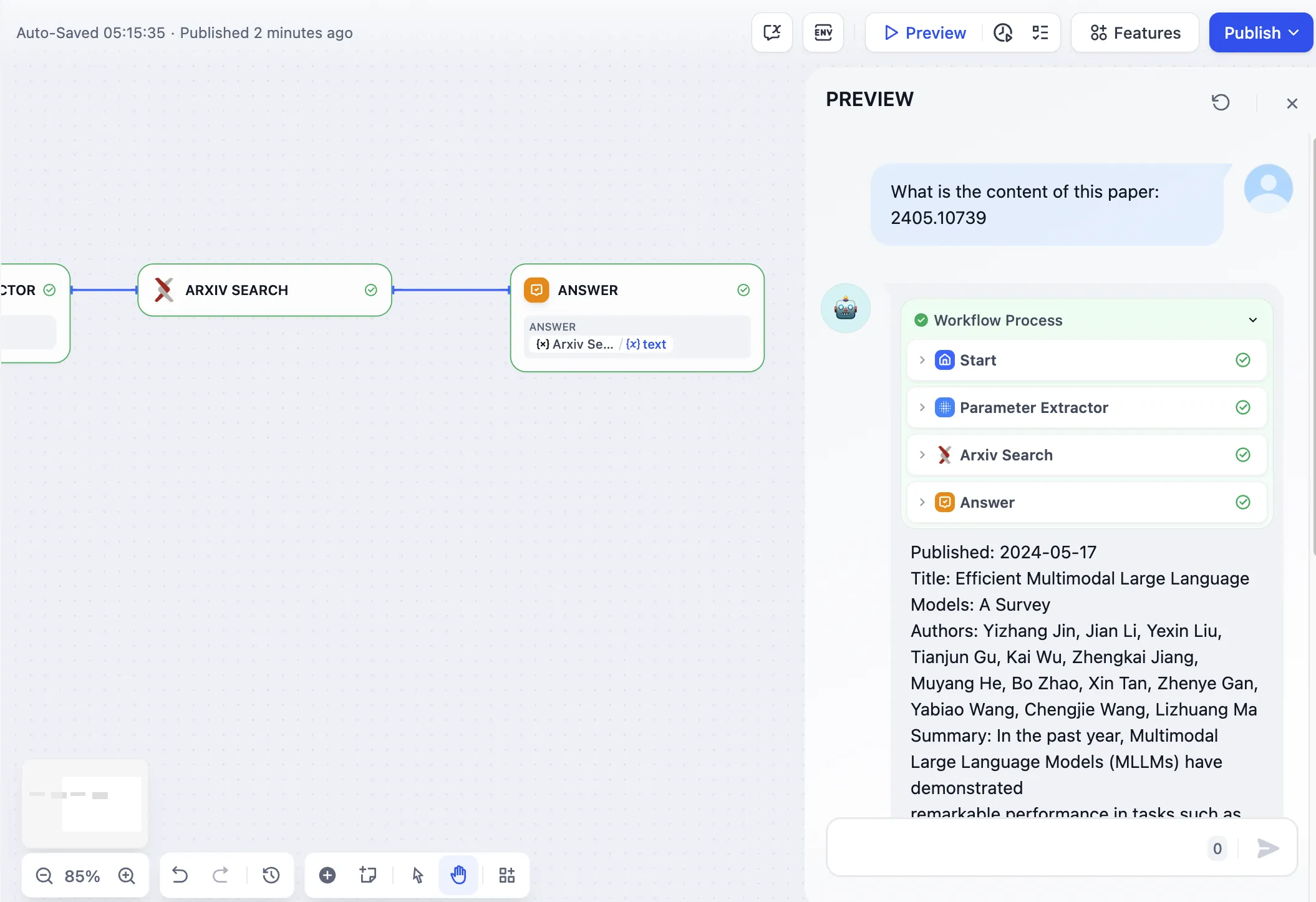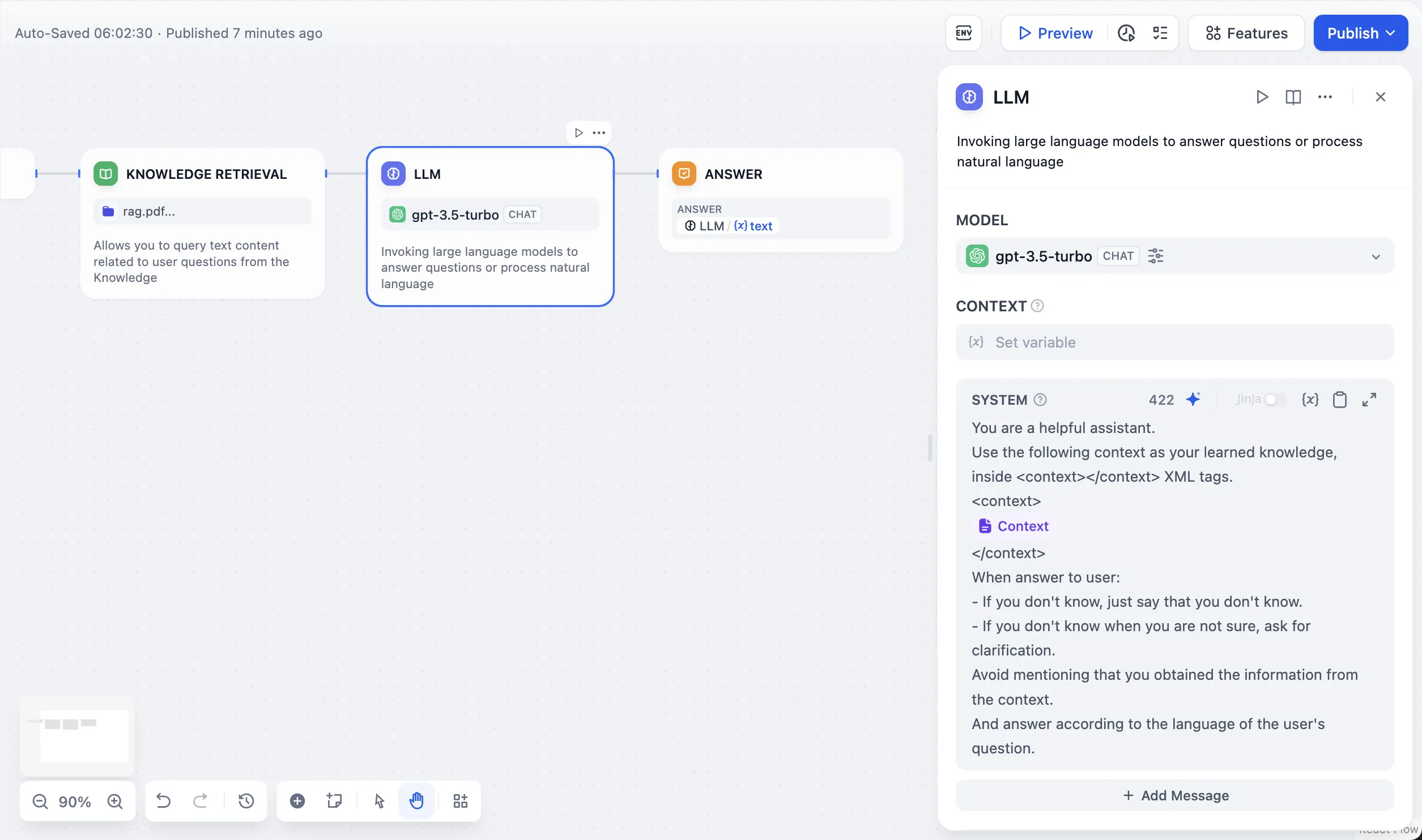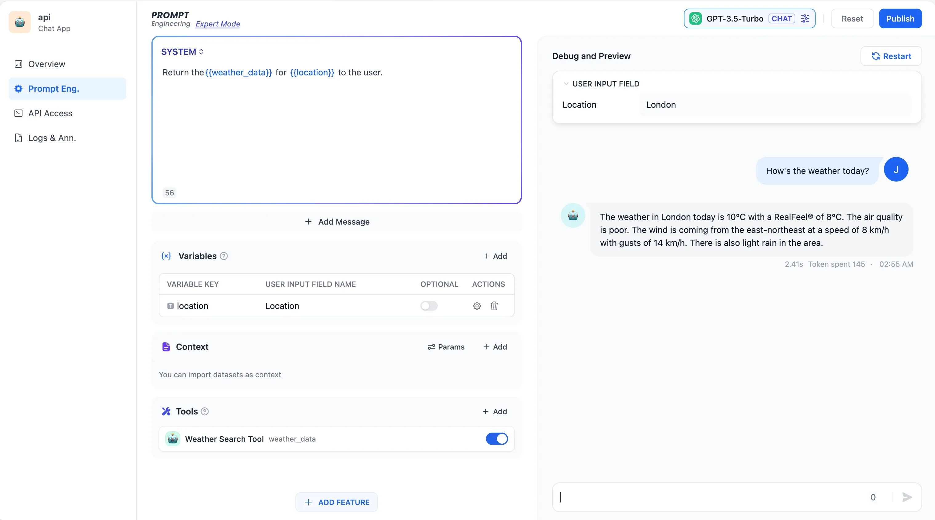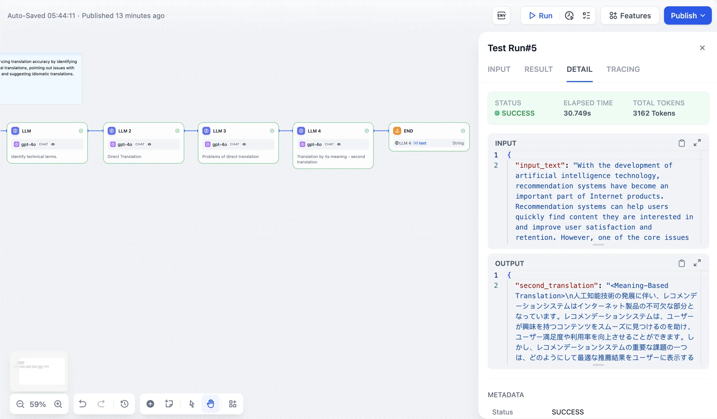 从日志中,我们可以查看经过系统拼装后最终发送至 LLM 的完整提示词,并根据调试结果持续改进提示词输入。