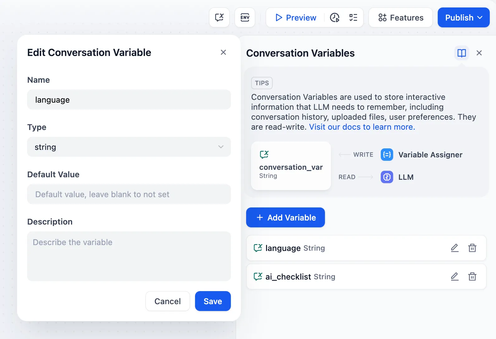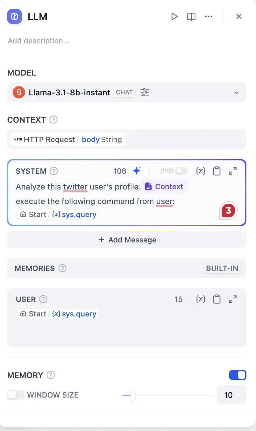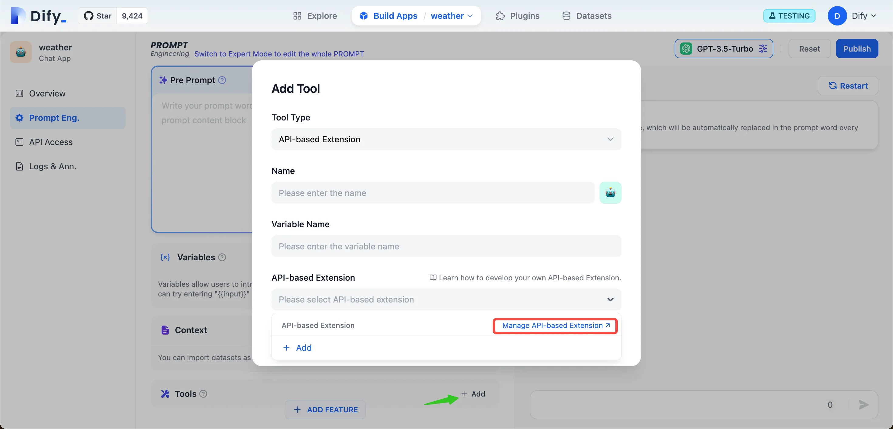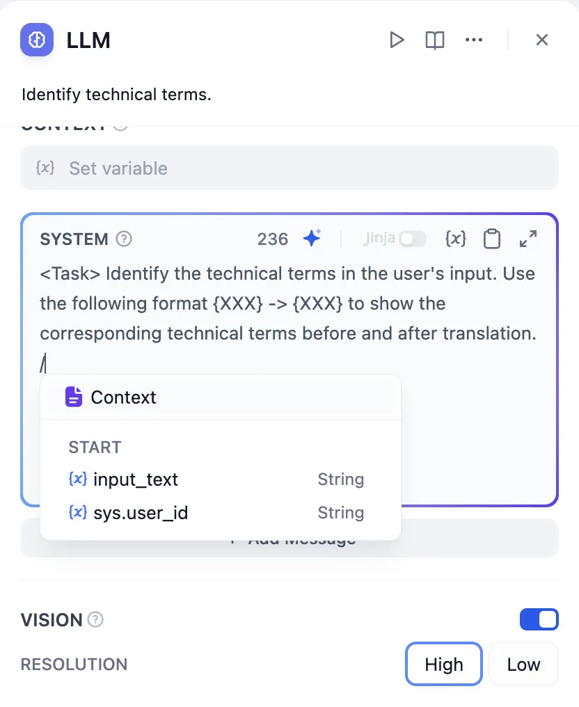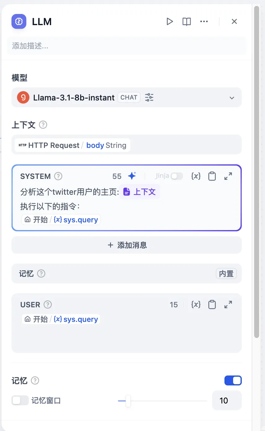 Importantly, it is best not to directly enter the token value as plain text for security reasons, as this is not a good practice. Actually, in the latest version of Dify, we can set token values in **`Environment Variables`**. Click `env` - `Add Variable` to set the token value, so plain text will not appear in the node.