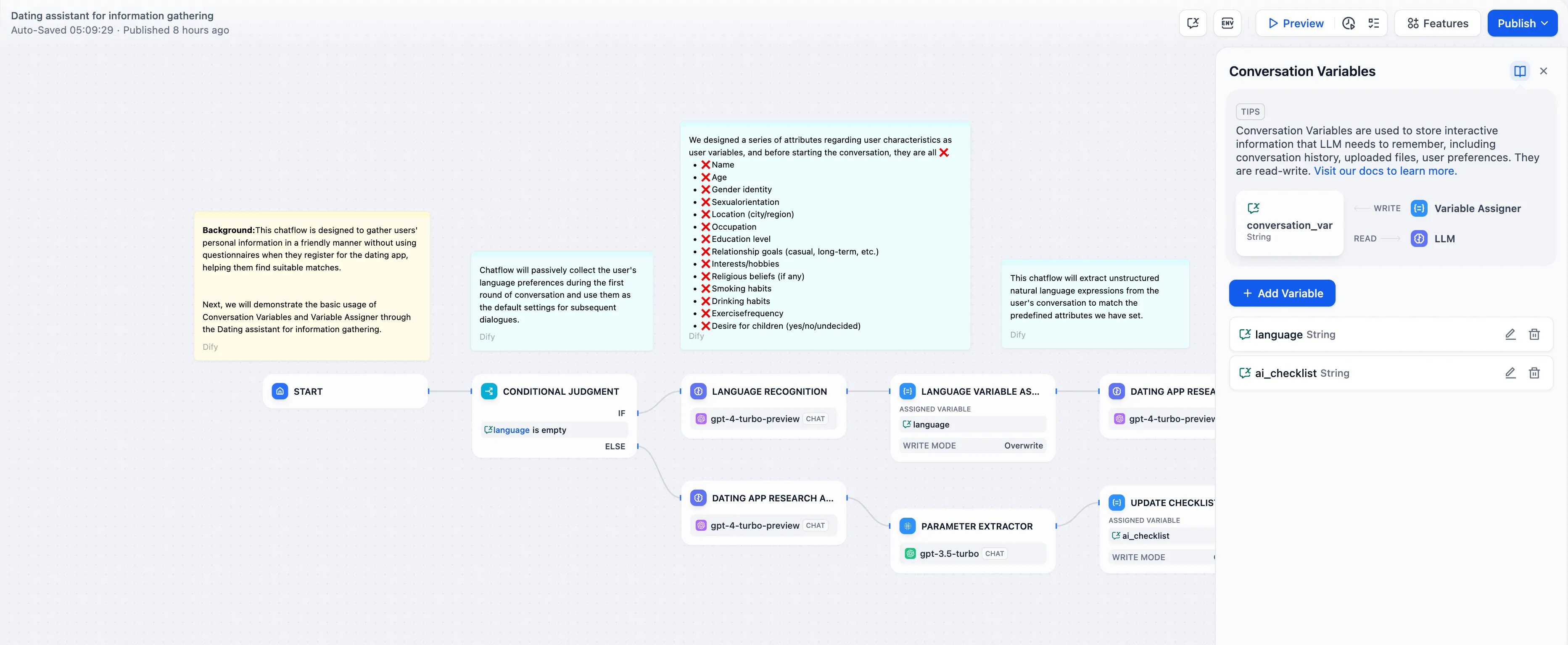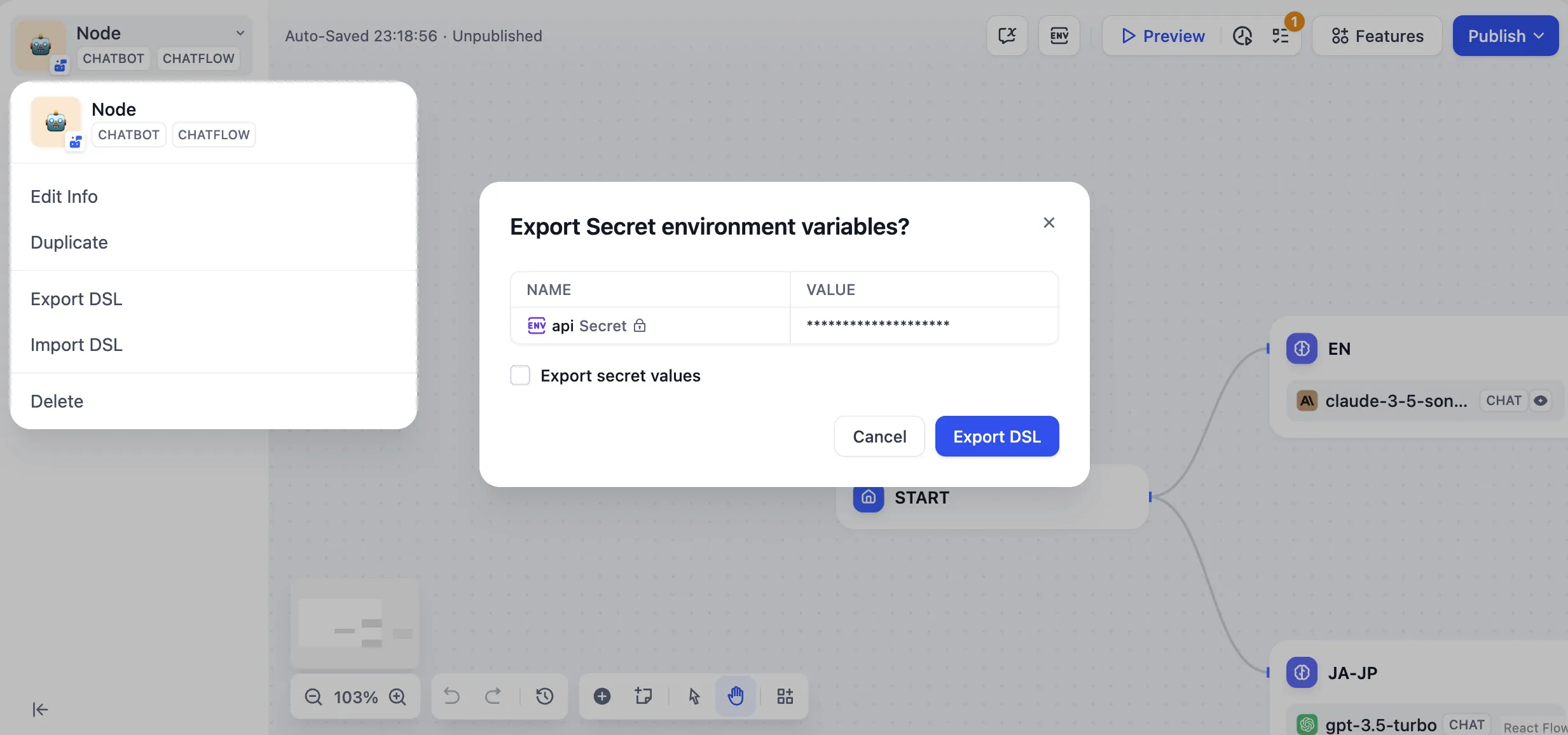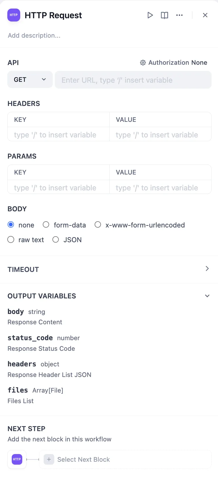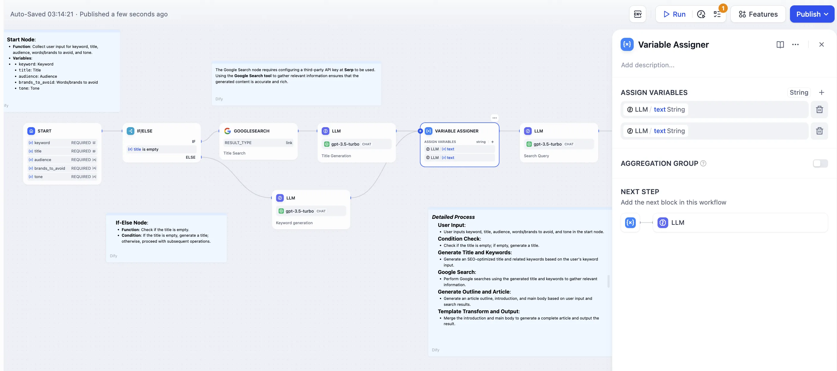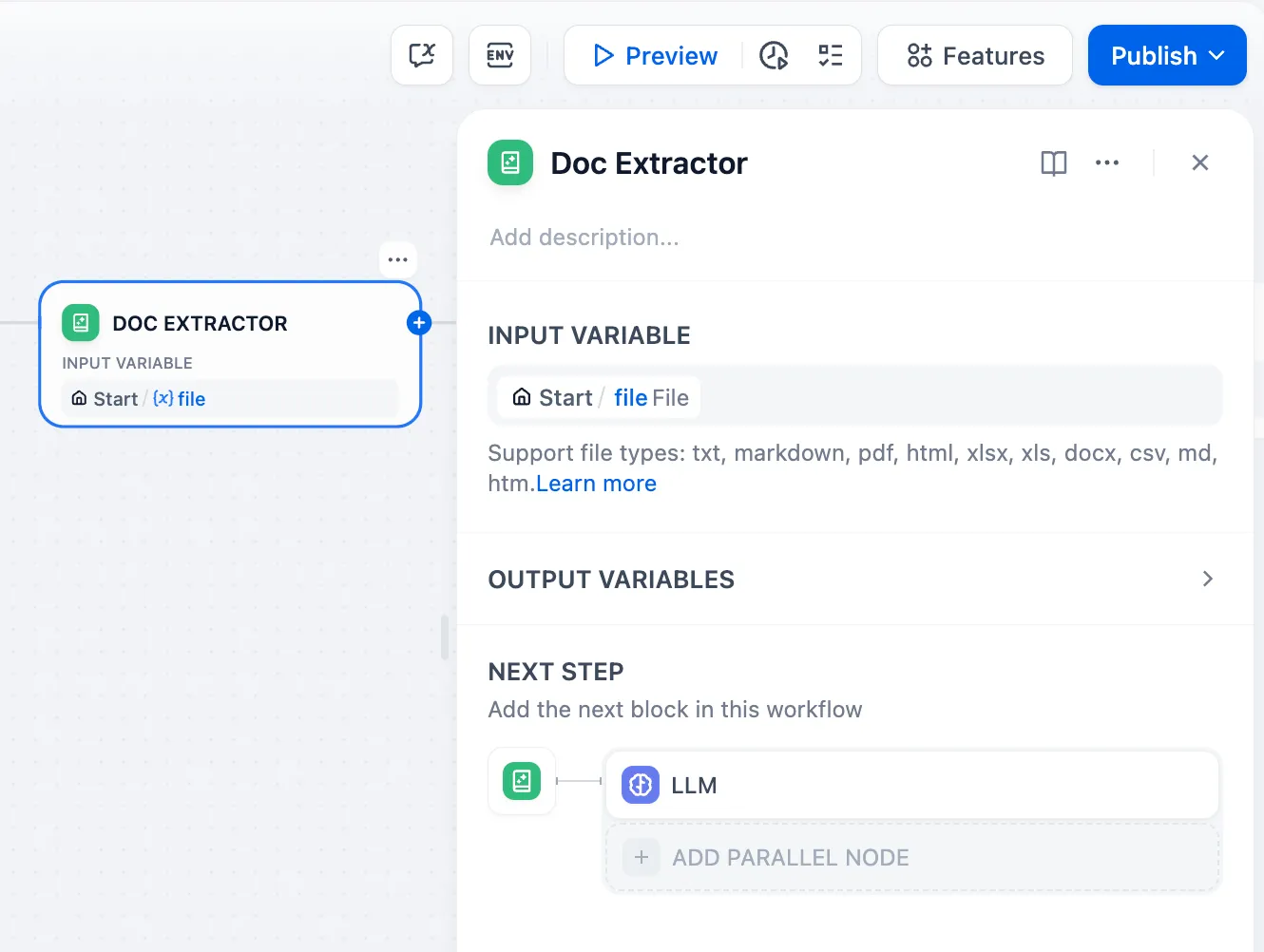 Importantly, it is best not to directly enter the token value as plain text for security reasons, as this is not a good practice. Actually, in the latest version of Dify, we can set token values in **`Environment Variables`**. Click `env` - `Add Variable` to set the token value, so plain text will not appear in the node.
