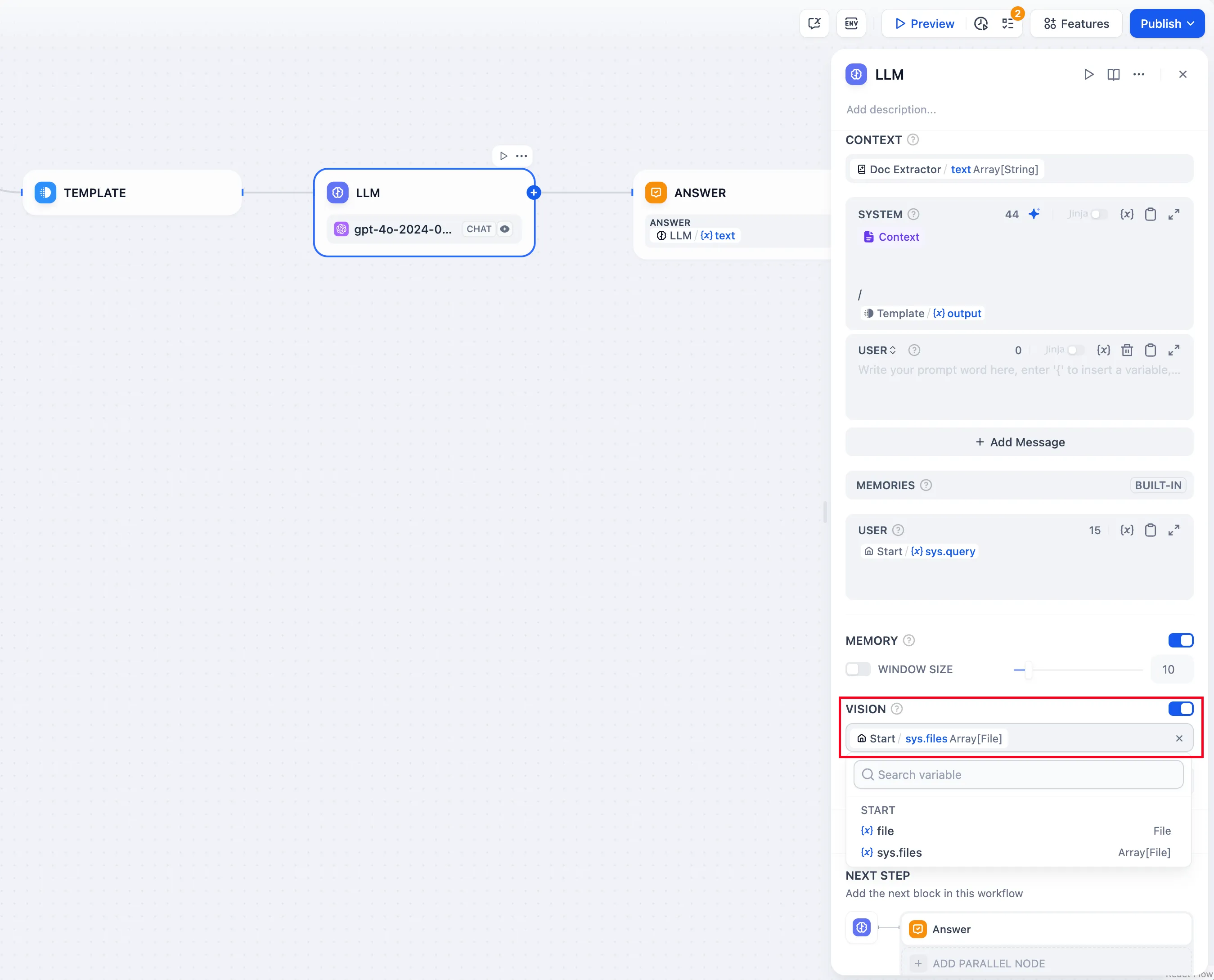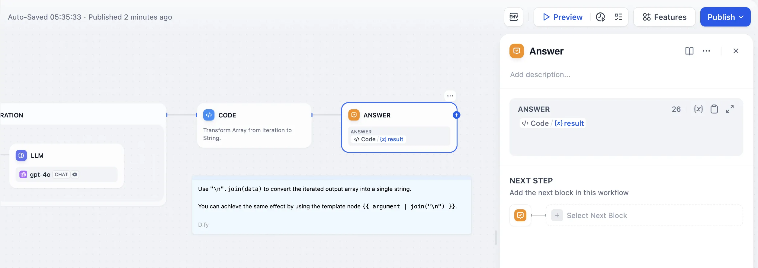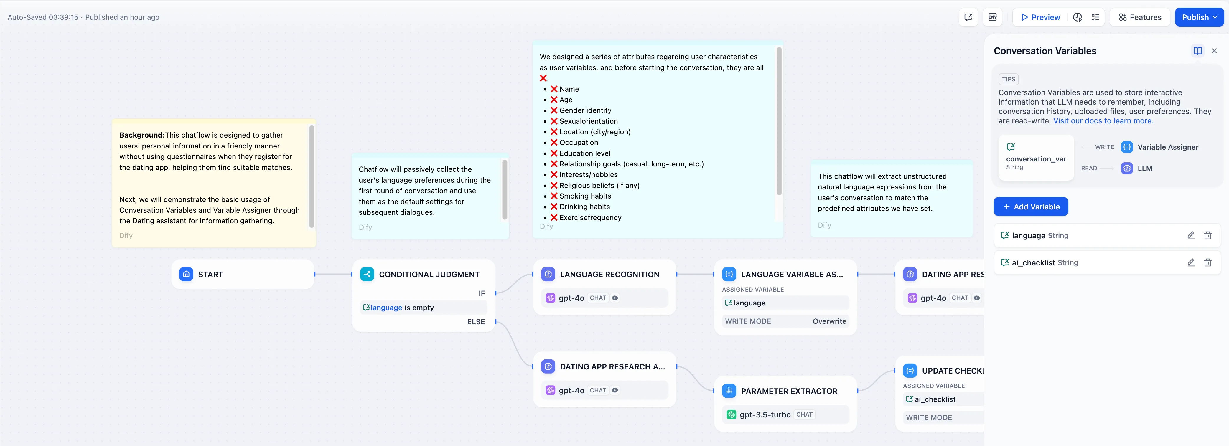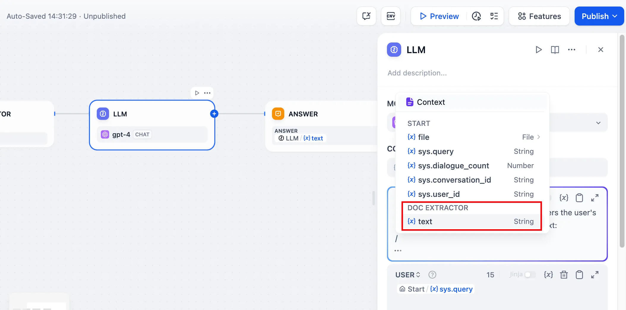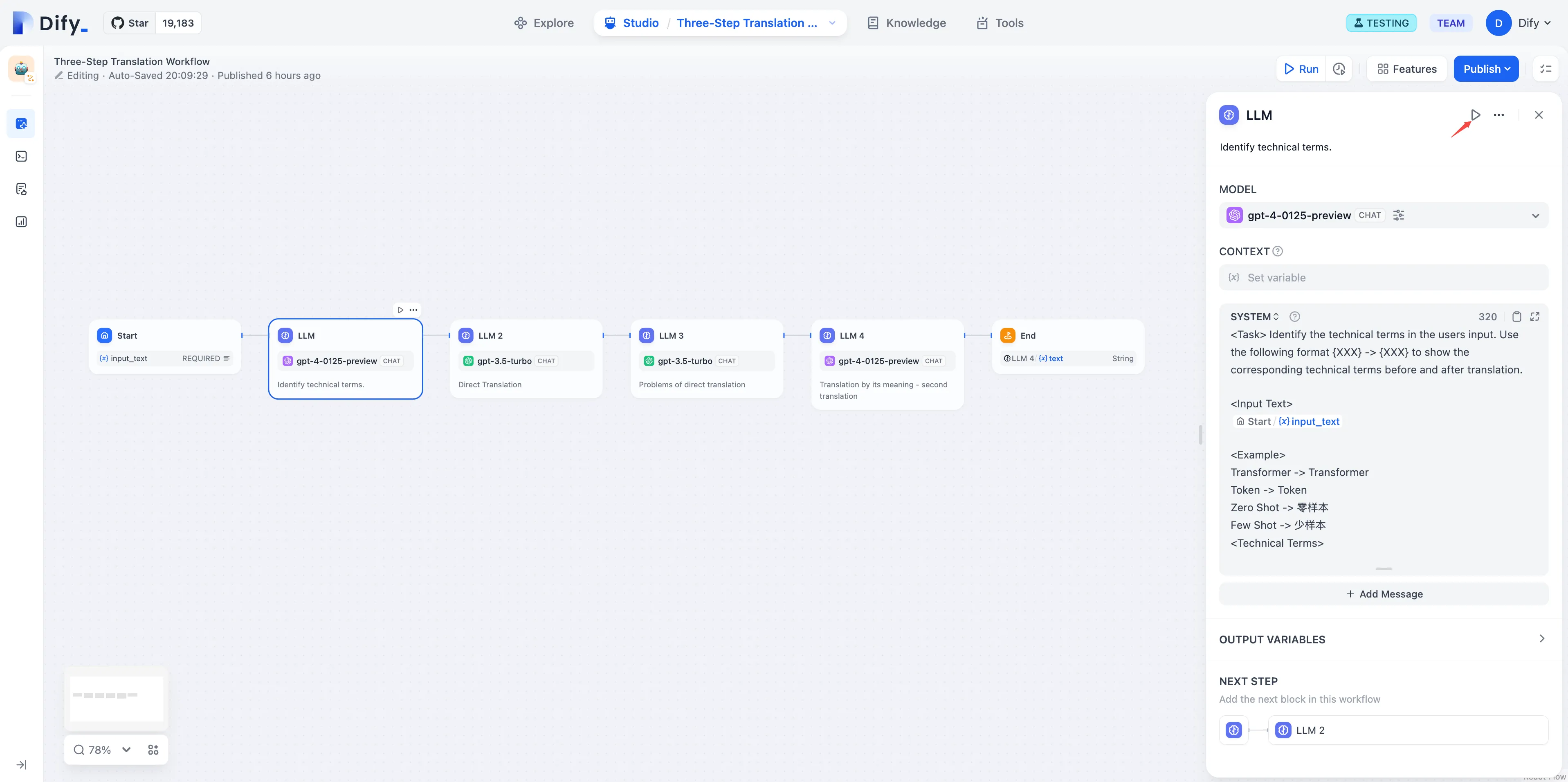 Importantly, it is best not to directly enter the token value as plain text for security reasons, as this is not a good practice. Actually, in the latest version of Dify, we can set token values in **`Environment Variables`**. Click `env` - `Add Variable` to set the token value, so plain text will not appear in the node.