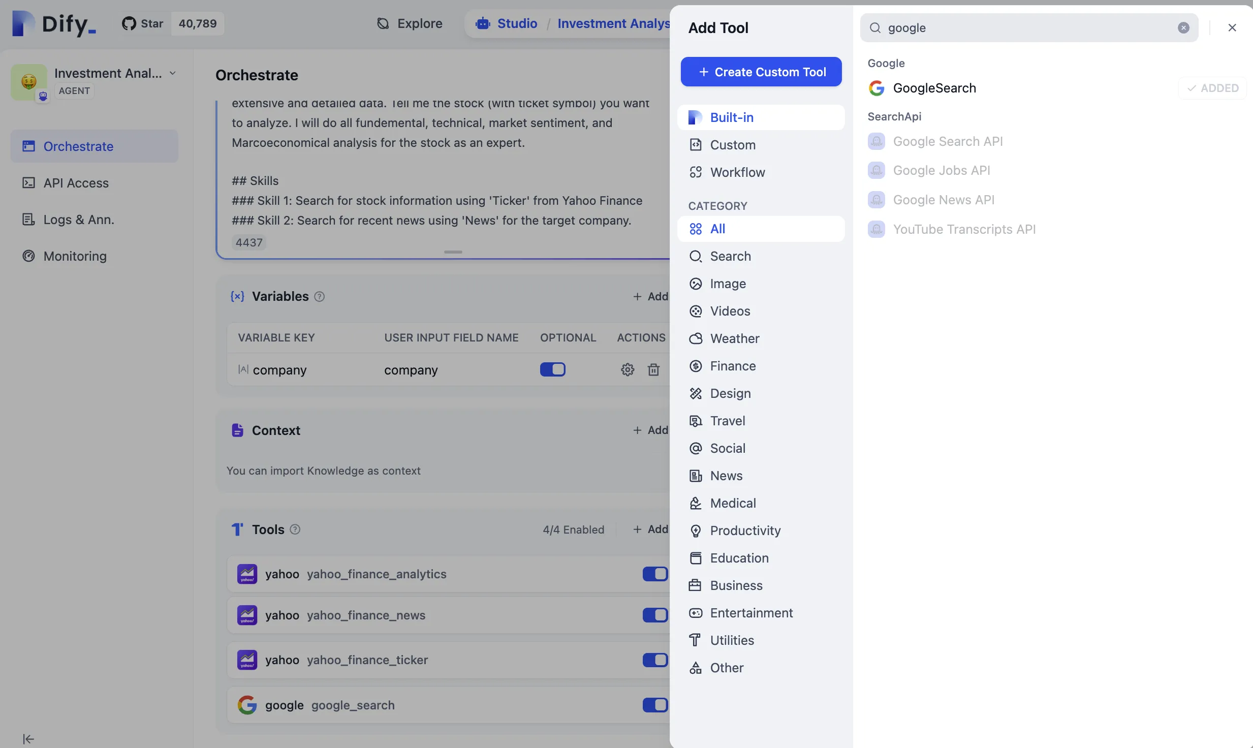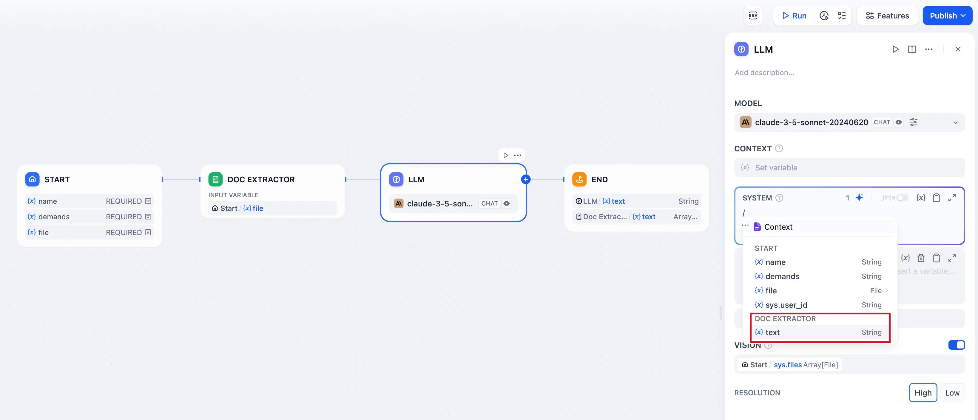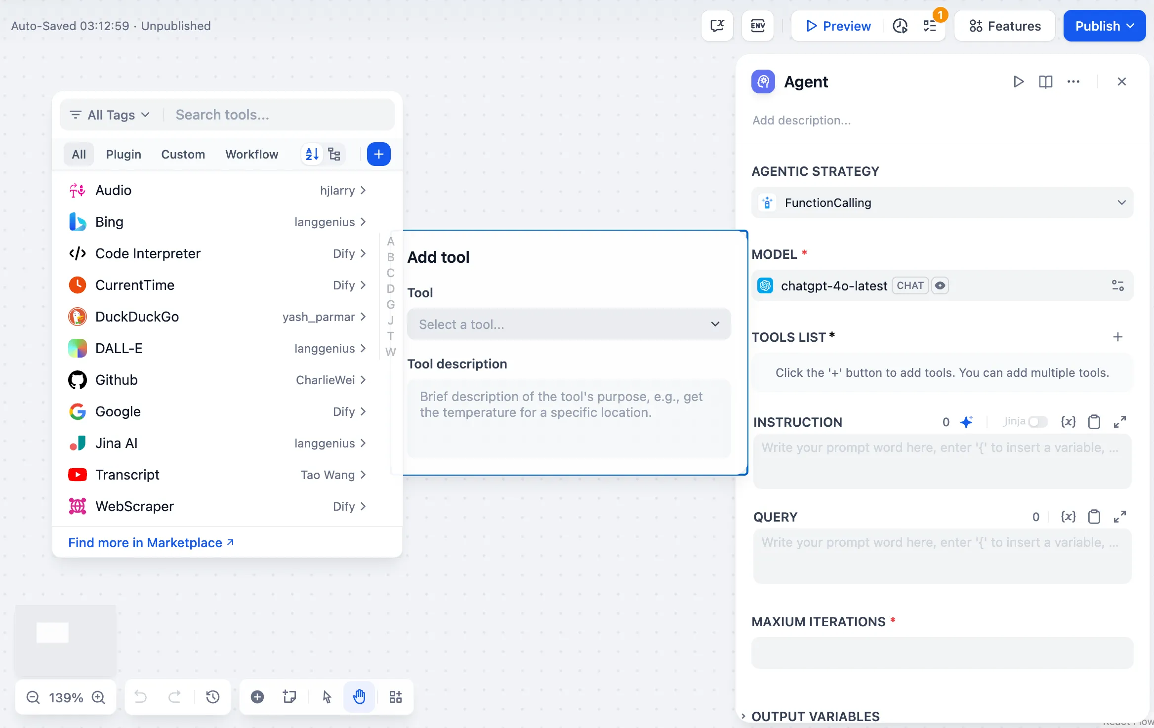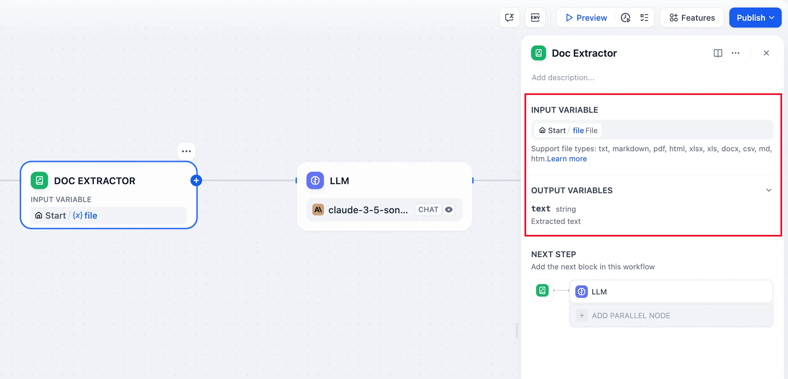 Importantly, it is best not to directly enter the token value as plain text for security reasons, as this is not a good practice. Actually, in the latest version of Dify, we can set token values in **`Environment Variables`**. Click `env` - `Add Variable` to set the token value, so plain text will not appear in the node.
