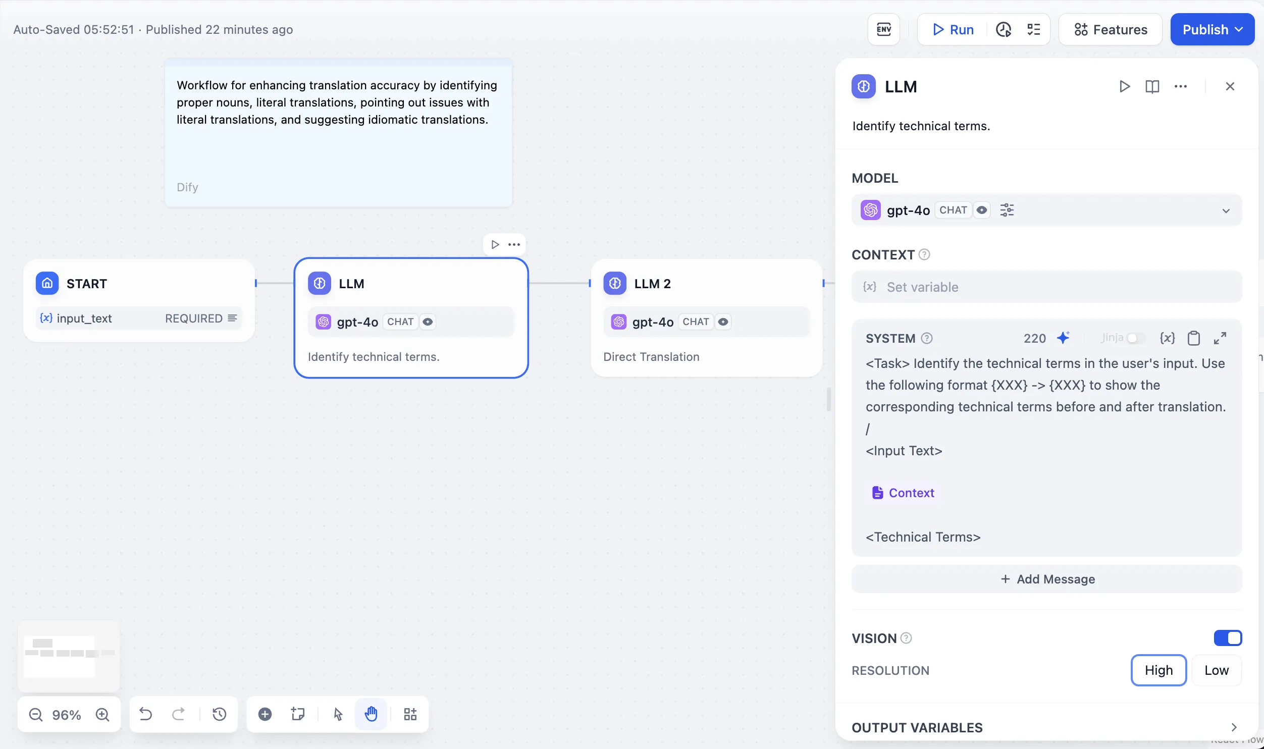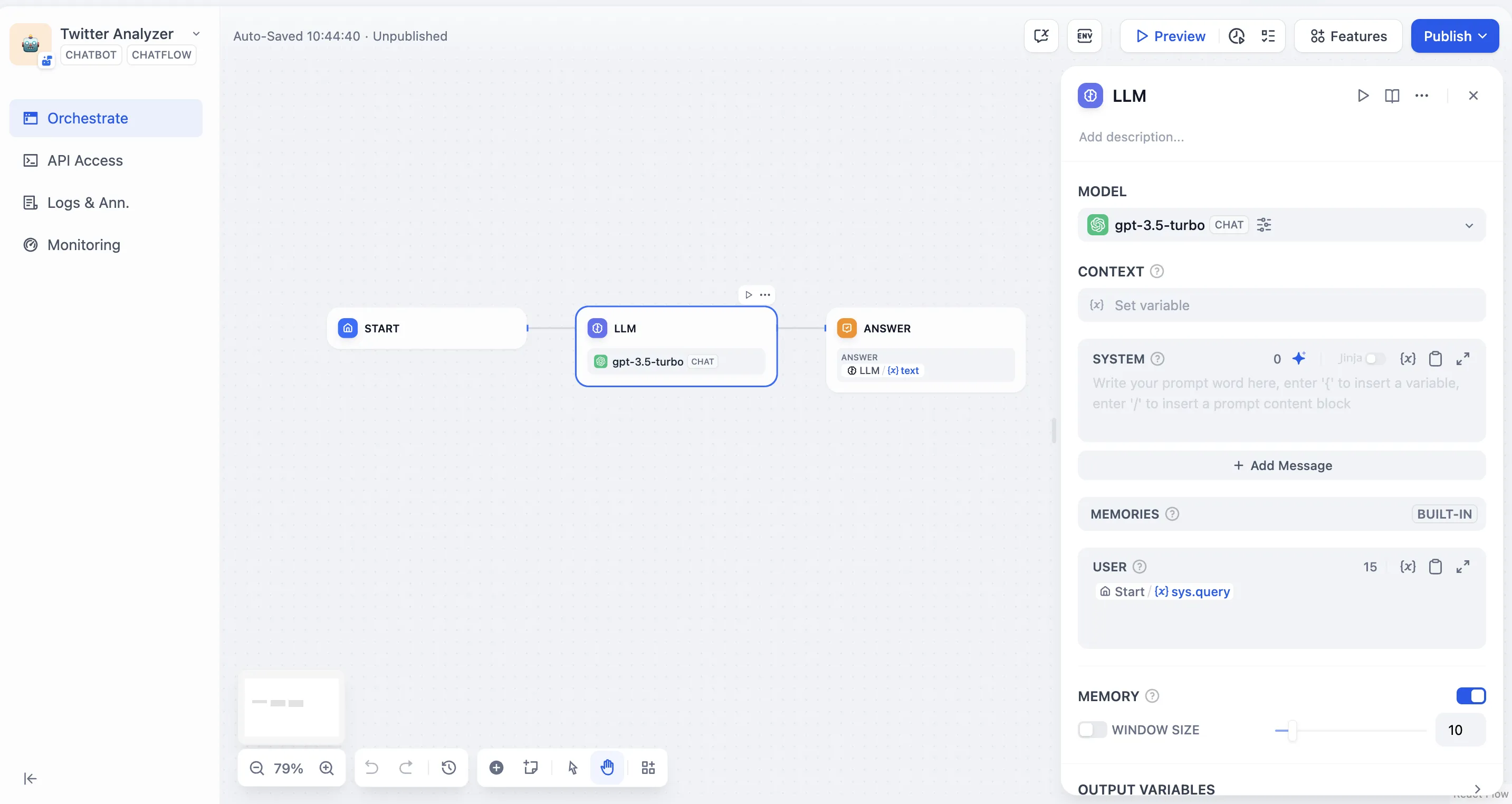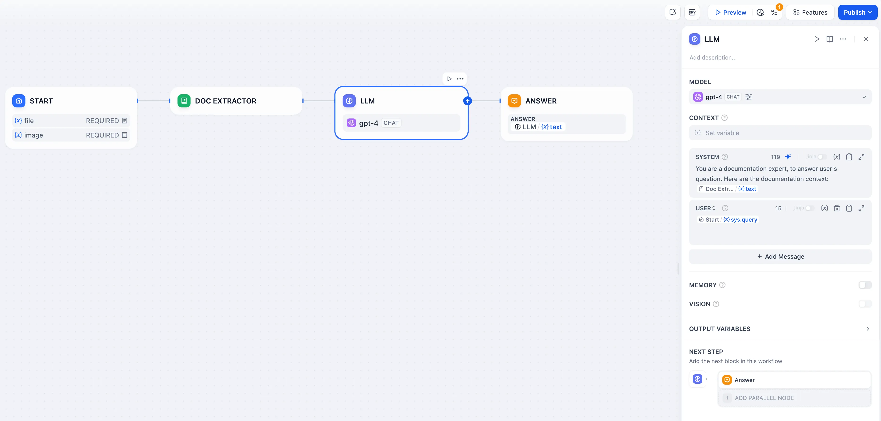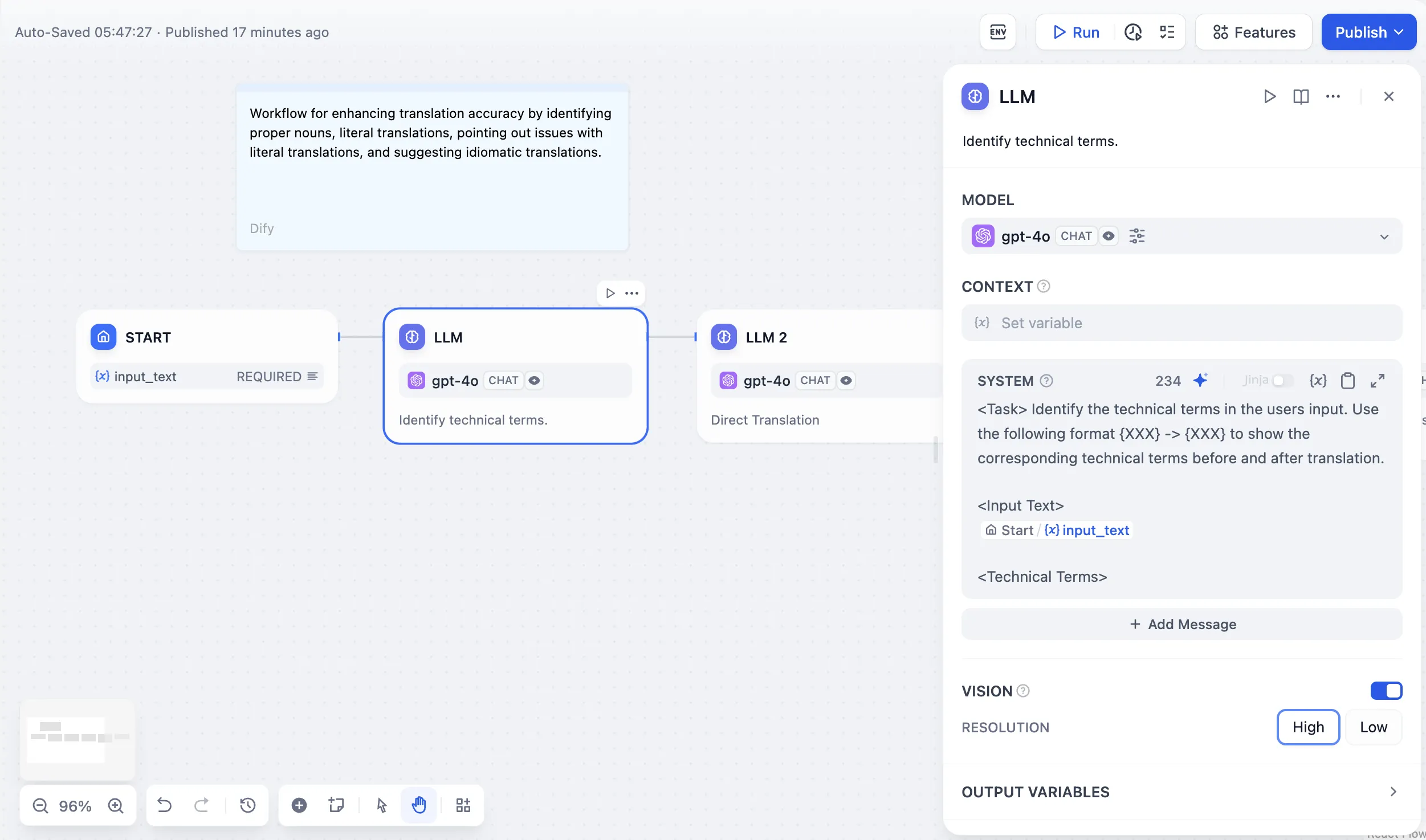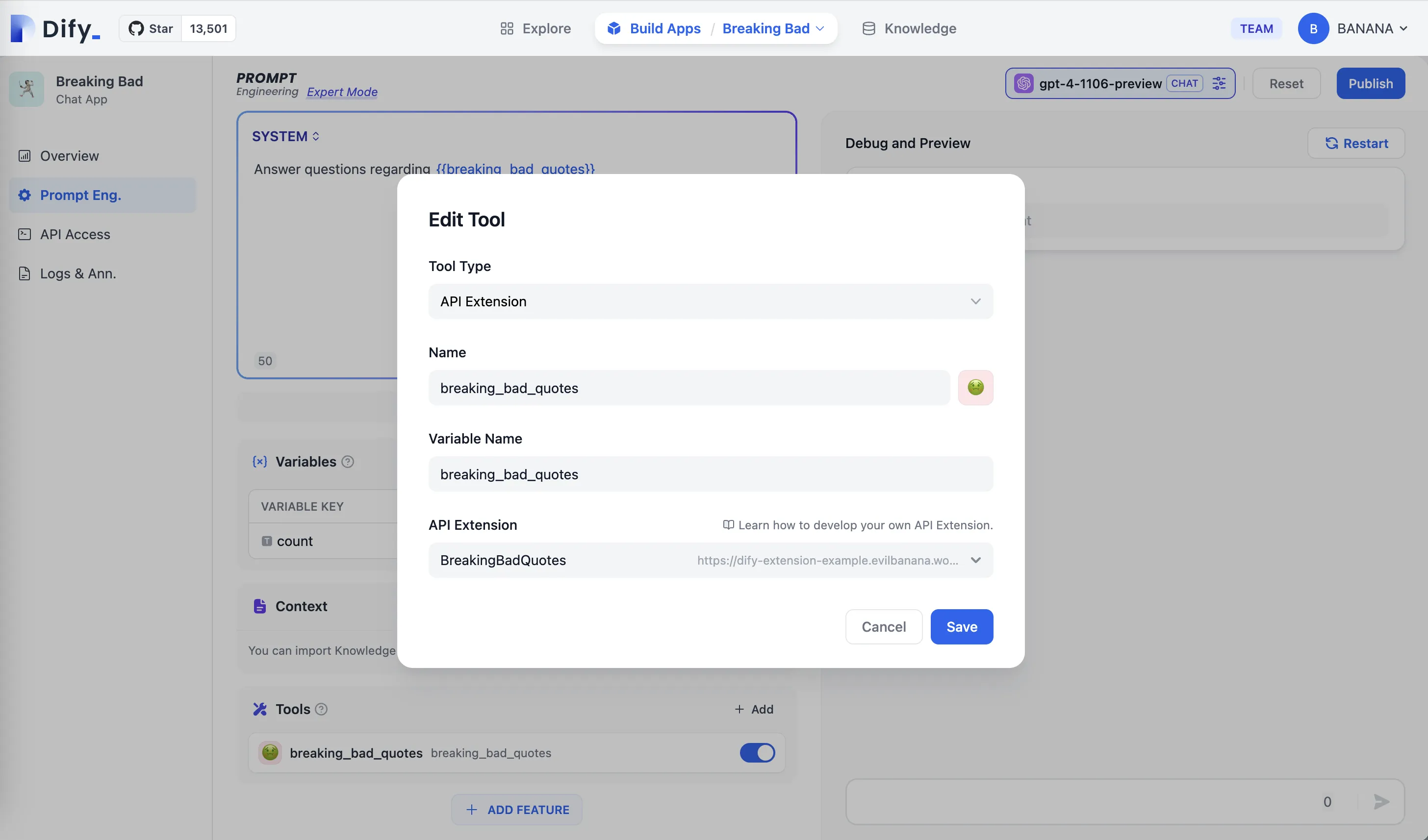 Importantly, it is best not to directly enter the token value as plain text for security reasons, as this is not a good practice. Actually, in the latest version of Dify, we can set token values in **`Environment Variables`**. Click `env` - `Add Variable` to set the token value, so plain text will not appear in the node.