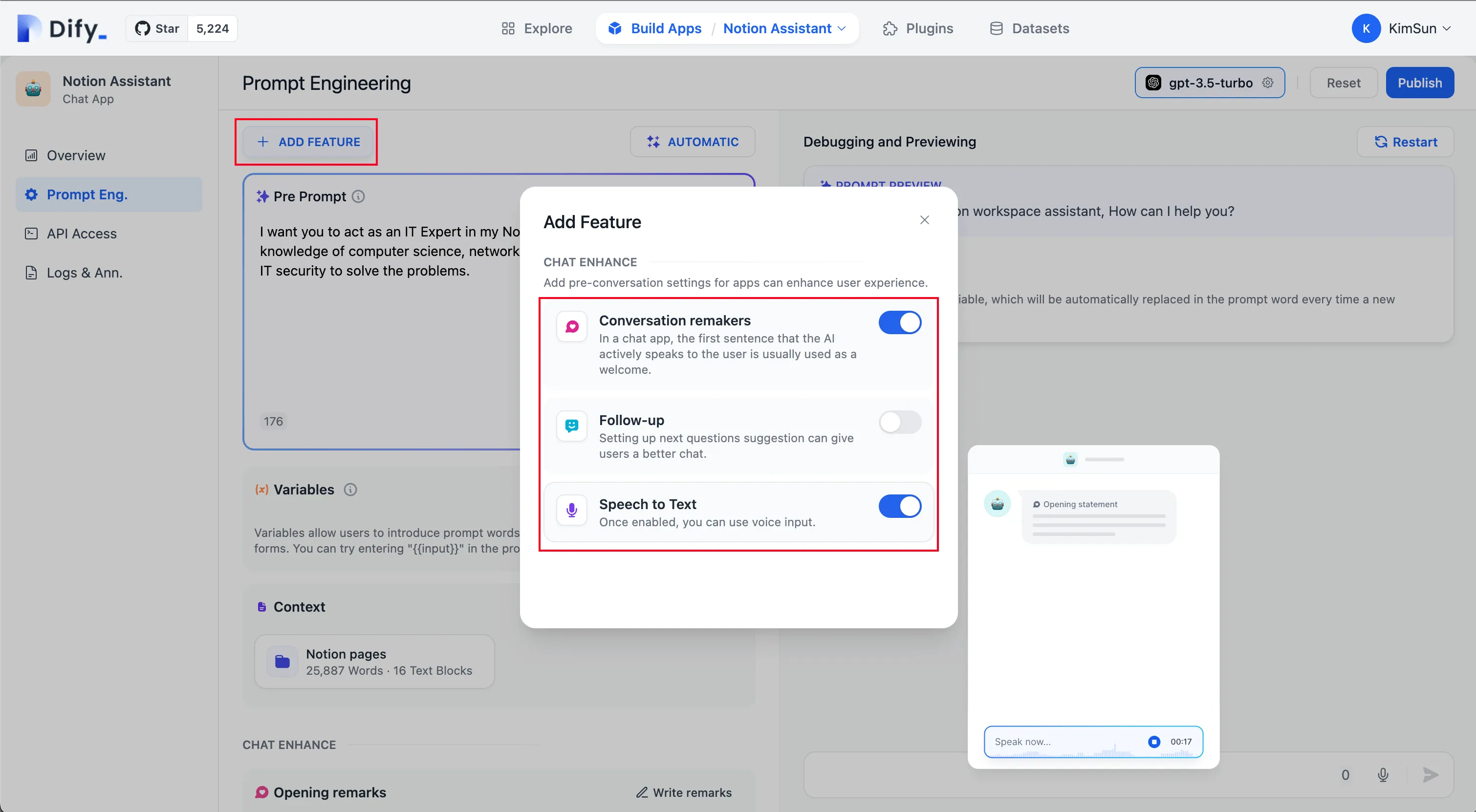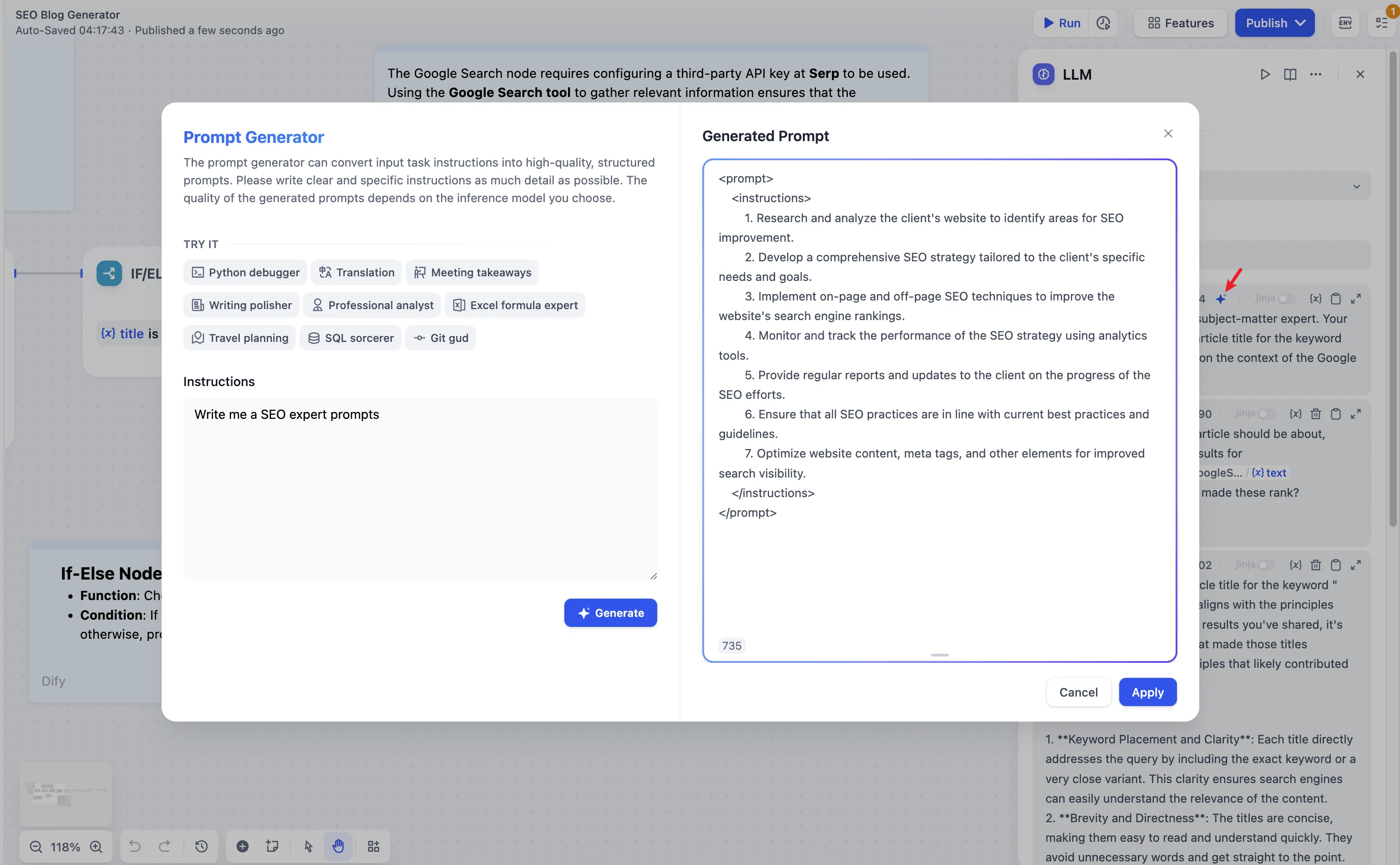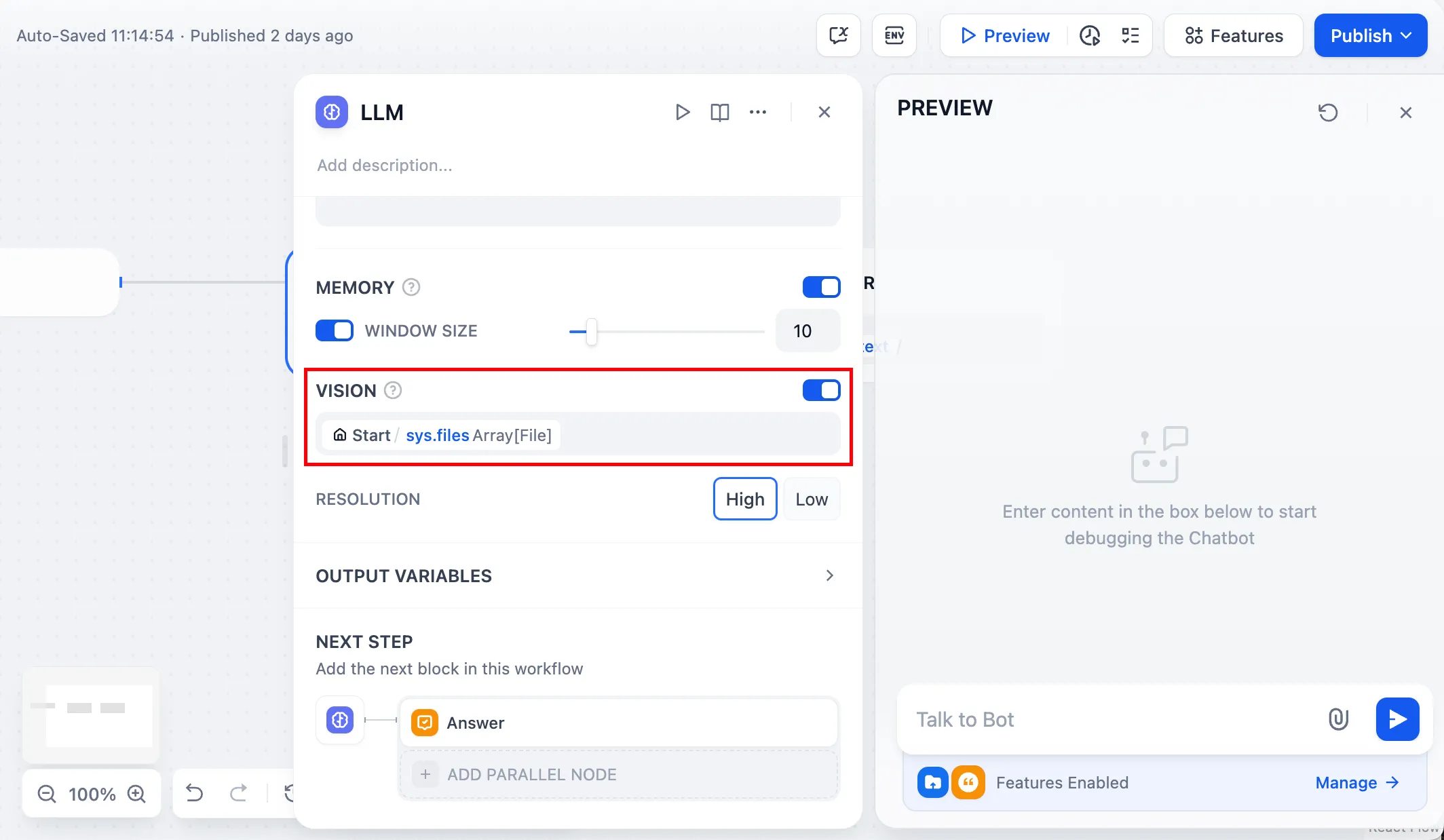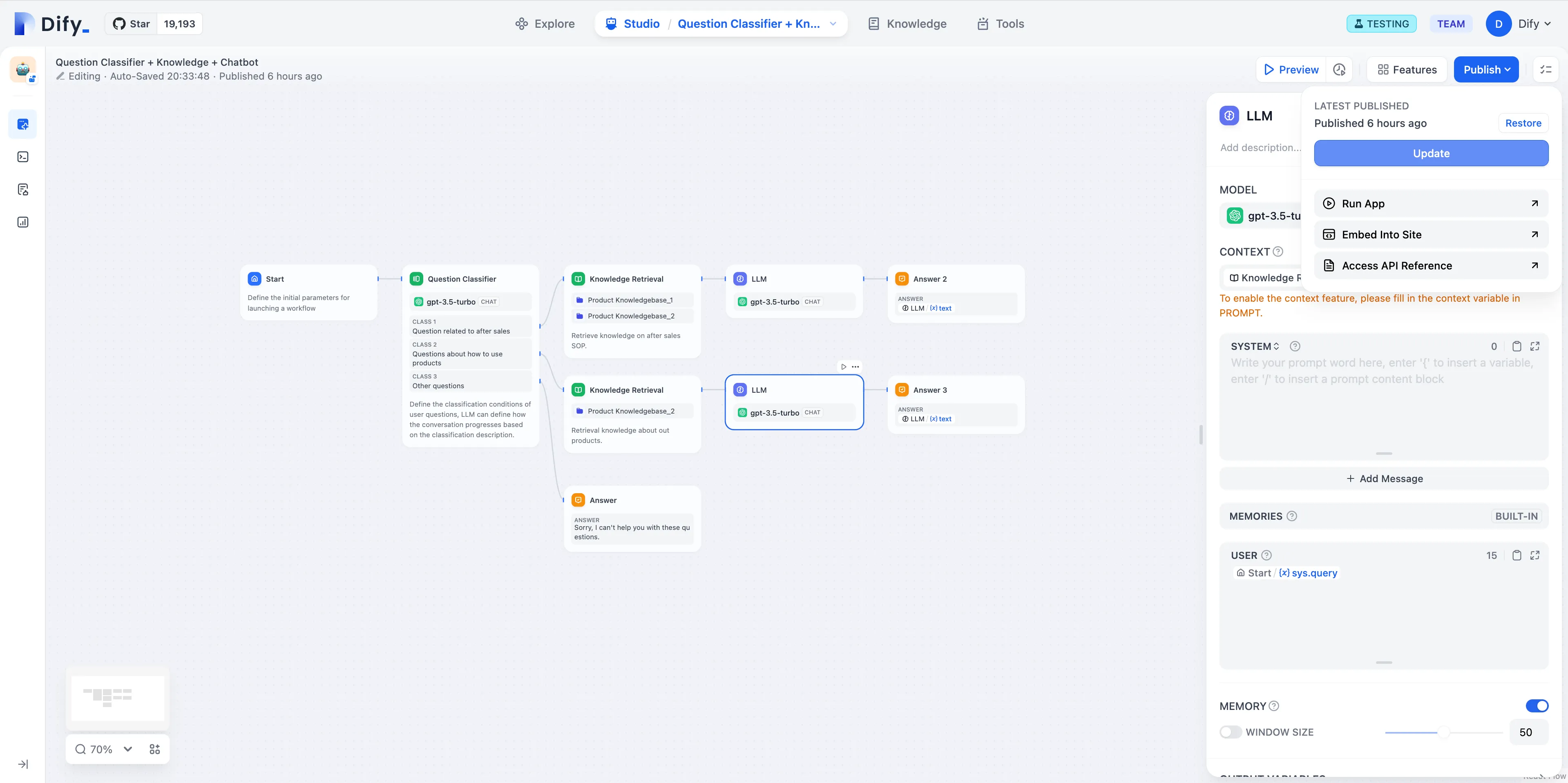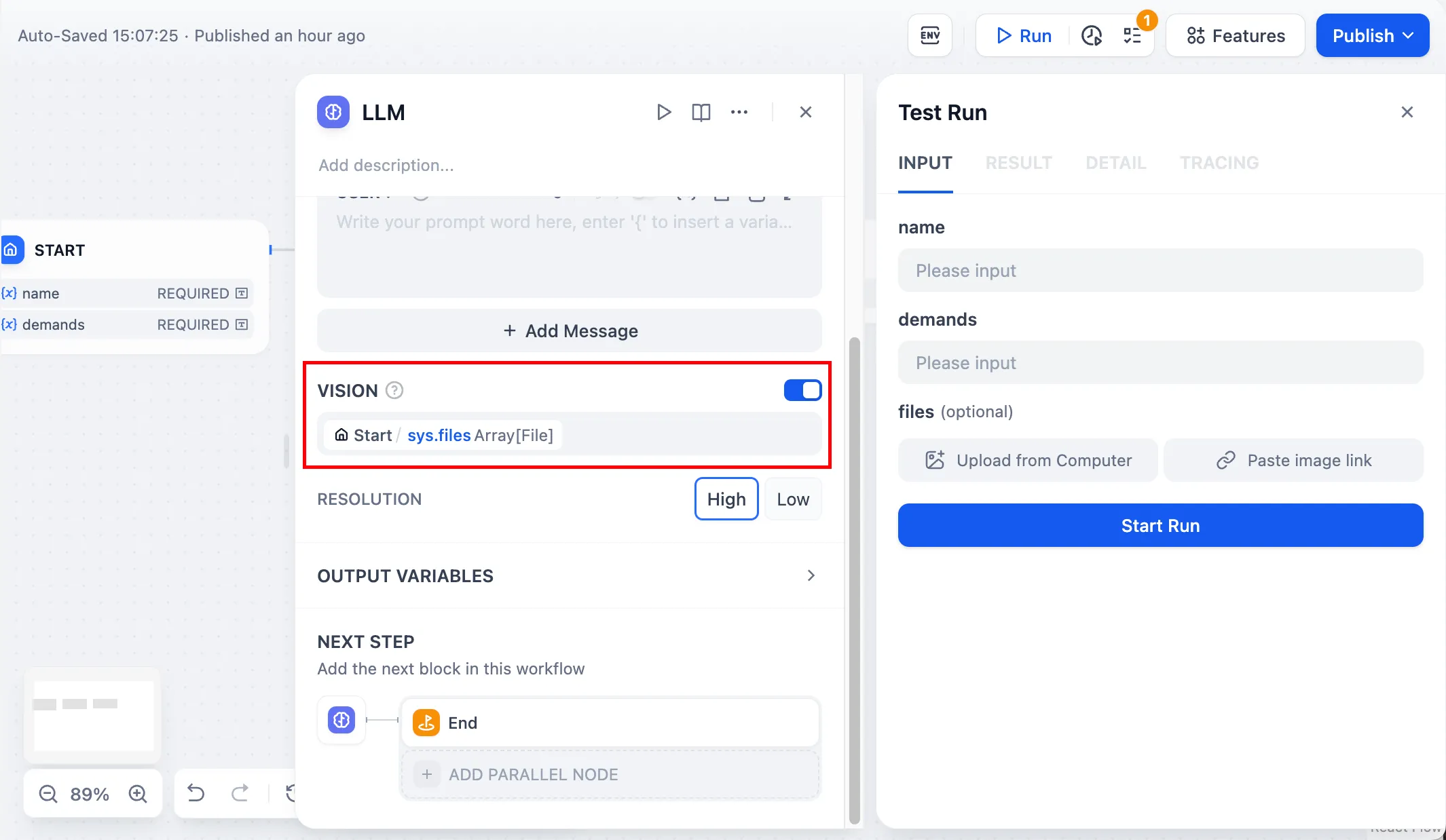 Importantly, it is best not to directly enter the token value as plain text for security reasons, as this is not a good practice. Actually, in the latest version of Dify, we can set token values in **`Environment Variables`**. Click `env` - `Add Variable` to set the token value, so plain text will not appear in the node.