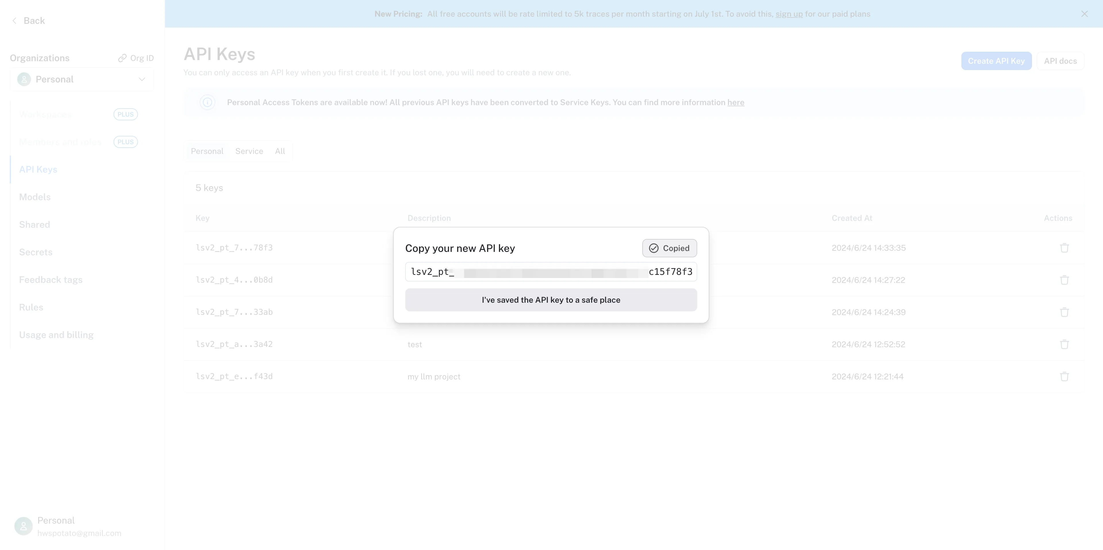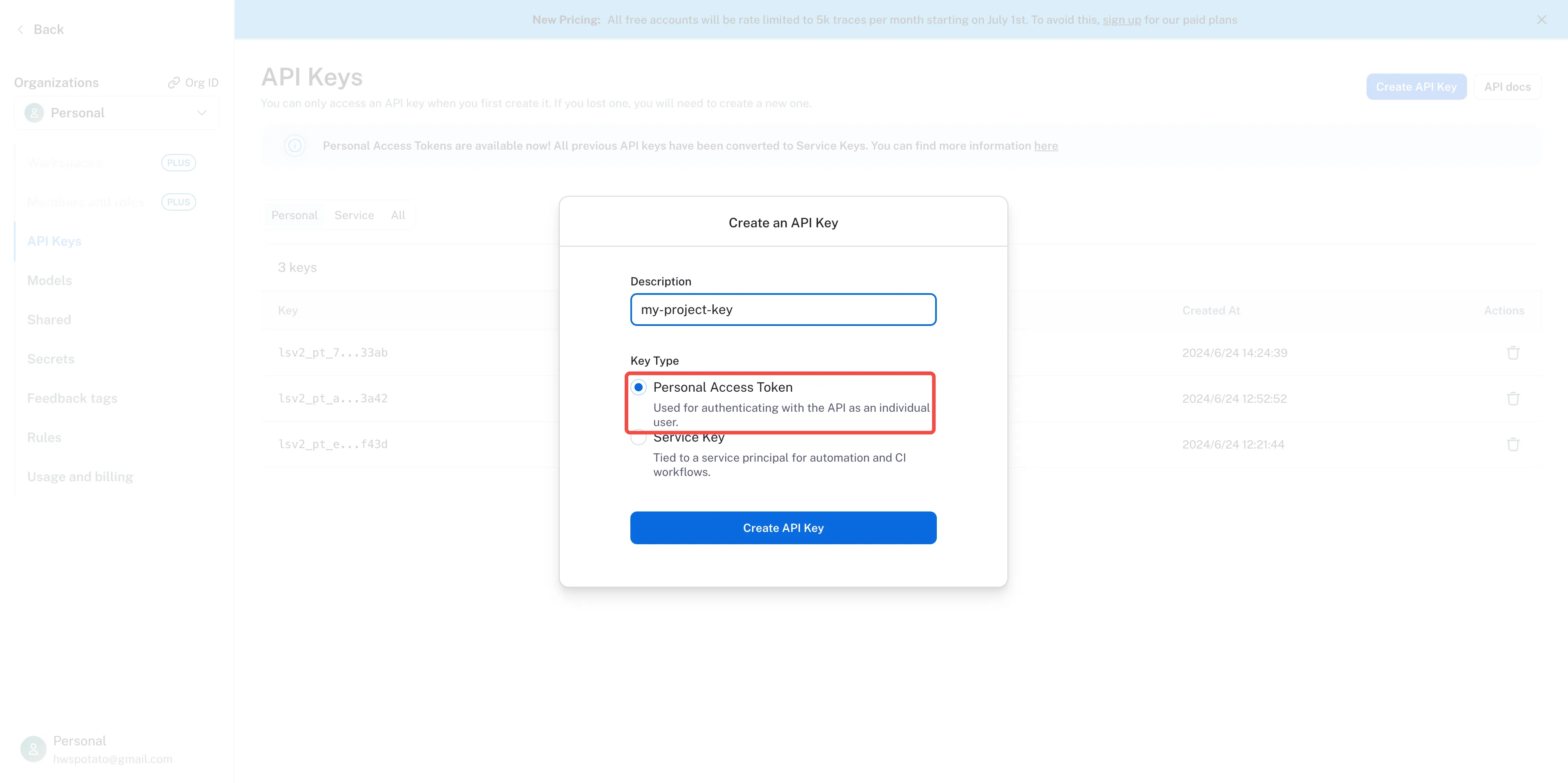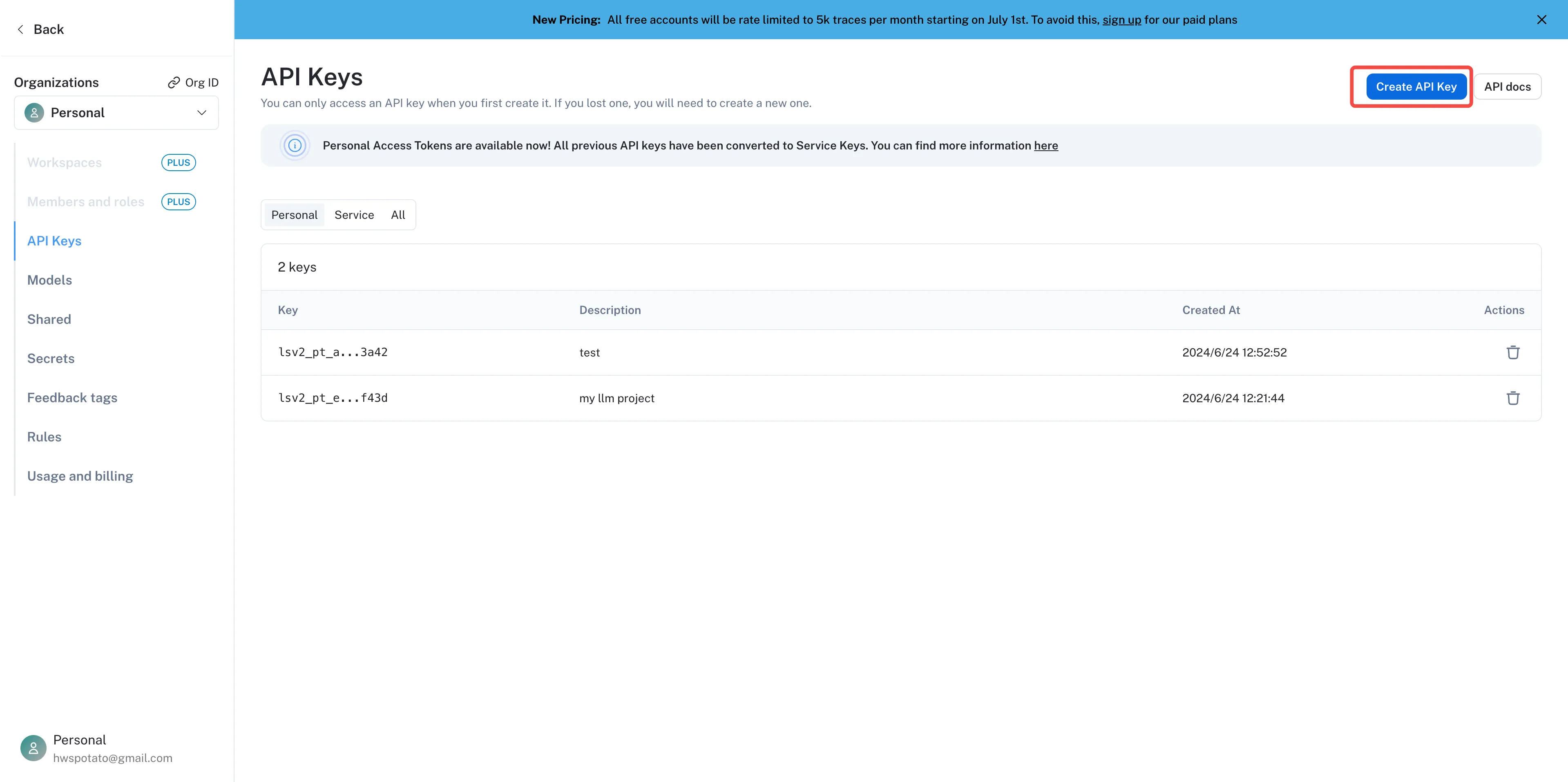 2. Set the API key of Hugging Face ([obtain address](https://huggingface.co/settings/tokens)).