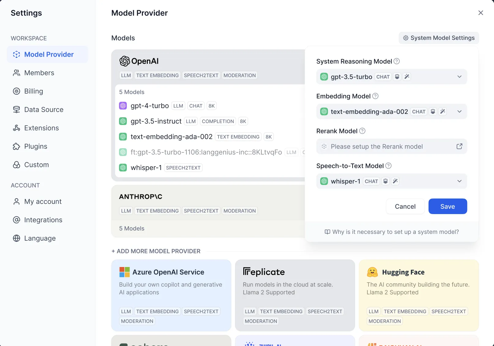 **Embedding Model:** This is used to vectorize the annotated text. Changing the model will regenerate the embeddings.