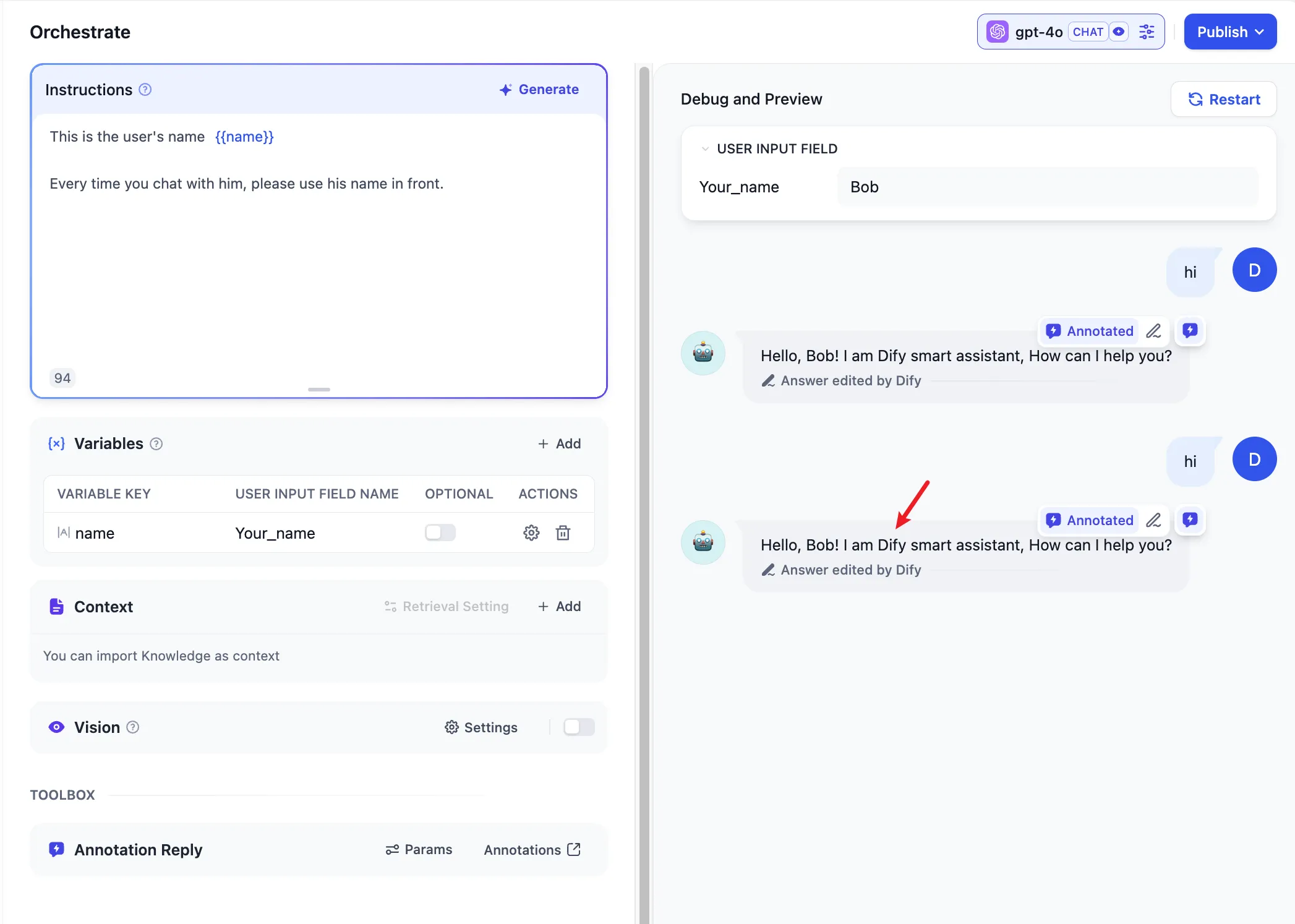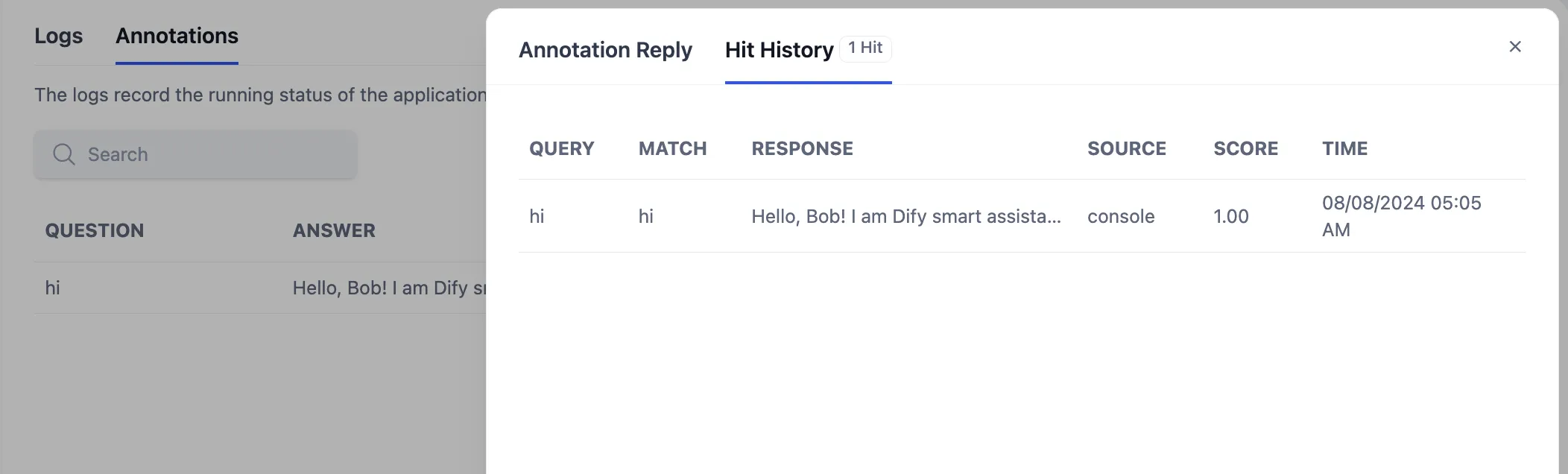 Re-enter the same user question, and the system will use the saved annotation to reply to the user's question directly.