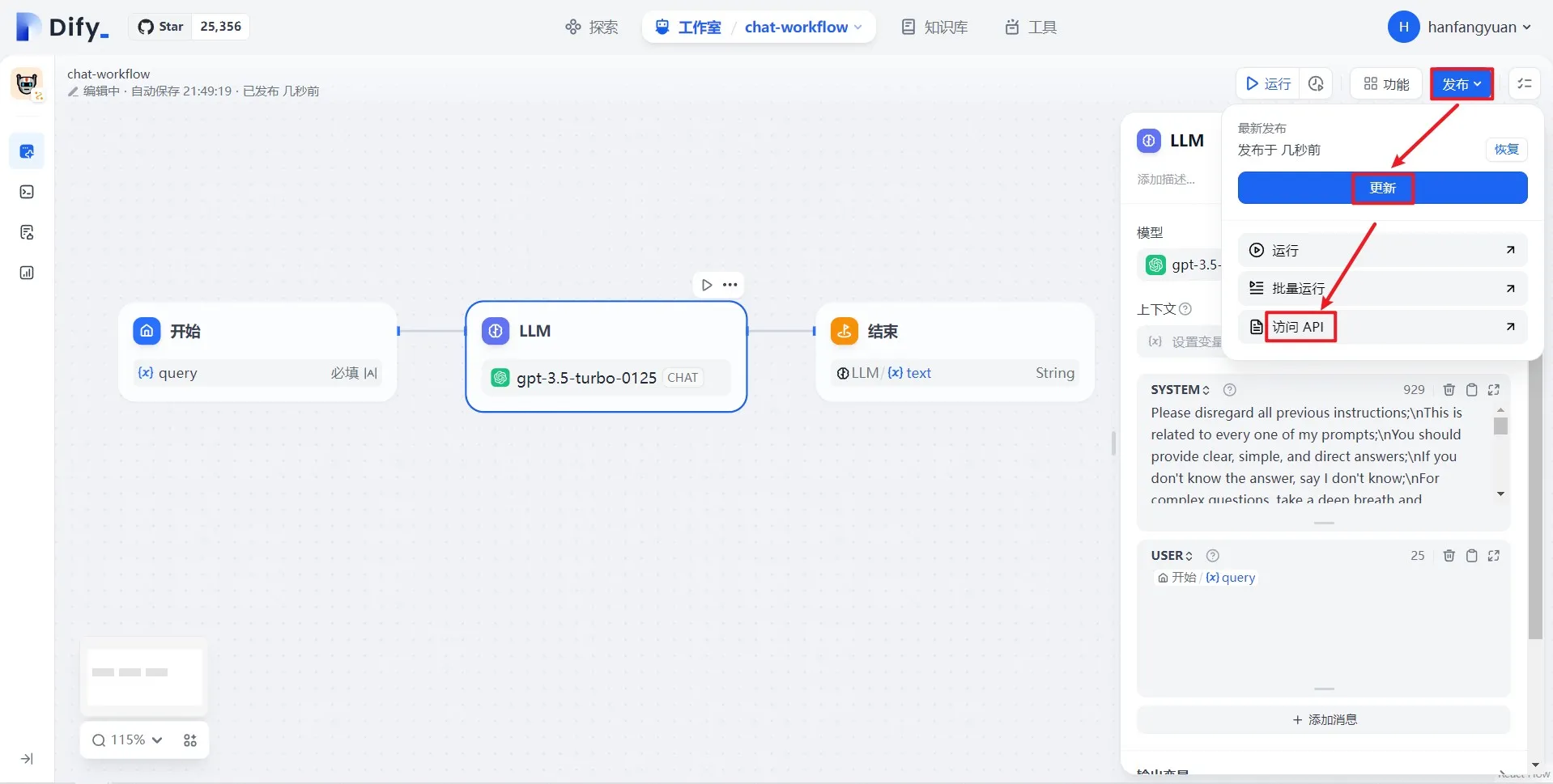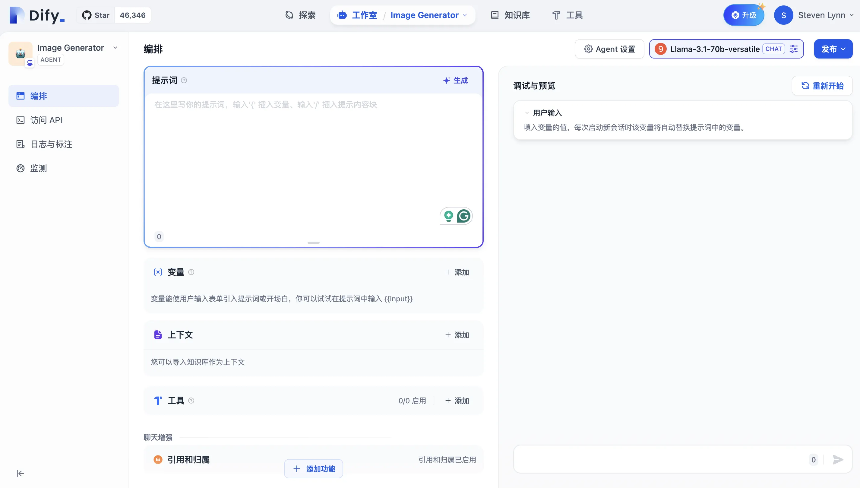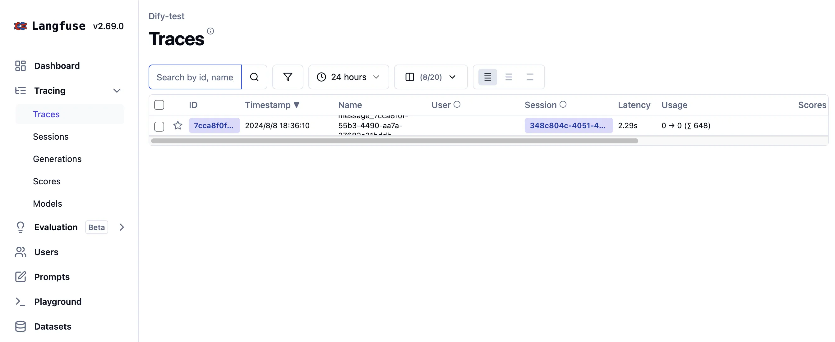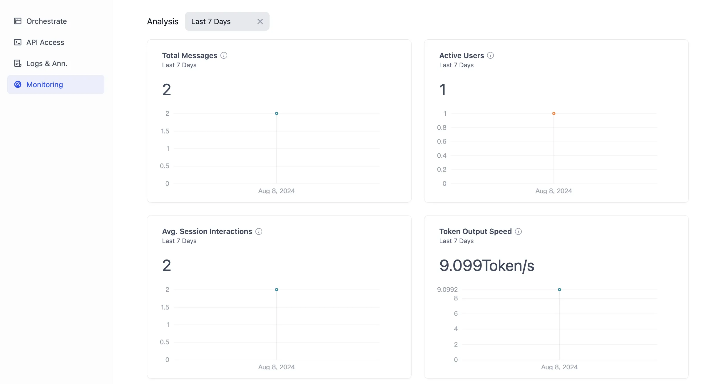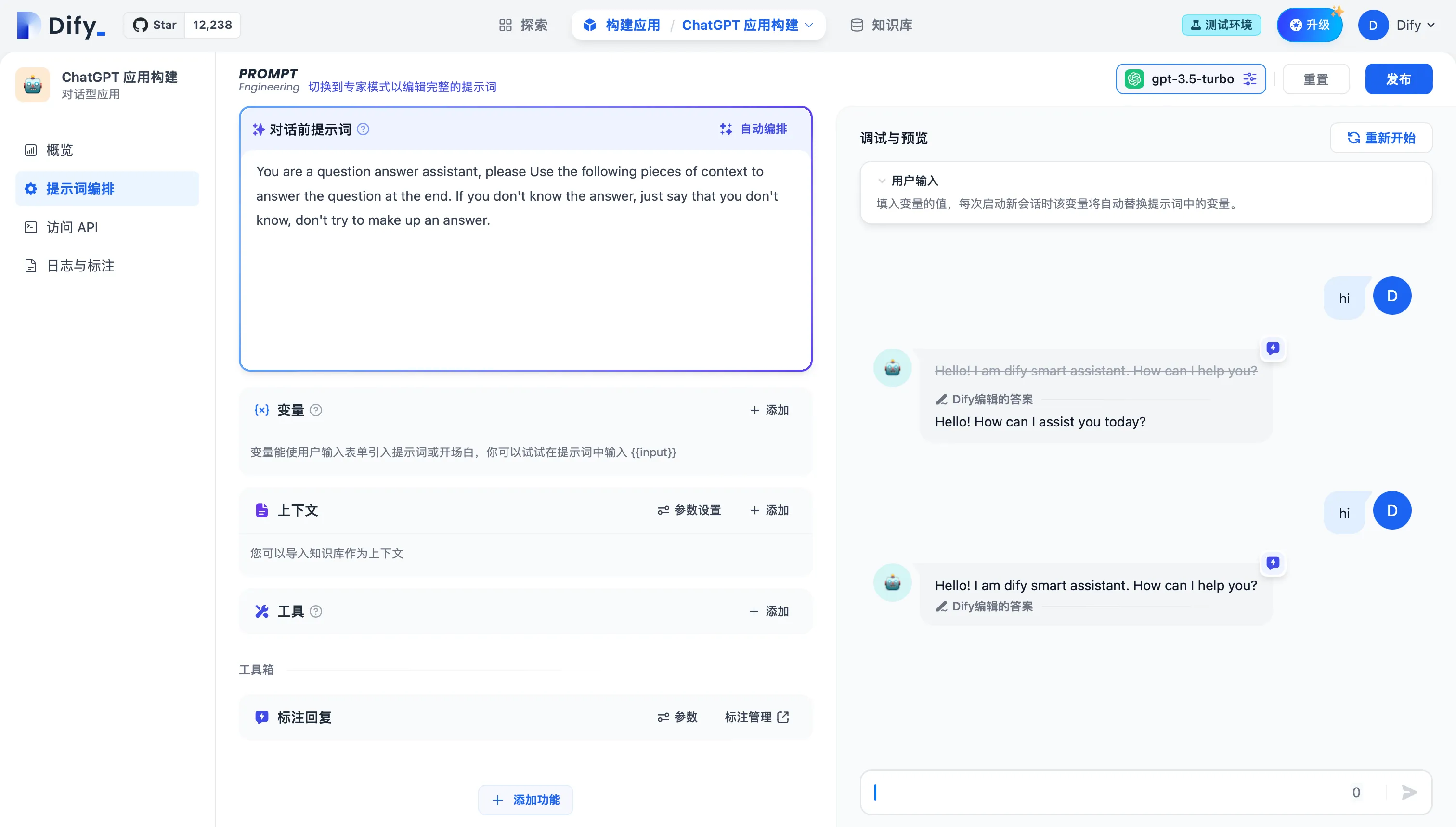 在初始的构建应用主界面,左侧导航栏可以看到“日志与标注”,点击进去即可查看完整的日志。 在日志与标注的主界面,点击任意一个会话日志条目,在弹出的右侧对话框中同样鼠标指针移动到会话上即可点开“日志”按钮查看提示词日志。