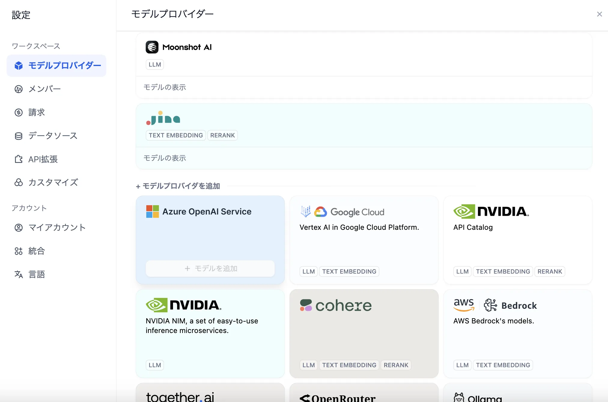 3. モデルを選択します。[言語モデル](https://replicate.com/collections/language-models)と[埋め込みモデル](https://replicate.com/collections/embedding-models)からモデルを選びます。