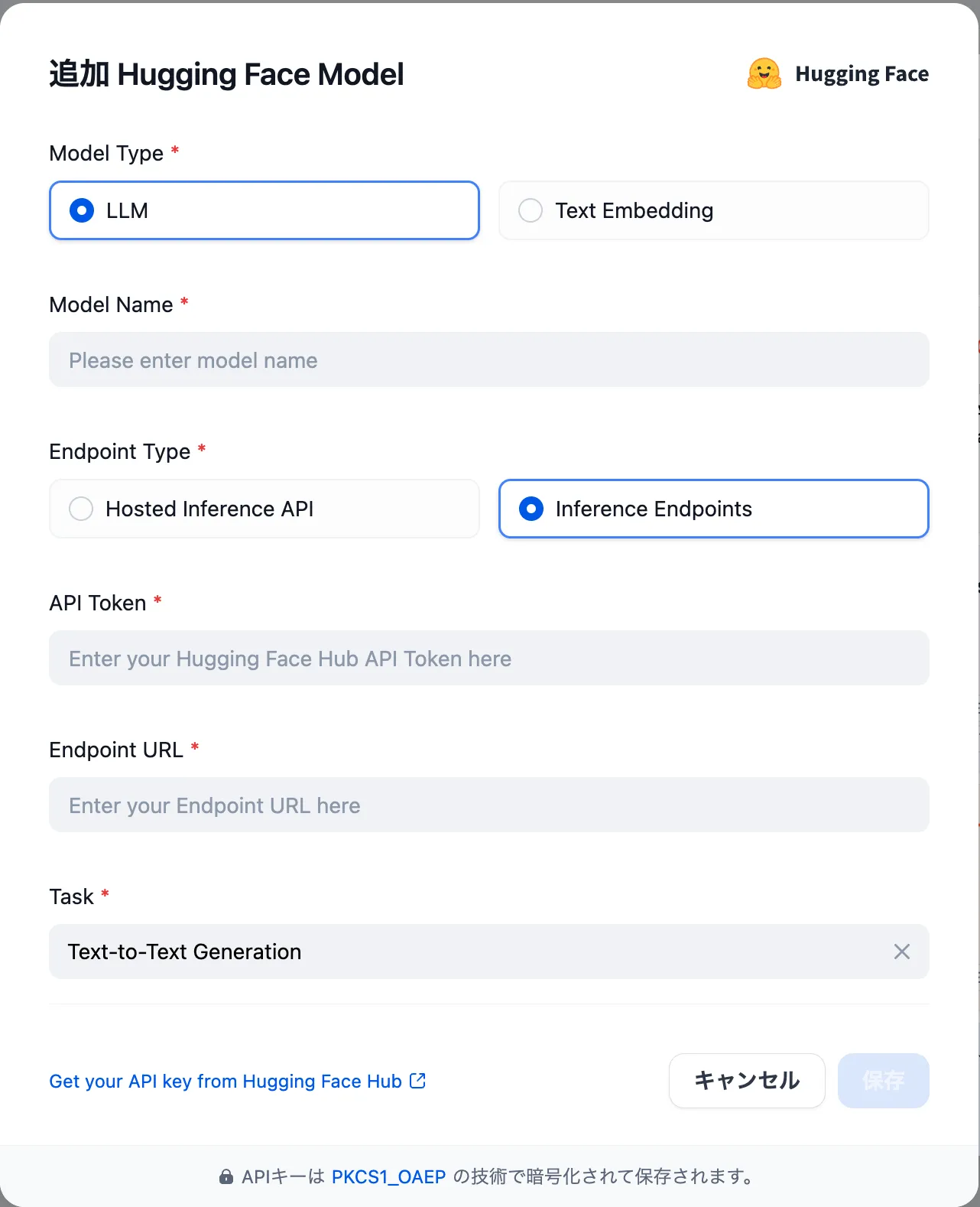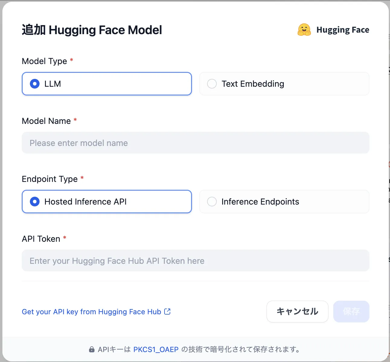 2. Hugging FaceのAPIキーを設定します([取得はこちら](https://huggingface.co/settings/tokens))。