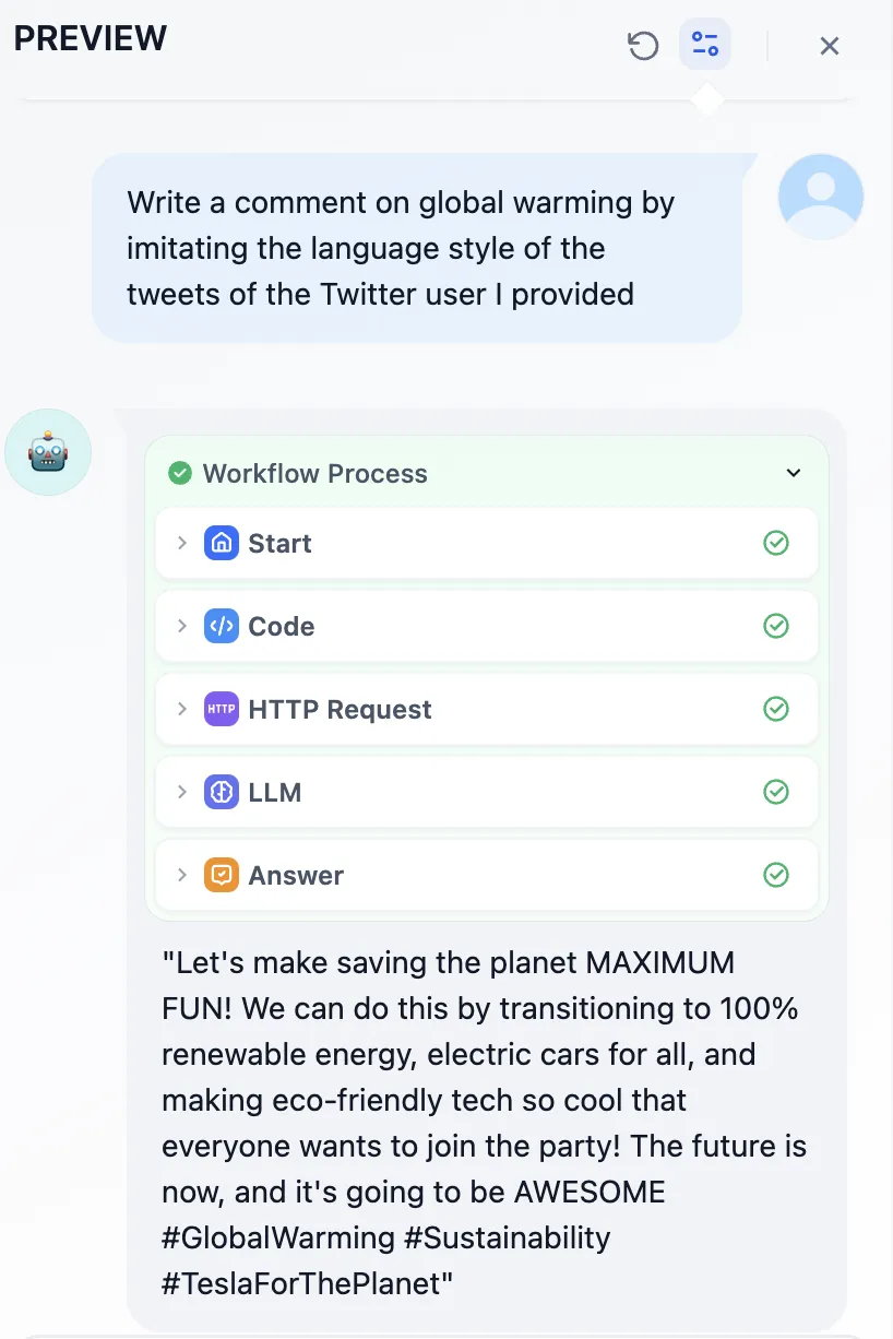 For example, I want to analyze Elon Musk's tweets and write a tweet about global warming in his tone.