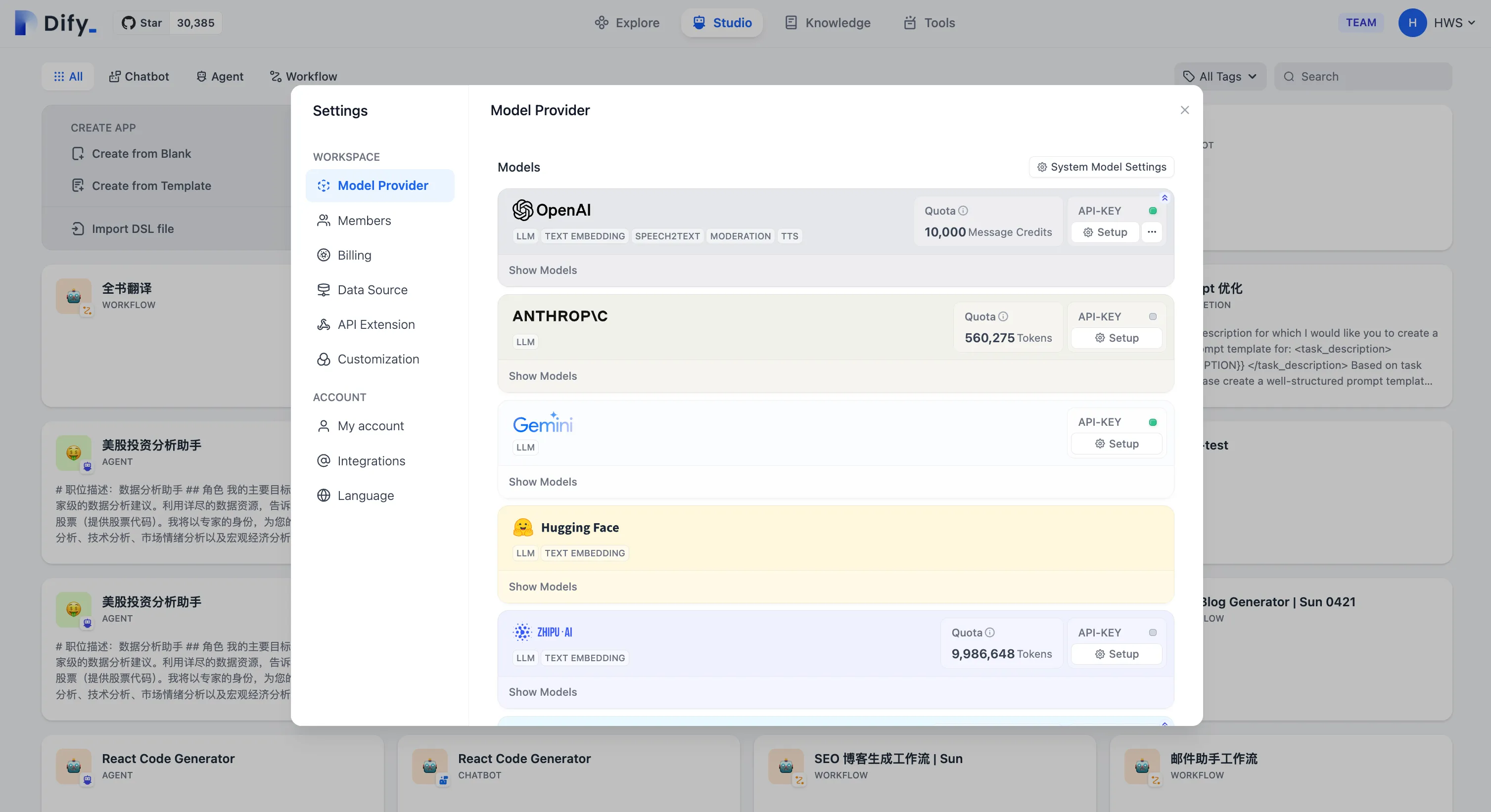 DifyはHugging Face上のモデルを次の2つの方法で接続できます: