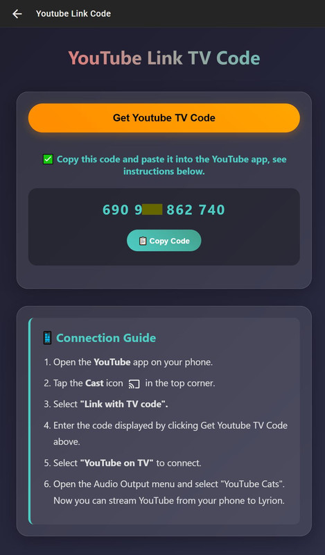- Once completed, you can choose to cast to the TV (Youtube on LCD).