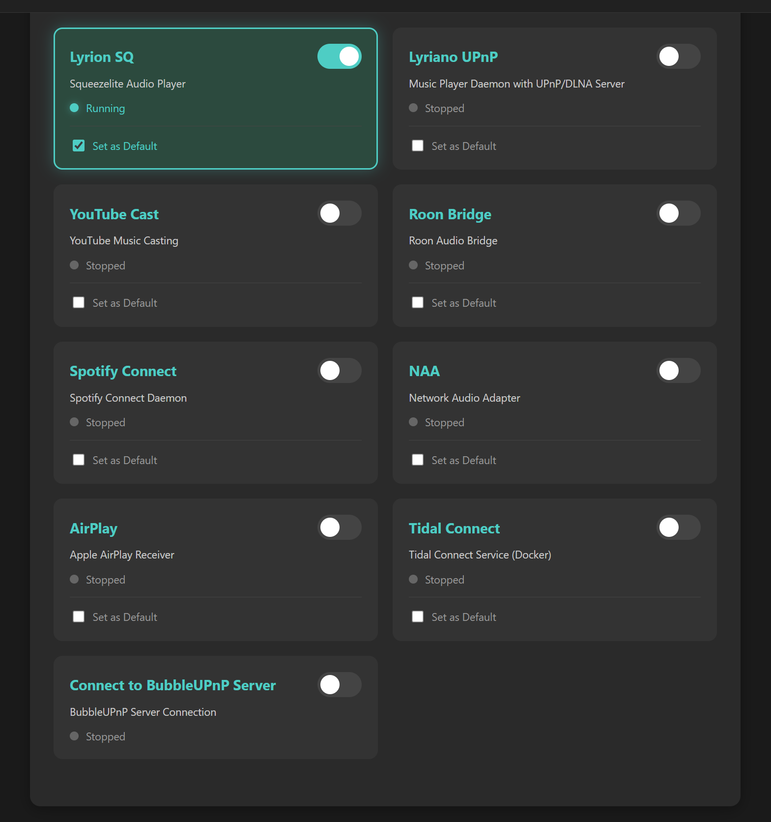 - Choose output for Squeezelite.