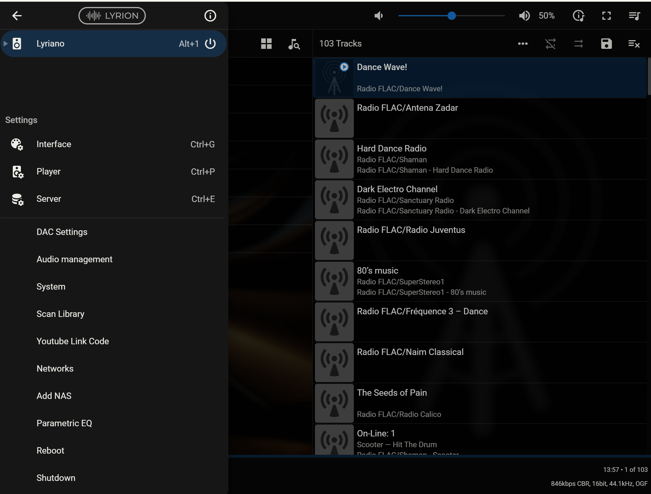 - Configuration: DAC; Server; EQ; Output; LCD...