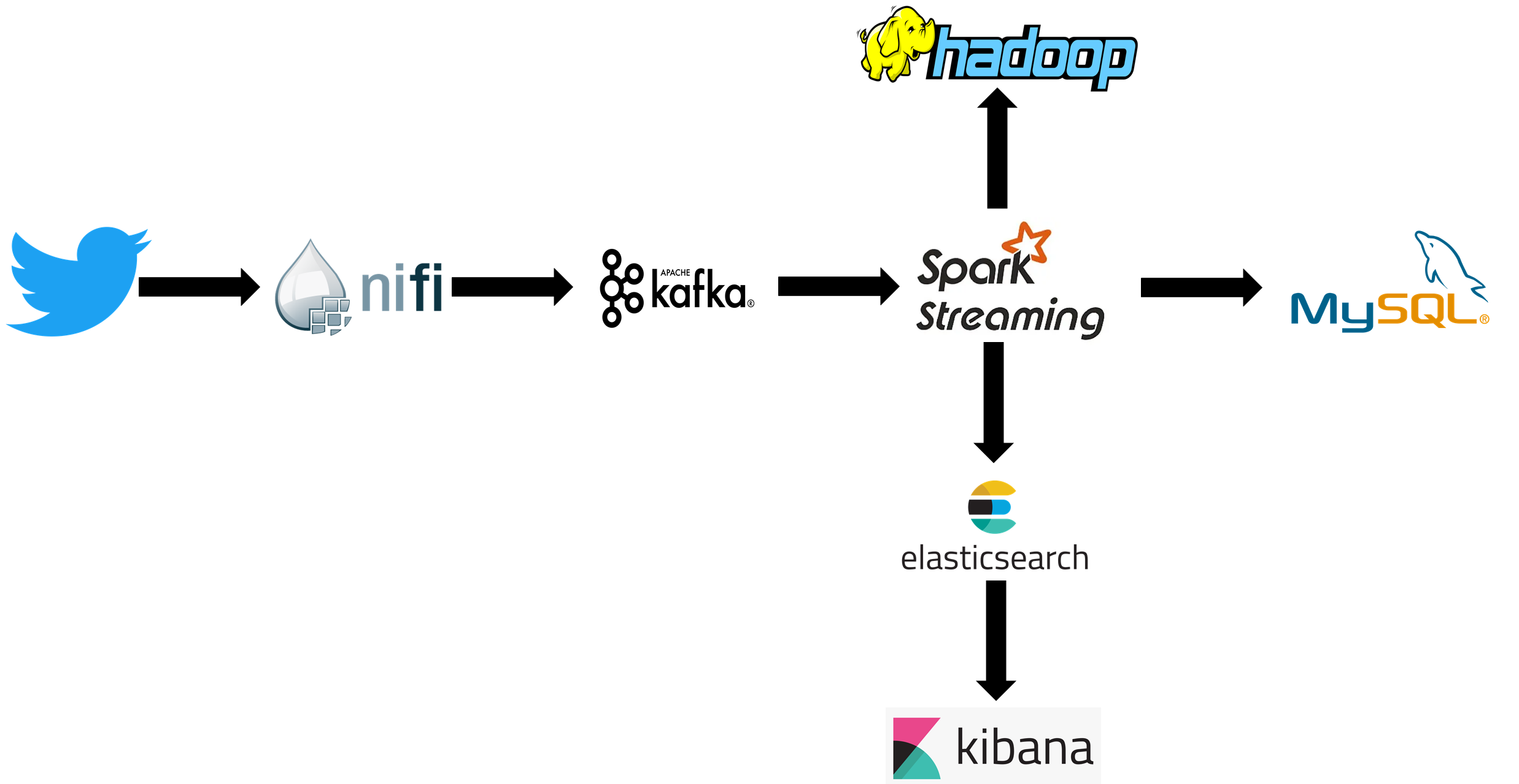 In this project, using Nifi as a data ingestion tool, I have pulled live twitter tweets from Twitter API and pushed to Kafka topics which is then consumed by a Spark Streaming application. Basic sentiment analysis is performed on the data using Stanford NLP library and final result are stored in HDFS and MySQL. Also the results are pushed to Elasticsearch to perform visualization using Kibana.