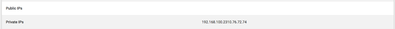 For example. I have a server connected to a private network with the IP address 192.168.100.23, and a floating IP address of 10.76.72.74 its external IP. Both appear as private IP addresses to mist.io, and mist chooses the 192.168.x.x address to try and ssh , which is inaccessible .