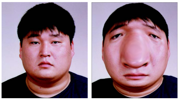 인물 사진에 sin 효과 적용 비교
