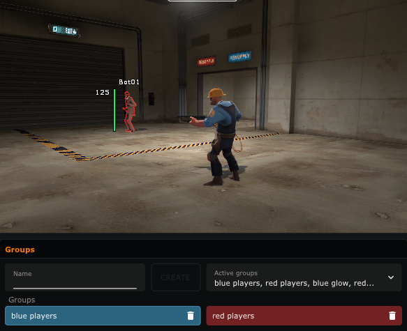 This is what is used to select entities and what to draw on them. This is meant to be a more customizeable system than a simple set of checkboxes/dropdowns. If an entity qualifies for multiple groups, the latest group will have priority. Groups will set all options of ESP, chams, glow, etc. non-exclusively.