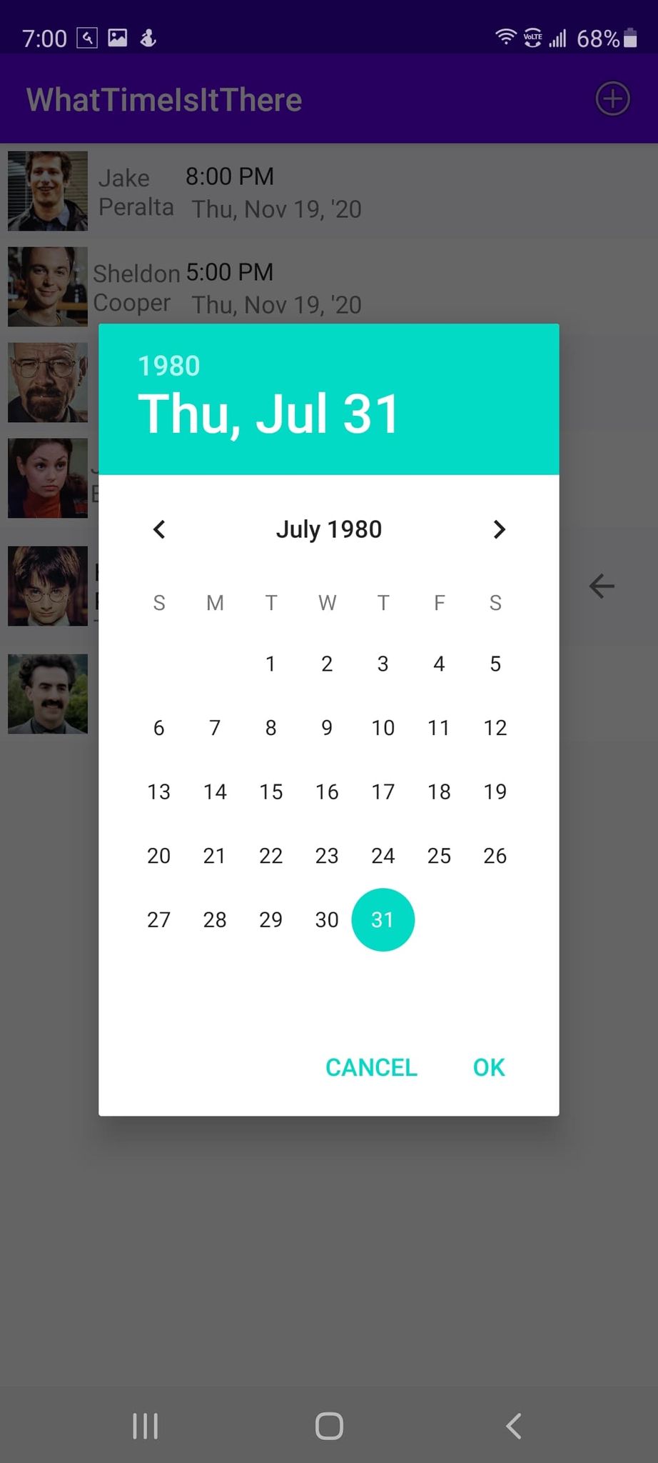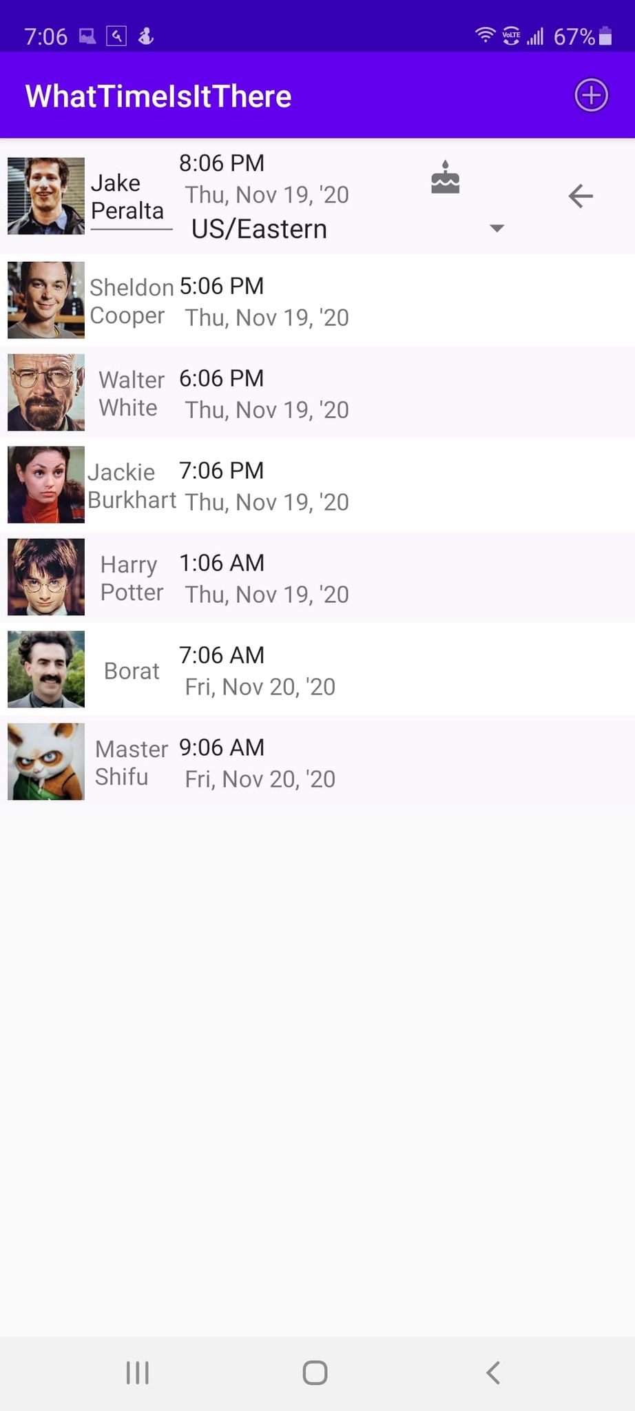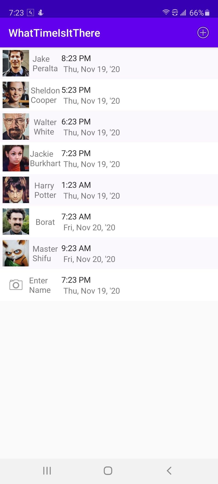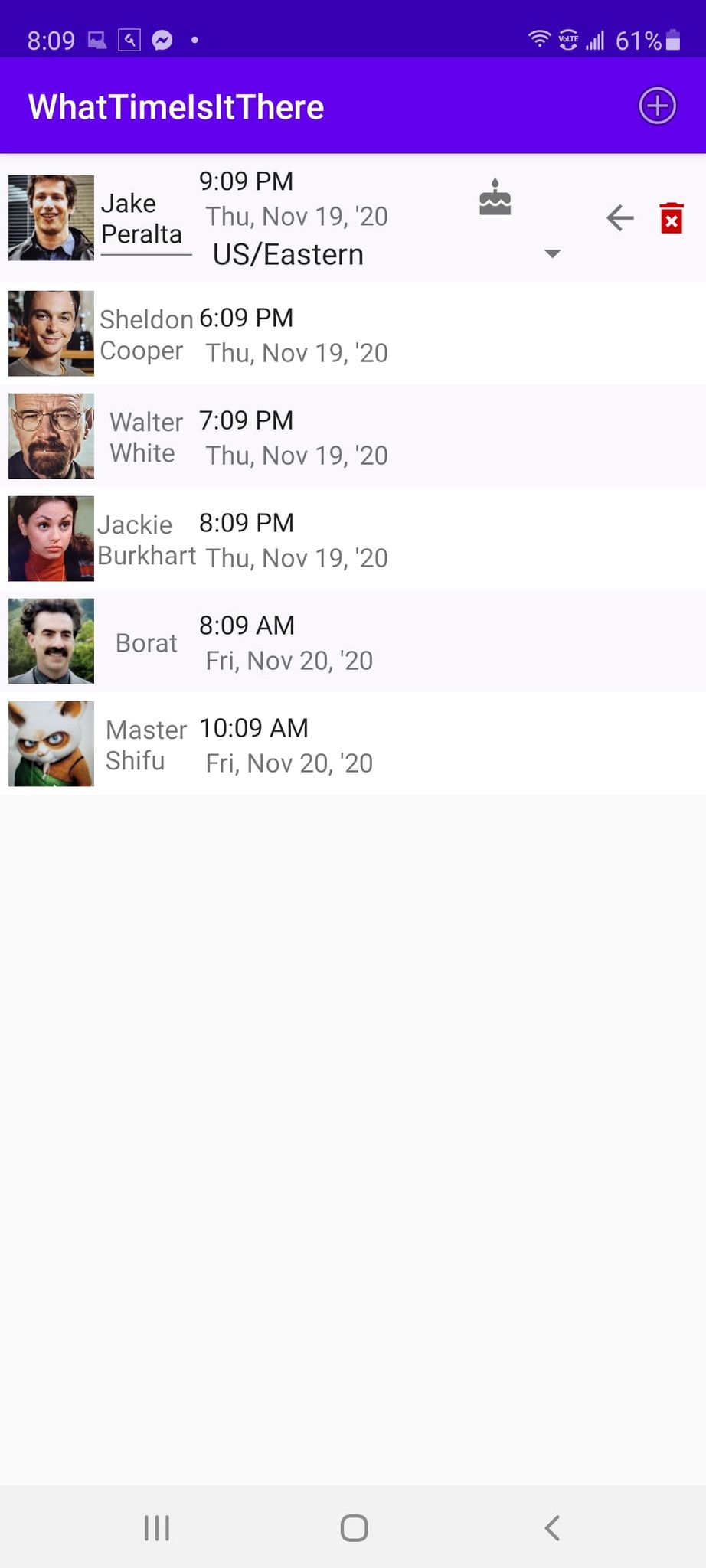 What Time Is It There is an android application that displays your friends’ information, primarily their local time and date, to make sure you don’t disturb them at odd hours. It also sends notifications when it is your friend's birthday in their timezone, so that you can be the first one to wish them.