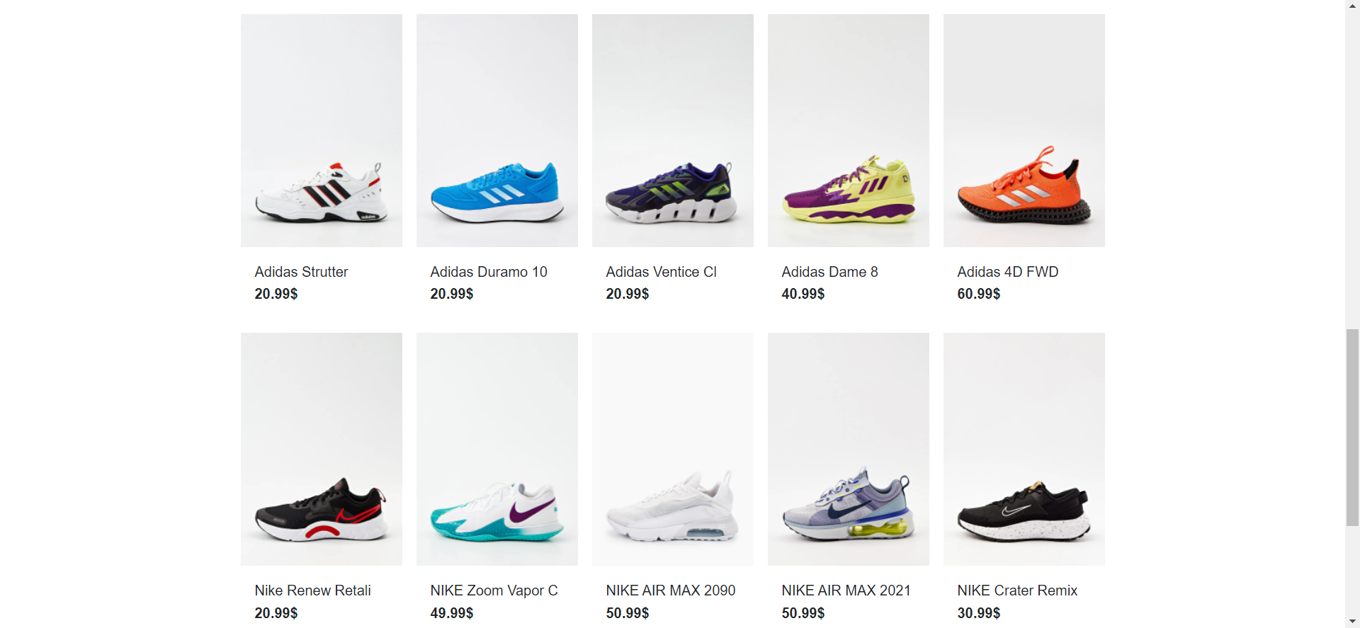 It could be a commercial site for business. Sneaker shop - this site is created for those who want to buy stylish but at the same time cheap sneakers. Various brands such as Nike, Adidas, etc. are collected here