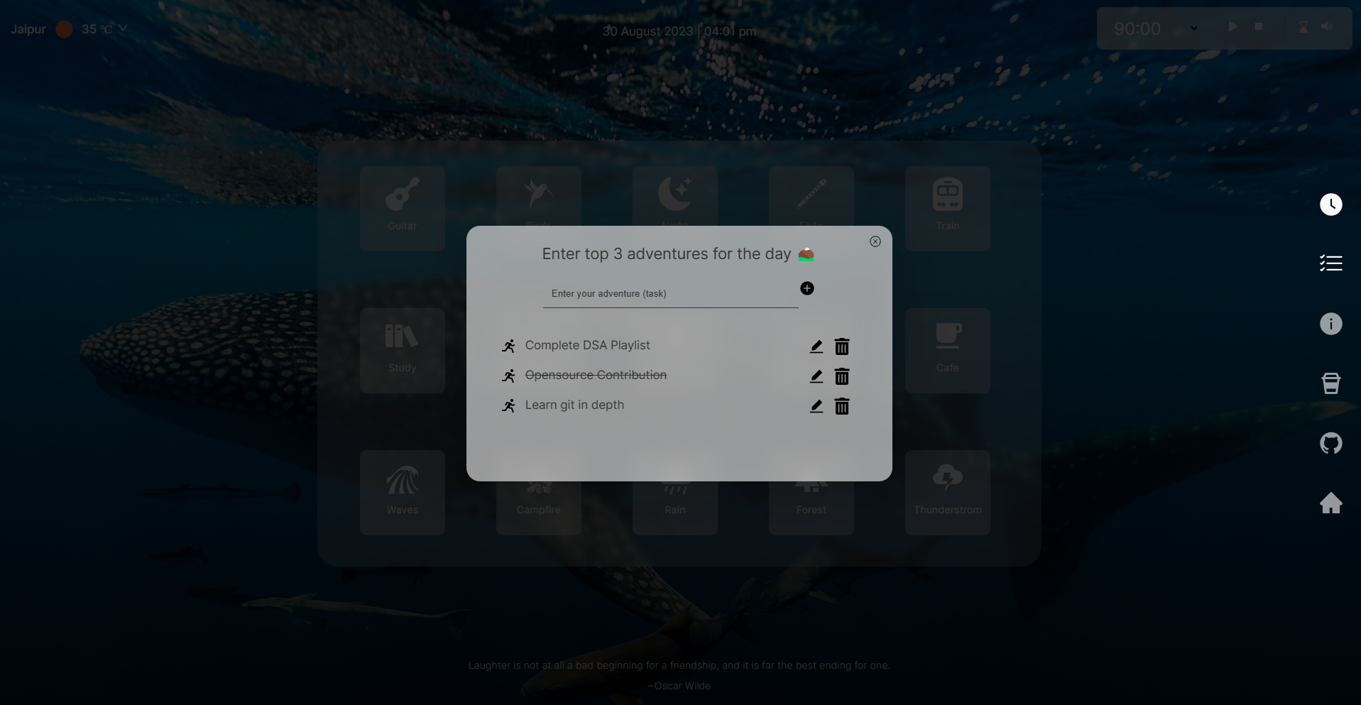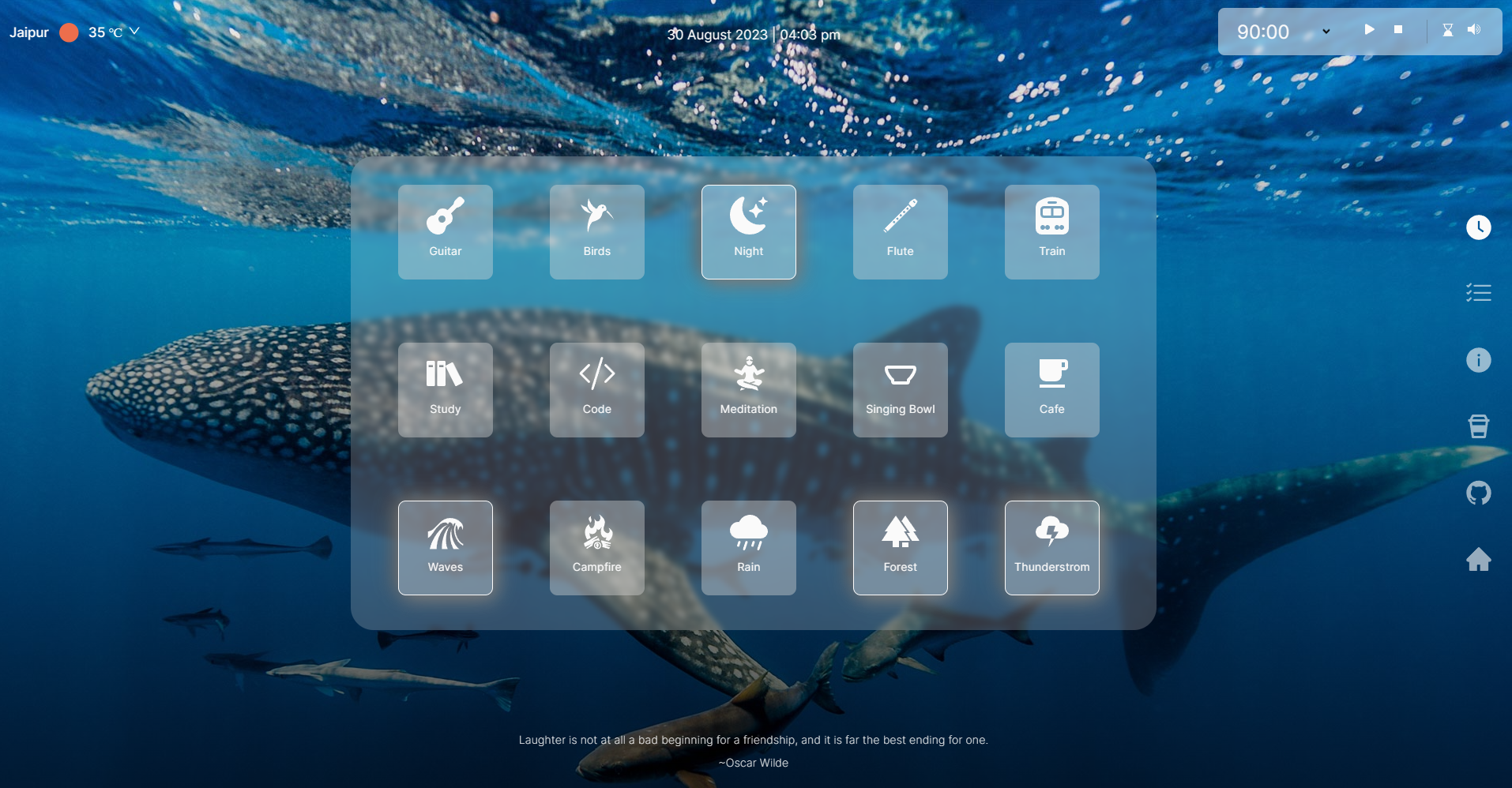 - Relaxing Music 🎵: Immerse yourself in a handpicked collection of open-source, calming music tracks curated to enhance relaxation and focus.