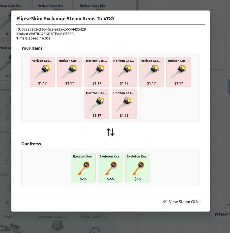 Virtual asset trading app built to facilitate steam to vgo key exchanges.