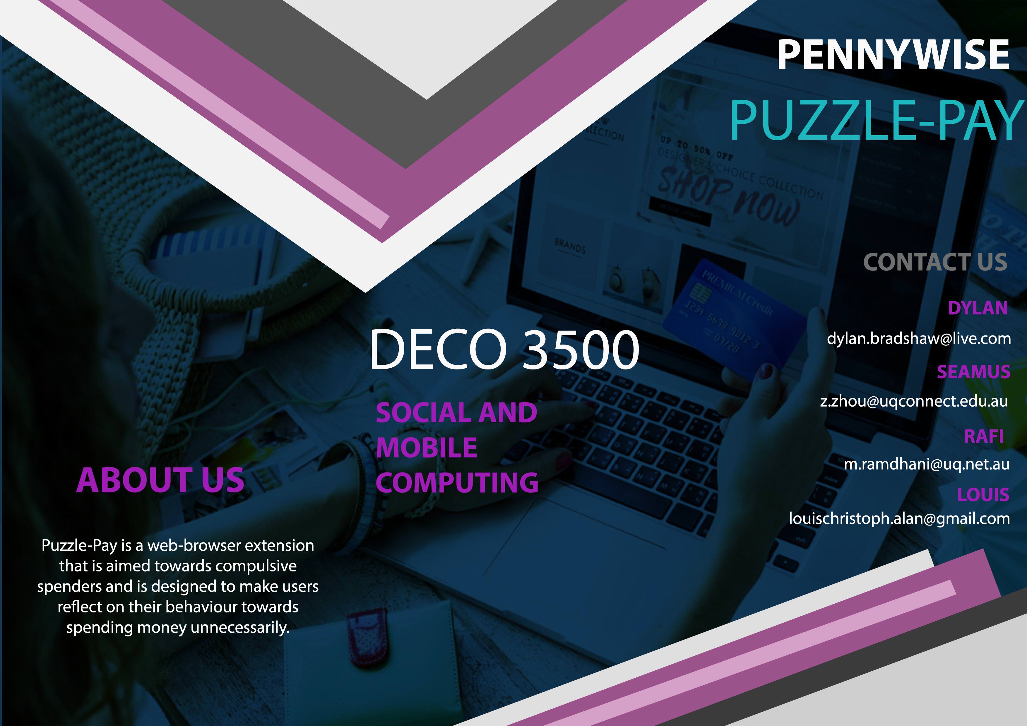 What Is Puzzle Pay? Puzzle Pay is a web-based browser extension that is aimed towards compulsive spenders. Puzzle Pay is designed to make the user reflects on their actions and behaviour of spending money unnecessarily with the help of other people. Puzzle Pay aims to modify the user behaviour in regards of compulsive spending, and motivate people to spend their money on important things. Puzzle Pay is different that other application as there are not many active application that is designed to stop impulsive spending the moment that the action is been performed. Proposal