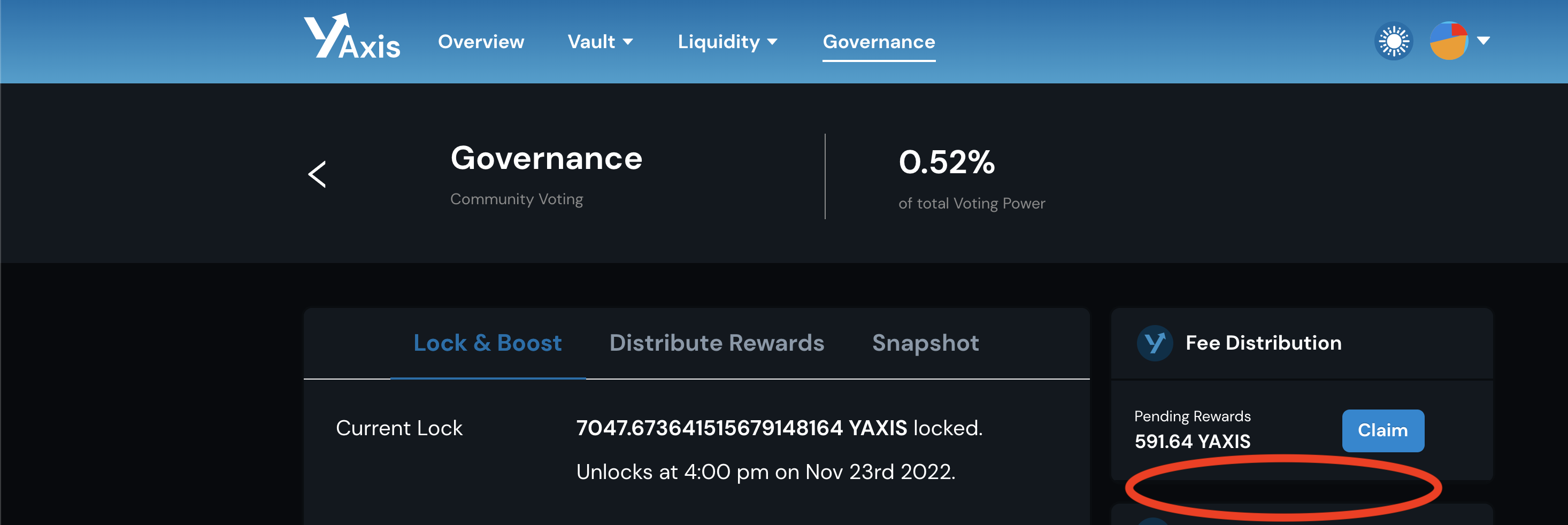 We should display the APR that a user can expect per veYAXIS below the claim button on the Governance page.