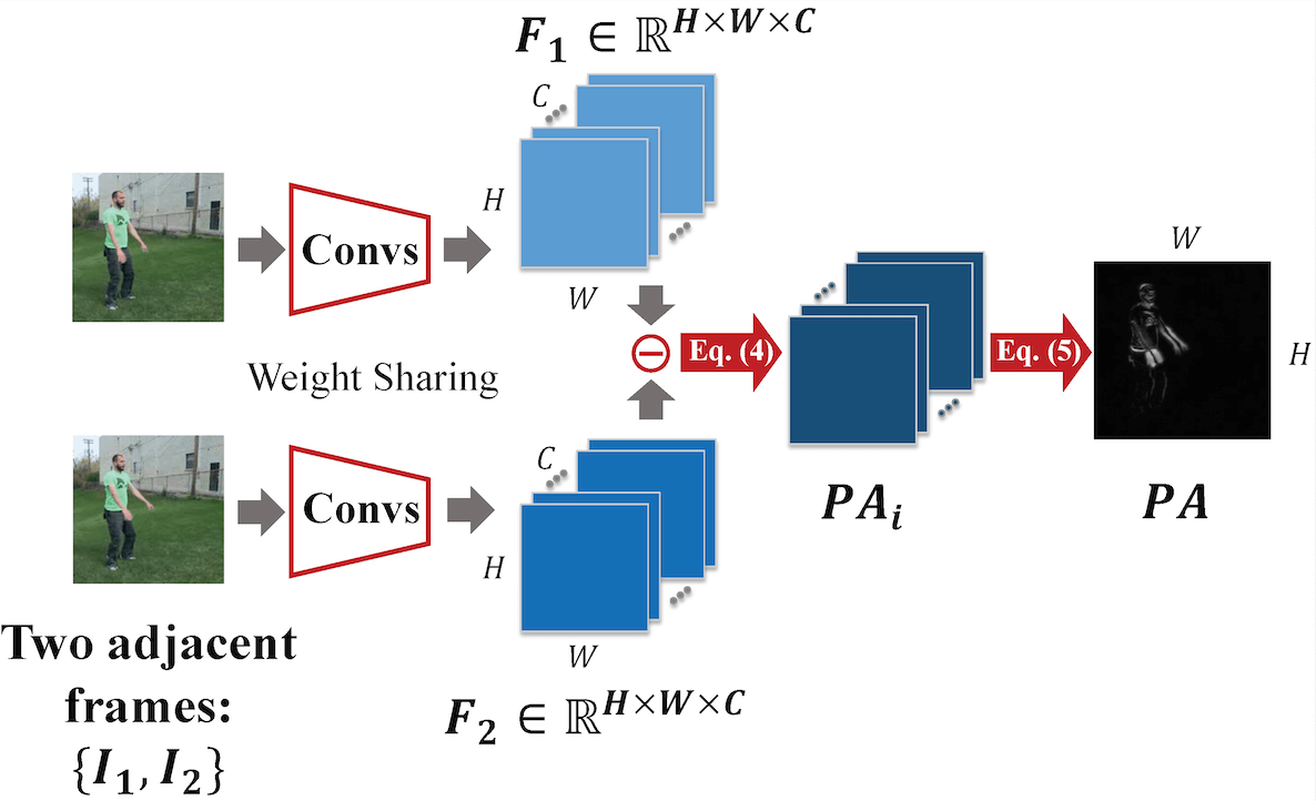 PA module aims to speed up the motion modeling procedure, it can be simply injected at the bottom of the network to lift the reliance on optical flow.